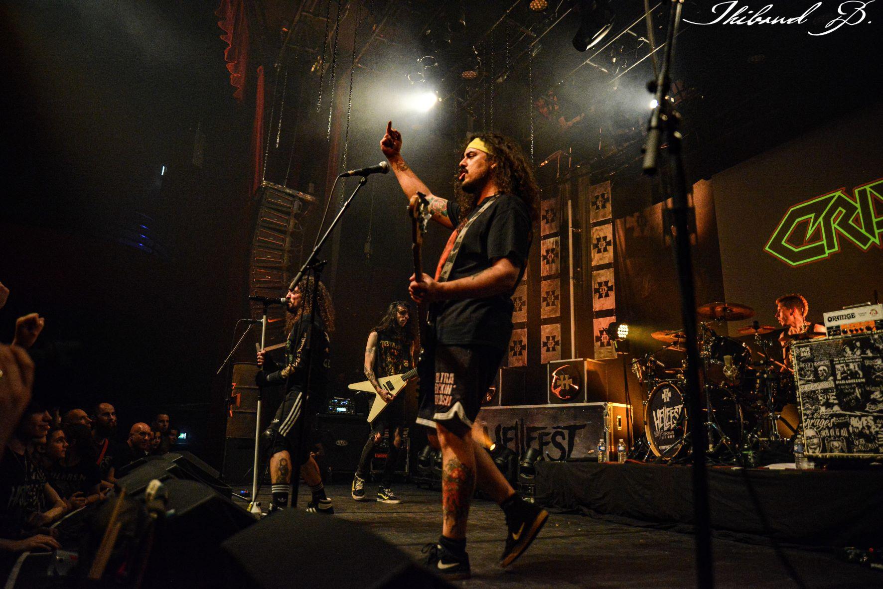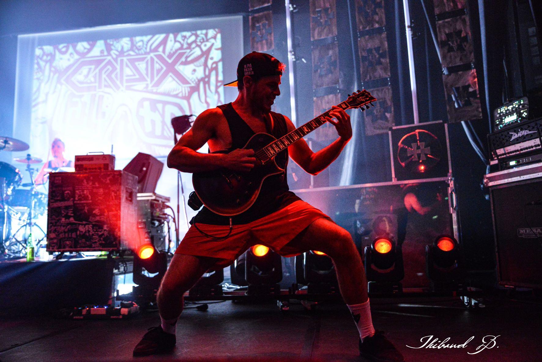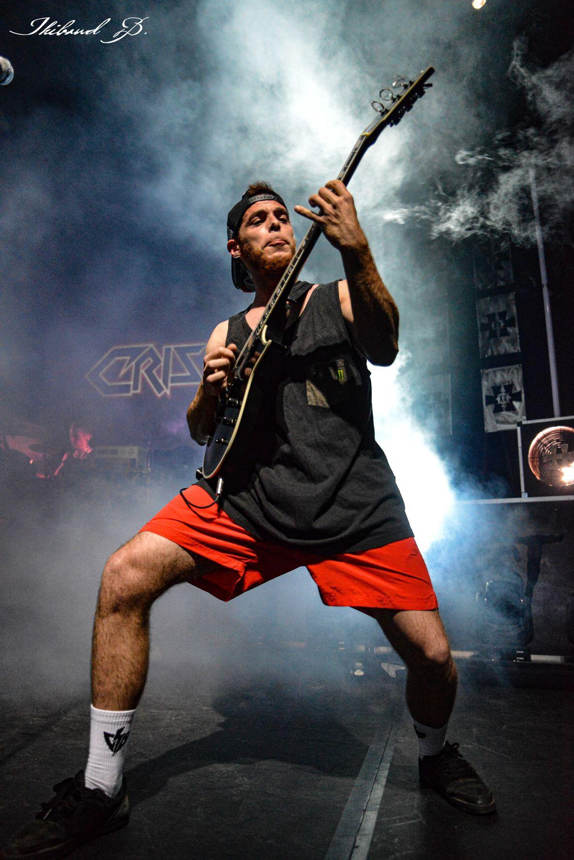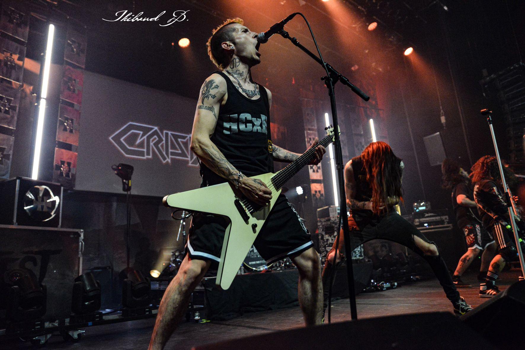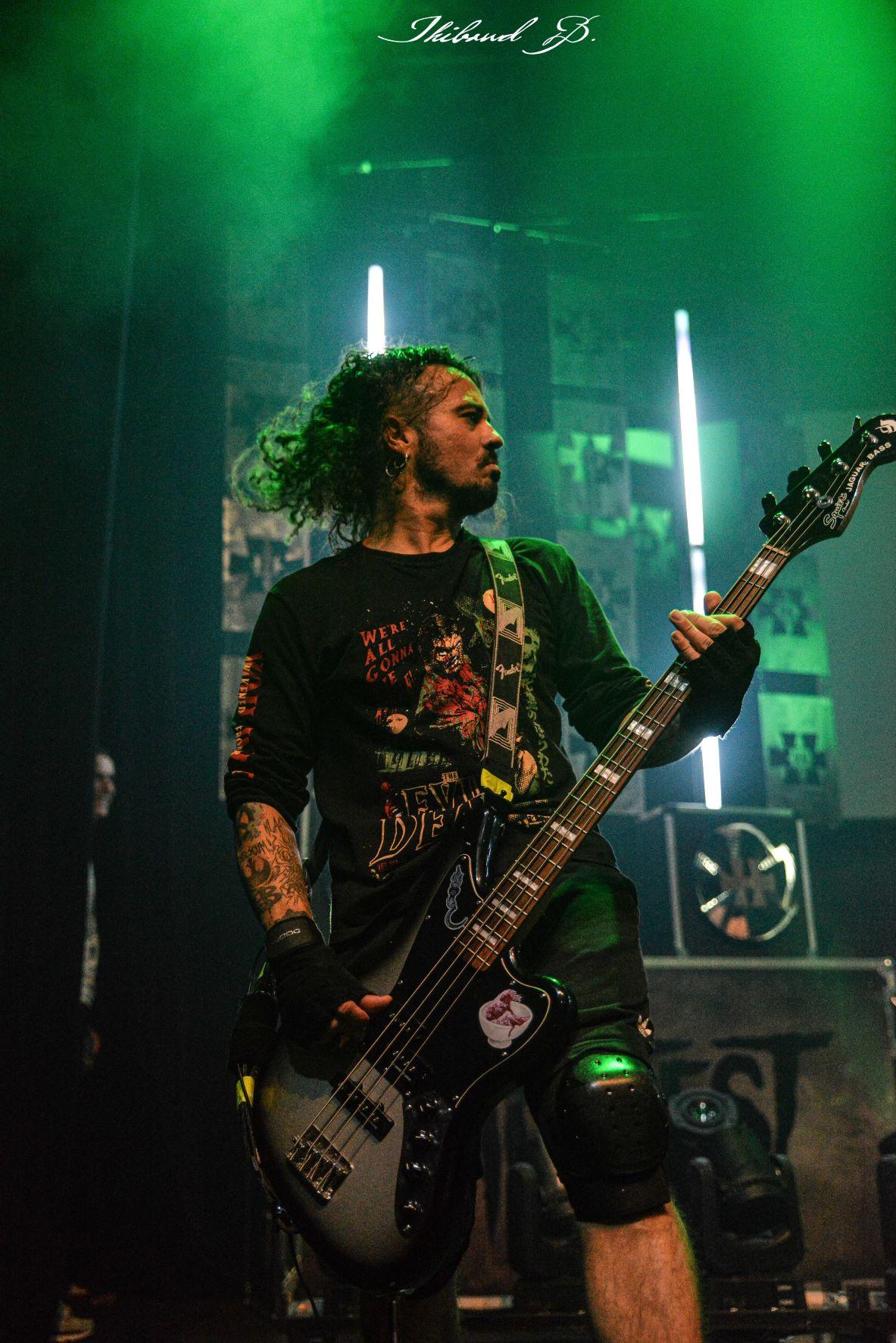 C’est l’heure pour nos voisins Espagnols de CRISIX d’investir cette scène du Bataclan. Certains connaissent bien le groupe, c’est une découverte pour ma part et le moins qu’on puisse dire c’est qu’on n’est pas déçu de la prestation. Ces excités du bocal mettent beaucoup d’énergie sur scène et la diffuse bien dans la fosse qui enchaîne pogos et wall of death. On peut même dire que ceux qui n’aimeront pas trop les titres en studio préféreront largement les voir en live. Le chanteur Juli Baz Sánchez alias Bazooka qui porte bien son pseudo ne tient pas en place et s’affèrera à courir de part et d’autre de la scène en s’époumonant de son chant guttural agrémenté de petit cri strident, certainement sa signature. Et à en juger par les titres des morceaux et à cette bonne humeur que nous partage le groupe, on peut dire que CRISIX ne se prend pas au sérieux.