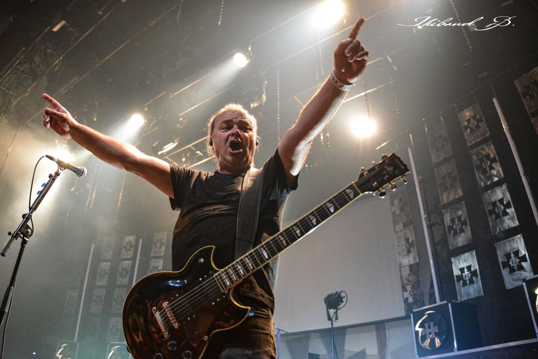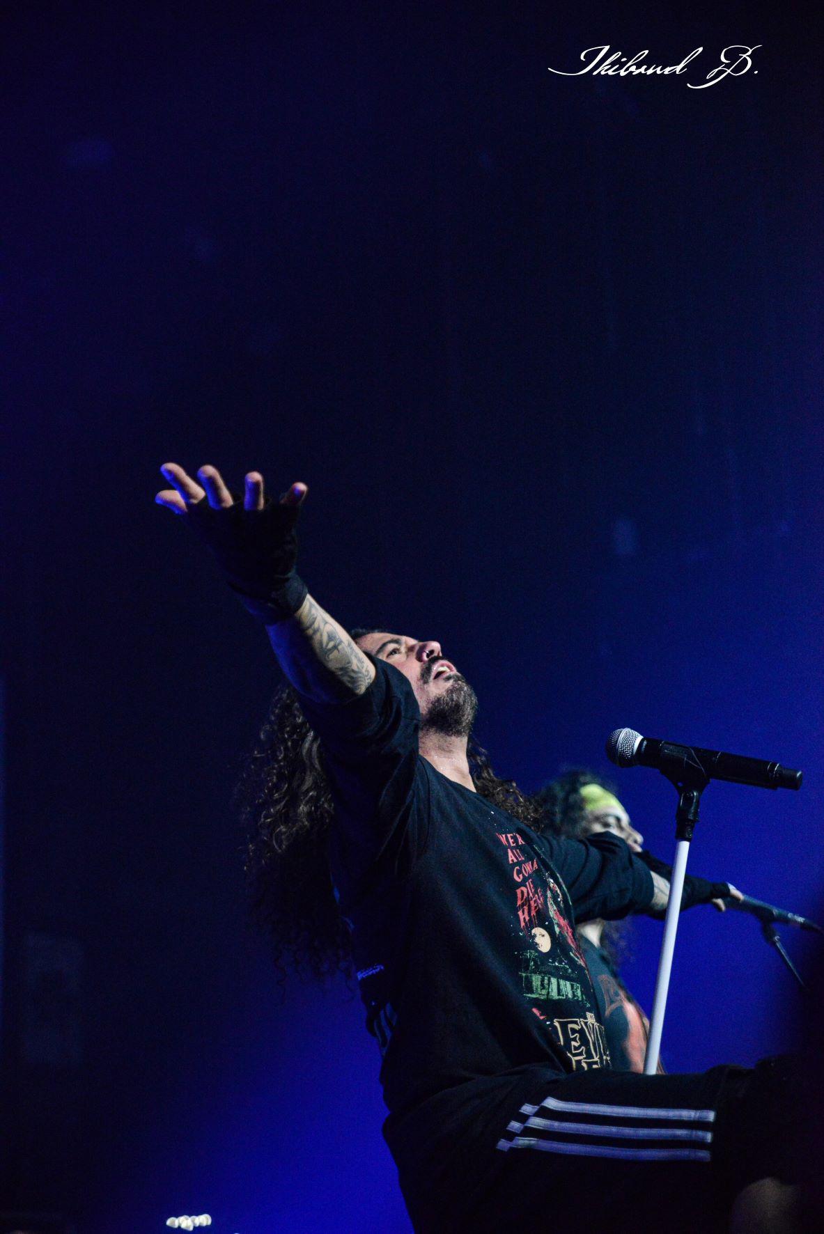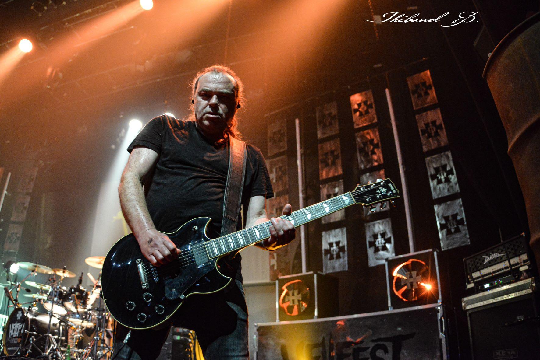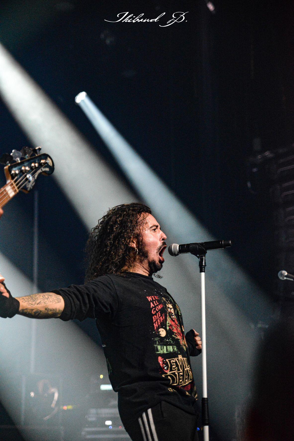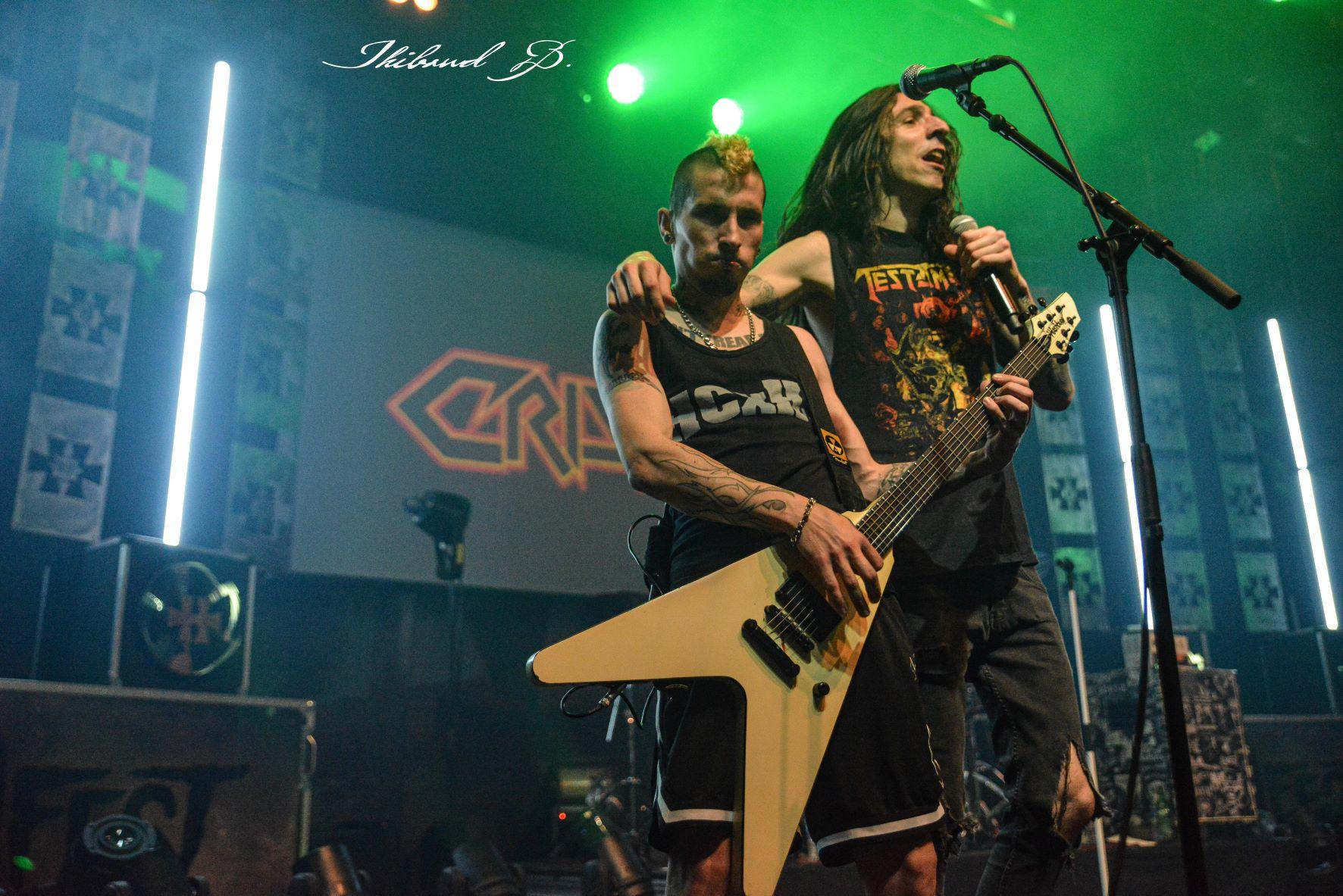 C’est l’heure pour nos voisins Espagnols de CRISIX d’investir cette scène du Bataclan. Certains connaissent bien le groupe, c’est une découverte pour ma part et le moins qu’on puisse dire c’est qu’on n’est pas déçu de la prestation. Ces excités du bocal mettent beaucoup d’énergie sur scène et la diffuse bien dans la fosse qui enchaîne pogos et wall of death. On peut même dire que ceux qui n’aimeront pas trop les titres en studio préféreront largement les voir en live. Le chanteur Juli Baz Sánchez alias Bazooka qui porte bien son pseudo ne tient pas en place et s’affèrera à courir de part et d’autre de la scène en s’époumonant de son chant guttural agrémenté de petit cri strident, certainement sa signature. Et à en juger par les titres des morceaux et à cette bonne humeur que nous partage le groupe, on peut dire que CRISIX ne se prend pas au sérieux.