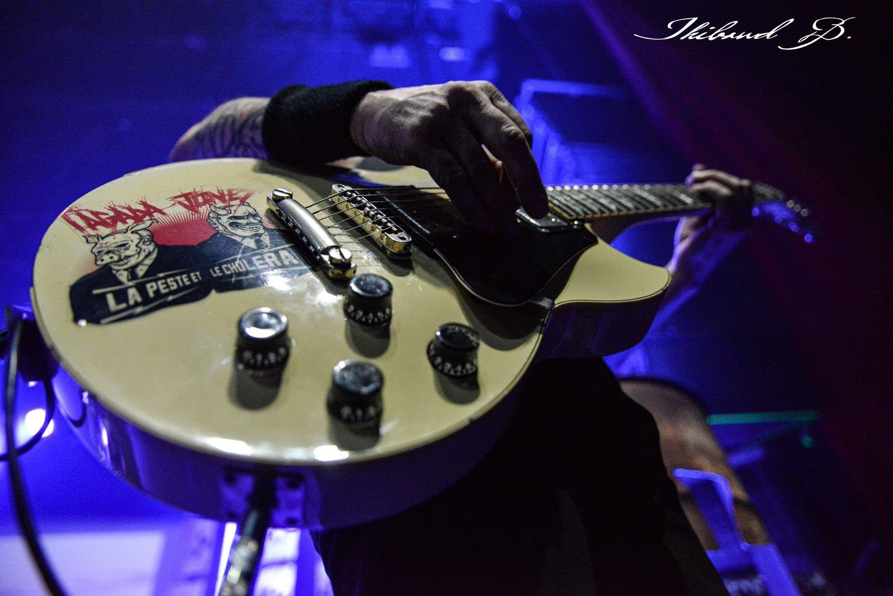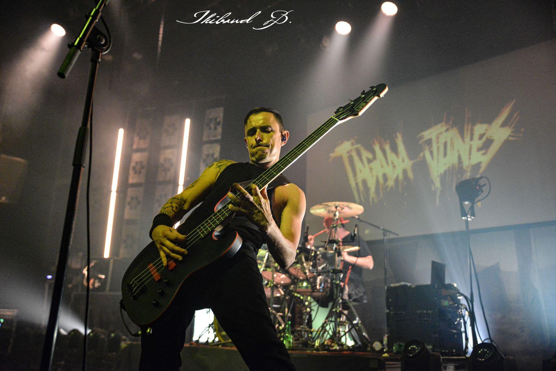 Le combo profitera également de l’occasion et de la symbolique de la salle pour rendre hommages aux victimes du 13 novembre 2015 avec le titre Vendredi 13. Puis Niko troquera sa guitare pour… juste son micro ! le frontman précise que ça fait plusieurs années qu’il n’avait pas chanté sans sa guitare et on comprend que c’est pour nous jouer De rires & de larmes car dans le clip de cette chanson il apparaît sans sa guitare. Le dernier album du groupe À feu et à sang aura été bien défendu tout au long du show et bien sûr TAGADA JONES ne quittera pas la scène sans nous jouer leur hymne Morts aux cons que tout le monde attend et offrira la plus grosse ambiance de la soirée dans le pit.
