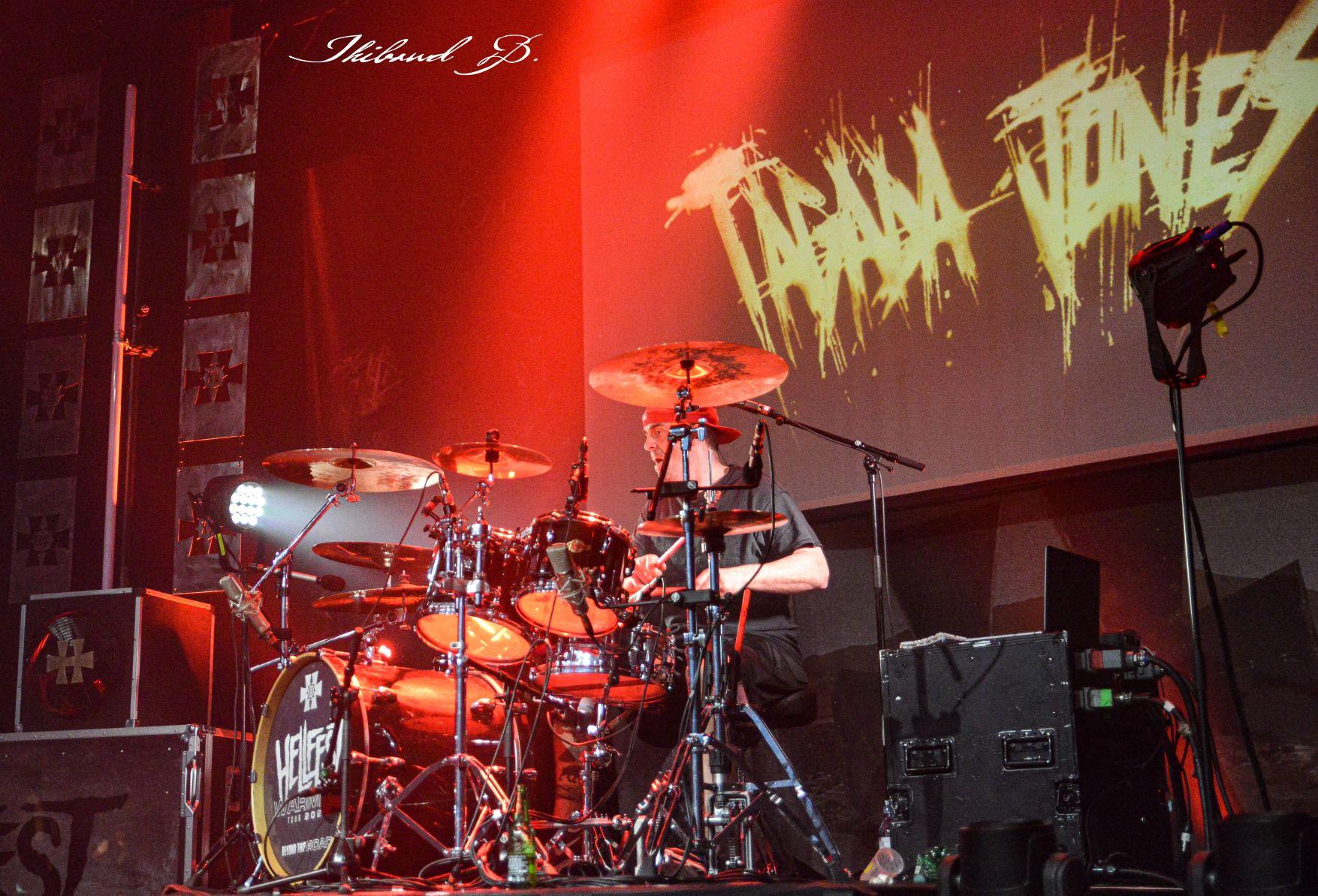 Concours de Air Guitar fini, c’est maintenant à TAGADA JONES de clôturer la soirée côté scène. Mais avant de les voir arriver, des images des précédentes éditions du Hellfest nous seront projetés histoire de nous mettre en appétit avant ce qu’il va se passer à Clisson en juin prochain, puis Alex Rebecq, directeur de la communication du festival, viendra en personne nous remercier de notre présence, tous ceux qui ont soutenu le festival durant les deux années blanches. Alex nous exprimera également sa joie que cette tournée Warm-up ait pu se tenir. Il sera suivi par les membres de TAGADA JONES qui sont prêt à mettre le boxon. Le groupe commence sur À feu et à sang, refrain repris par l’assistance et ça sera le cas pour la plupart des titres joués ce soir tel que Nous avons la rage qui avait fait l’objet d’un clip un peu spécial où le groupe avait proposé à leur fan d’y participer, confinés depuis chez eux, un titre qui prend une dimension un peu particulière en live.