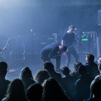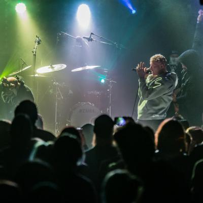 On va maintenant redescendre un registre plus mélodique avec la deuxième formation britannique de la soirée, OUR HOLLOW, OUR HOME. Le public semblera plus mou que lors des sets précédents malgré la prestance du chanteur Connor Hallisey cela étant peut-être du au style de musique que nous propose le combo qui aura quand même quelques morceaux bourrin sur les couplets mais toujours avec des refrains catchy et mélodiques où le guitariste Tobias Young nous fera profiter de son brin de voix avec ses lignes de chant clair. Pour autant, le groupe nous fournira une prestation de qualité avec énergie ce qui est appréciable pour la dernière date de la tournée.