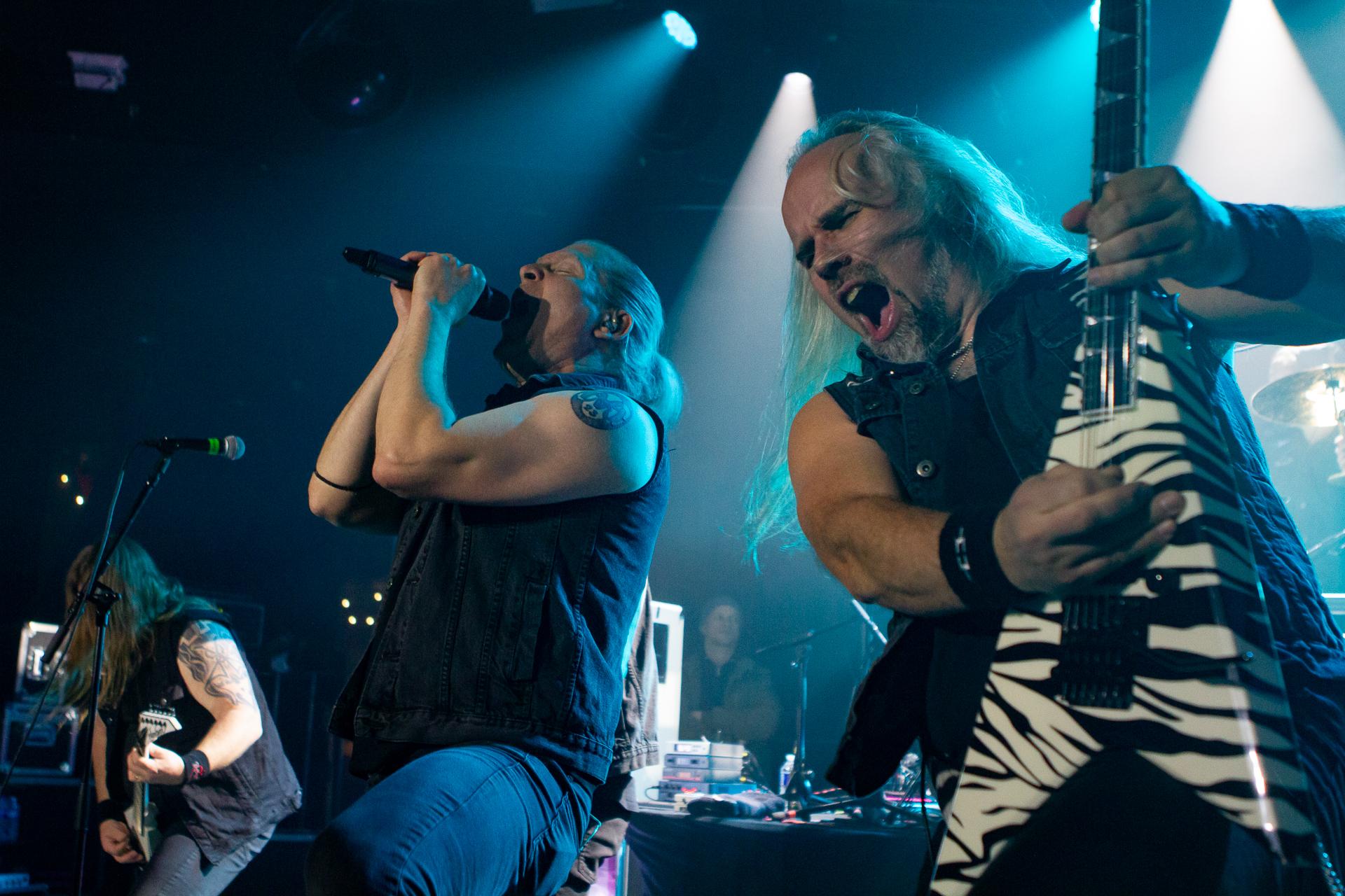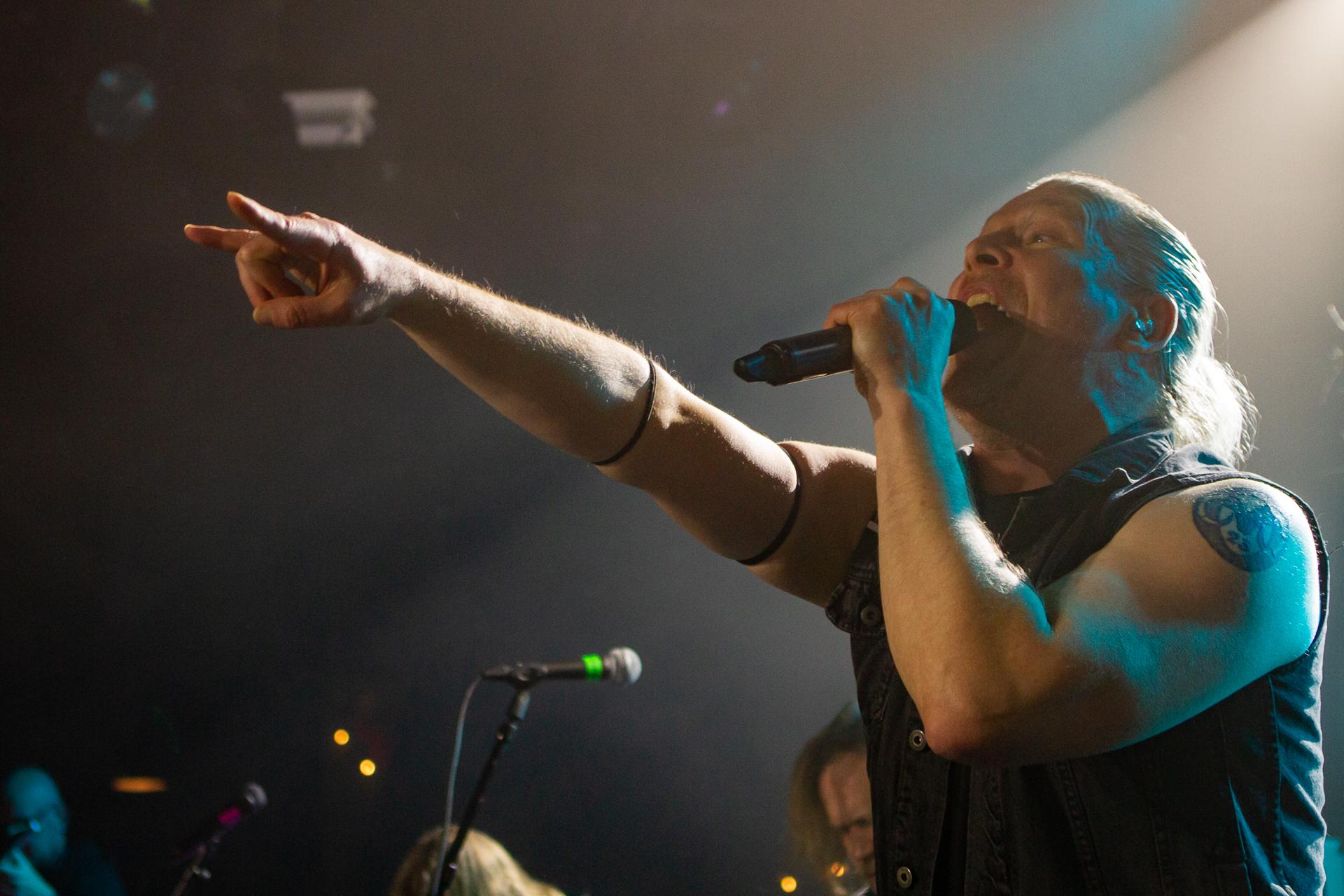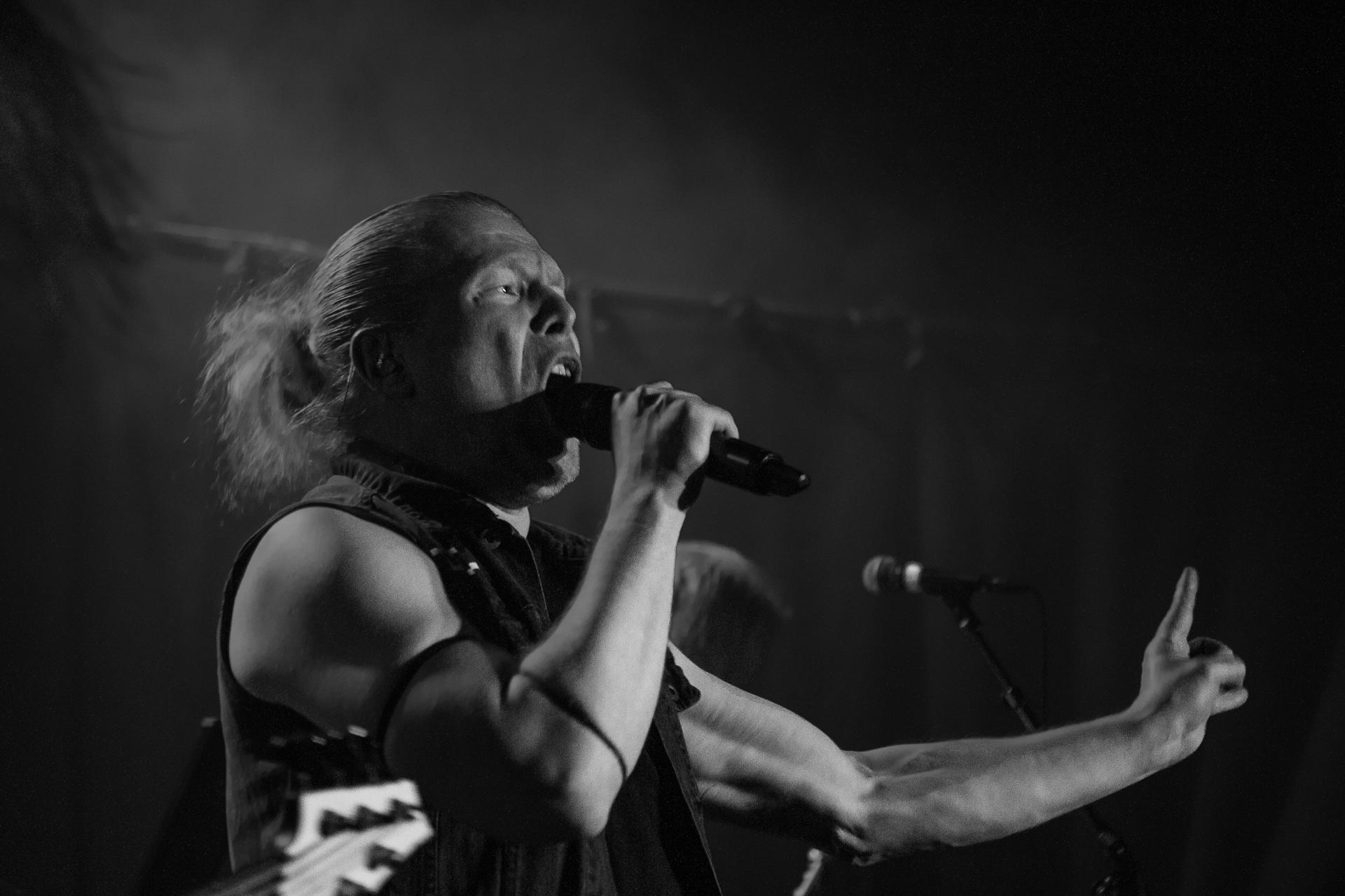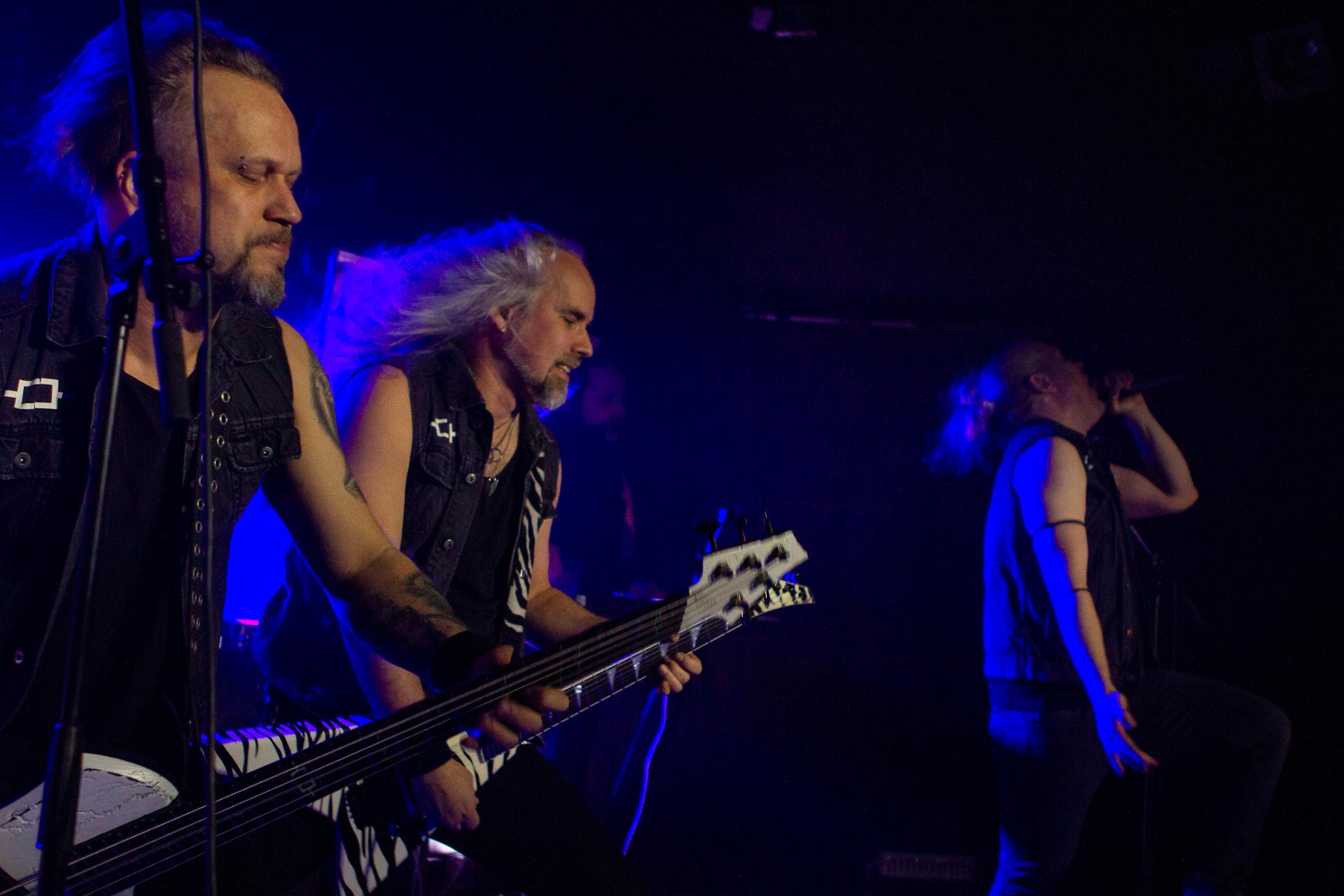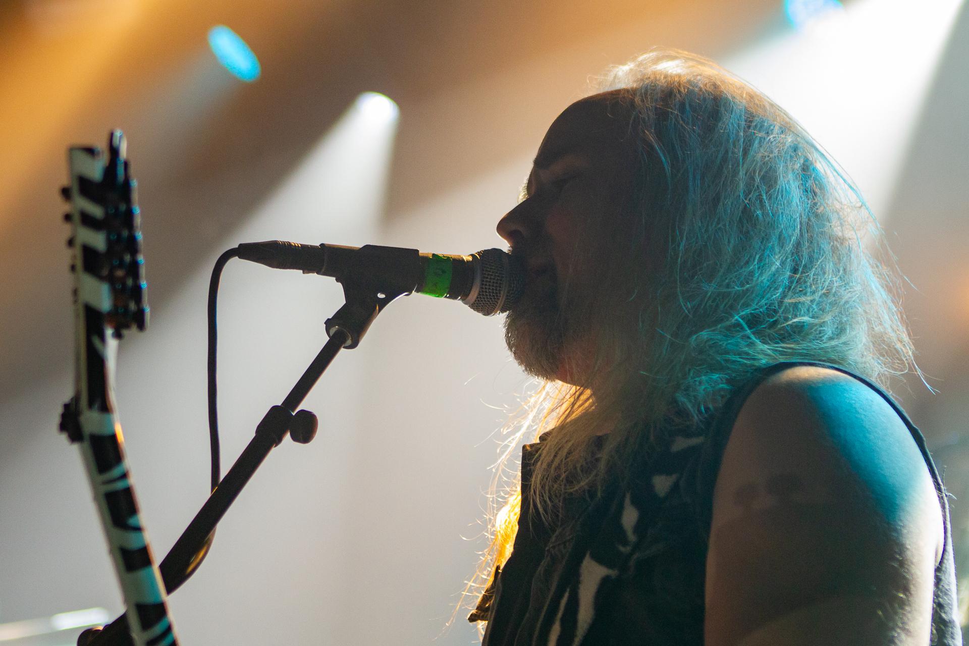 Arrive enfin le moment le plus attendu : l’arrivée sur scène d’INSOMNIUM avec, bien entendu, le retour de Markus qui, vous l’aviez déjà compris, a fait les deux sets. Évidemment, puisque leur album Shadows of the Dying Sun est la vedette, c’est forcément sur The Primeval Dark que le set débute, ce morceau qui sert d’introduction au titre le plus emblématique du groupe, While We Sleep. Là encore, l’assistance est ravie car cet album regorge d’excellents morceaux tels que Black Heart Rebellion, Ephemeral ou encore The Promethean Song. Le chanteur et bassiste Niilo Sevänen fait toujours preuve d’une parfaite maîtrise entre le chant et son jeu à la basse. Nous aurons également droit à un petit brin de voix des guitaristes sur The River. Le groupe se donne à fond pour que leur album culte retrouve toutes ses lettres de noblesse. Le show atteint son point culminant lors de l’interprétation du titre éponyme Shadows of the Dying Sun, marquant le début de la fin du set.