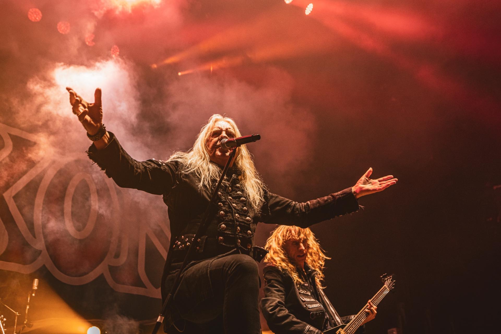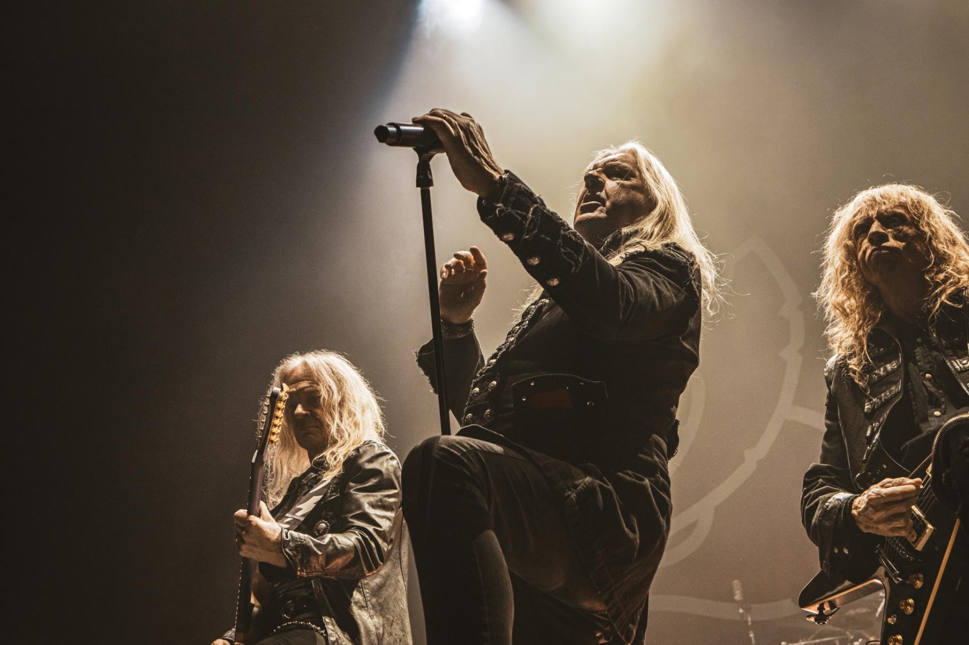 Le groupe a depuis peu été rejoint par Brian Talter (DIAMOND HEAD) à la guitare. Nous pouvons constater qu’il est parfaitement intégré au groupe et l’on pourrait penser qu’il est là depuis des années si on ne le savait pas. Nous constatons également un Biff Byford autant en forme physiquement que vocalement. Comme à son habitude, le frontman est très présent et dynamique sur scène. Le reste du groupe n’est pas en reste, toute la soirée nous avons le droit à une prestation pleine d’énergie et de classiques du groupe. Pour en citer quelques-uns, Princess of the Night, Wheels of the Steel ou Crusader. Trois morceaux de leur dernier opus ont été également joués, There’s Something In Roswell, Madame Guillotine et le morceau éponyme, Hell, Fire and Damnation. Ce n’est pas moins d’une heure de set qui nous est proposé et le public en semble ravis. Nous pouvons le voir sauter, danser et scander en chœur les classiques du groupe.