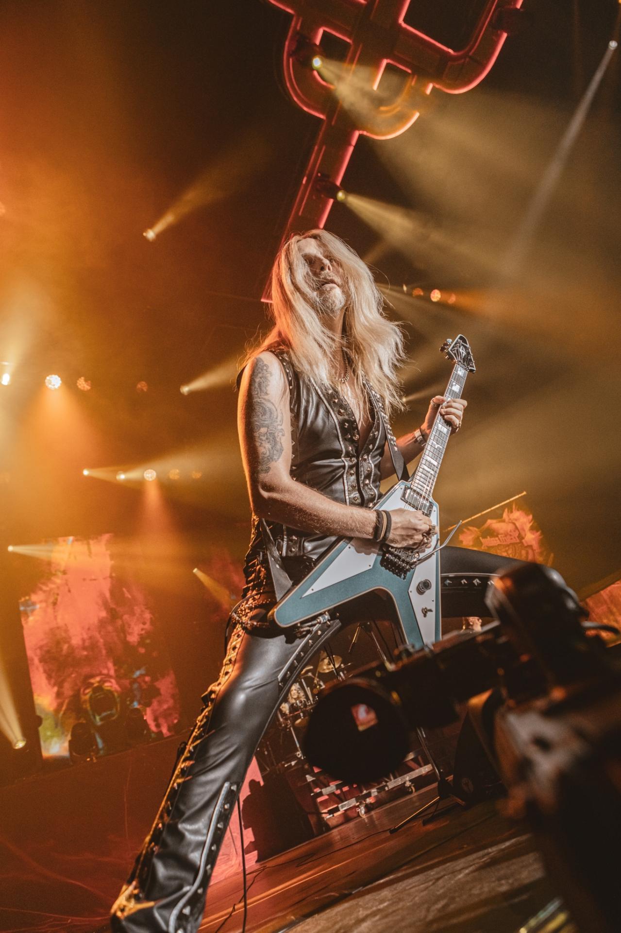 Le public est au rendez-vous et chante à s’égosiller les tubes du groupe. C’est en grande forme que nous retrouvons les Britanniques. Un Rob Halford toujours aussi impressionnant, on ne l'appelle pas le metal god pour rien. Un charisme et une voix extraordinaire, le tout porté par les compositions magistrales du band. Comment parler de charisme sans évoquer le lead guitariste du groupe, Richie Faulkner. Comme à son habitude, on le voit courir partout, jouer et interagir avec son public. Une technique à la guitare à en faire jalouser tous les guitaristes présents dans la salle. Le reste du groupe n’a rien à leur envier, nous retrouvons Scott Travis à la batterie, Ian Hill à la basse et Andy Sneap à la guitare. Pour ce dernier il remplace Glenn Tipton atteint de la maladie de parkinson et ne pouvant plus assurer les tournées depuis 2018.