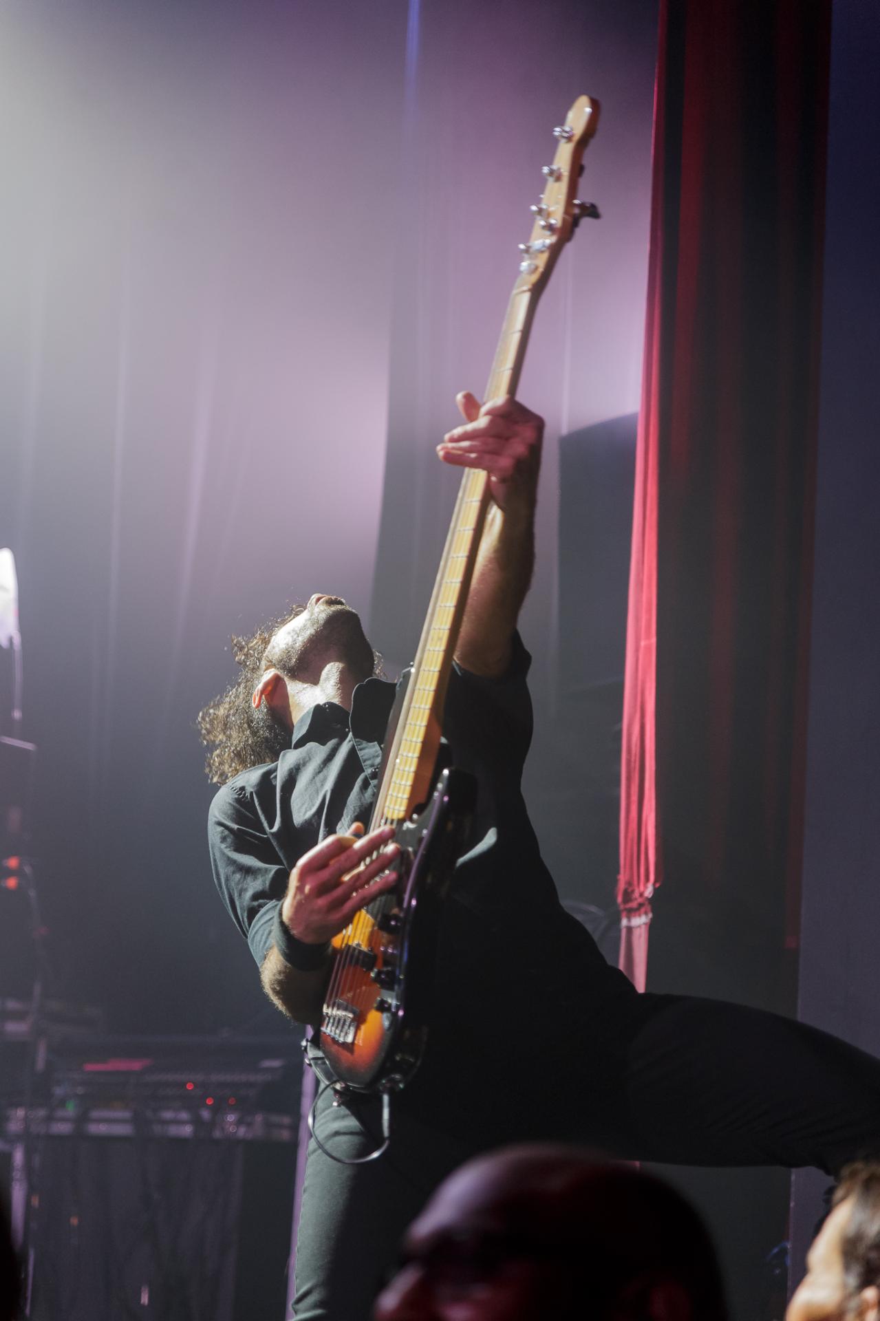 Première fois pour WTH que nous assistons à un set de KLONE. La première chose qui frappe c’est la puissance délivrée par le son impeccablement mixé au Trianon. Pour avoir écouté quelques morceaux en venant, on peut constater que le rendu live respecte vraiment celui en studio. L’ambiance est véritablement celle qu’on attend d’un concert de prog avec des morceaux marquants comme Night and Day ou encore Bystander. Et quelle précision et justesse dans le chant clair de Yann Ligner que ça en est presque hypnotique.