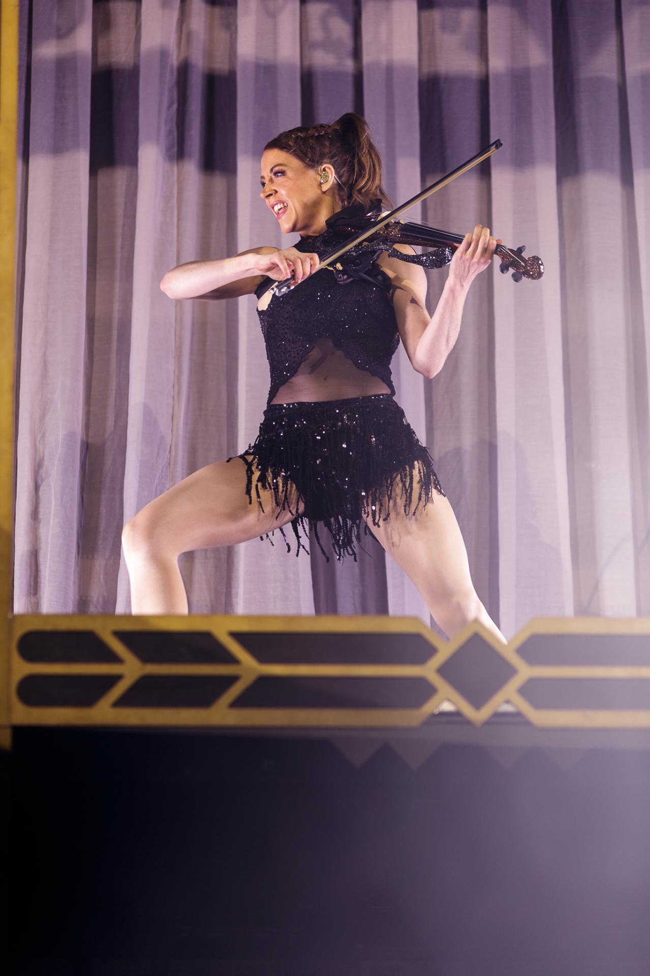 Quand on la voit jouer de son instrument, on n’a toujours cette impression qu’elle ne fait qu’un avec lui, comme une extension d’elle-même. Son charisme et son énergie communicative envahissent instantanément la salle. Chaque morceau est accompagné d’une chorégraphie millimétrée et d’effets visuels saisissants. Entre acrobaties aériennes et solos de violon électrisants, elle ne cesse d’émerveiller. Le public, captivé, oscille entre moments d’euphorie et instants suspendus où la virtuosité de l’artiste prend toute son ampleur.