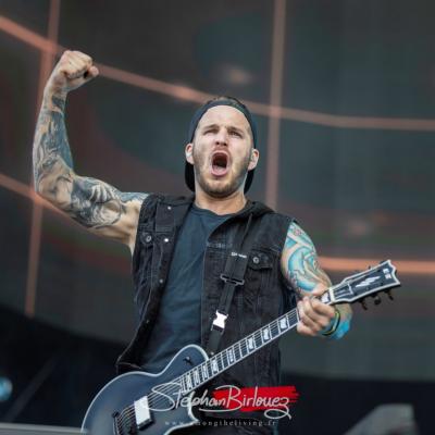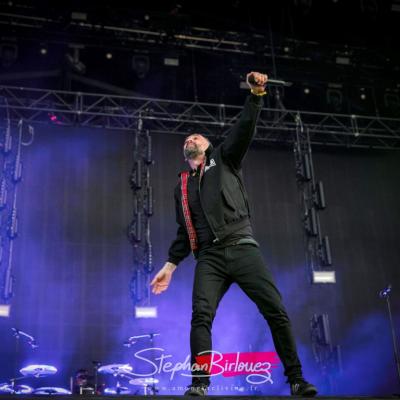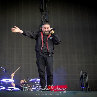 Après avoir sacrifier quelques passages de groupe au profit de quelques interviews, je me dirige vers la MS 2 pour voir un bout du set de NO ONE IS INNOCENT avant de devoir repartir pour une autre entrevue avec un groupe. Côté MS1, c’est GODSMACK qui joue. Groupe que j’ai découvert avec le jeu Prince of Persia : l’âme du guerrier, notamment avec la chanson I Stand Alone, également présente en bande originale du film Le Roi Scorpion. C’est justement ce titre que j’aurai l’occasion de voir en live et qui me donnera envie de découvrir un peu plus ce groupe. Set terminé, c’est maintenant au tour des NO ONE d’investir la MS 2. J’avais personnellement découvert ce groupe lorsqu’ils étaient en première partie d’AC/DC au Stade de France en 2015, ainsi que leurs titres très engagés. Le combo lance le premier titre La Gloire du Marché avant de sortir un de leur classique, Silencio. Le chanteur Kémar a vraiment la bougeotte et se donne à fond, tout autant que ses compères. Et c’est sur Ali (King of the Ring), chanson sur le boxeur Mohamed Ali, que je suis contraint de regagner la tente presse pour une autre interview, et j’espère avoir vite l’occasion de revoir les NO ONE.