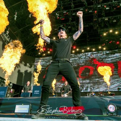 Chacun des morceaux joués est connu sur le bout des doigts par le public présent et même Out For Blood extrait de l’album Order In Decline qui n’était pas encore sorti au moment du Fest est repris en chœur par la foule. Pour la fin de set ce ne sera qu’une ribambelle de classiques interprétés par le groupe qui sera jouée et notamment leur cover de QUEEN We Will Rock You. In Too Deep, Fat Lip et Still Waiting finiront de nous épuiser avant que le groupe ne quitte la scène en remerciant chaleureusement le public d’être venu et nous fait la promesse de revenir très vite et on les attend de pied ferme. La première journée s’est donc clôturée de la plus belle manière qui soit, en route donc pour reprendre des forces avant la journée de demain.