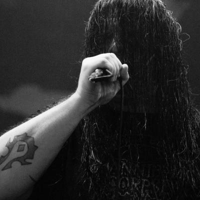 Plus tard, c’est un autre groupe qui commence à faire beaucoup parler de lui, il s’agit de WIEGEDOOD. La Norvège est certes le berceau des groupes de Black Metal mais pas mal de groupes ont émergé d’autres contrées. Et là ce n’est pas un pays du grand nord puisqu’ils s’agit de l’un de nos plus proches voisins, la Belgique. Composés de seulement trois membres, cette formation n’a pas opté pour de la déco de scène propre au black, ni de paintcorpse à outrance, rien de tout ça. On relèvera un show tout en sobriété que l’on retrouve jusque dans leur backdrop. Mais il suffit d’entendre leurs compos pour être transporter dans l’univers du groupe et de laisser faire notre imagination. On a là une musique puissante, dissonante, parfois macabre. Le trio belge fera trembler le sol de la Temple plus d’une fois et nous atteindra jusque dans nos tripes. Probablement l’un des groupes les plus brutaux de tout le festival.