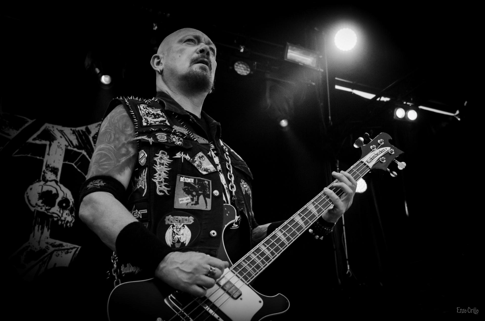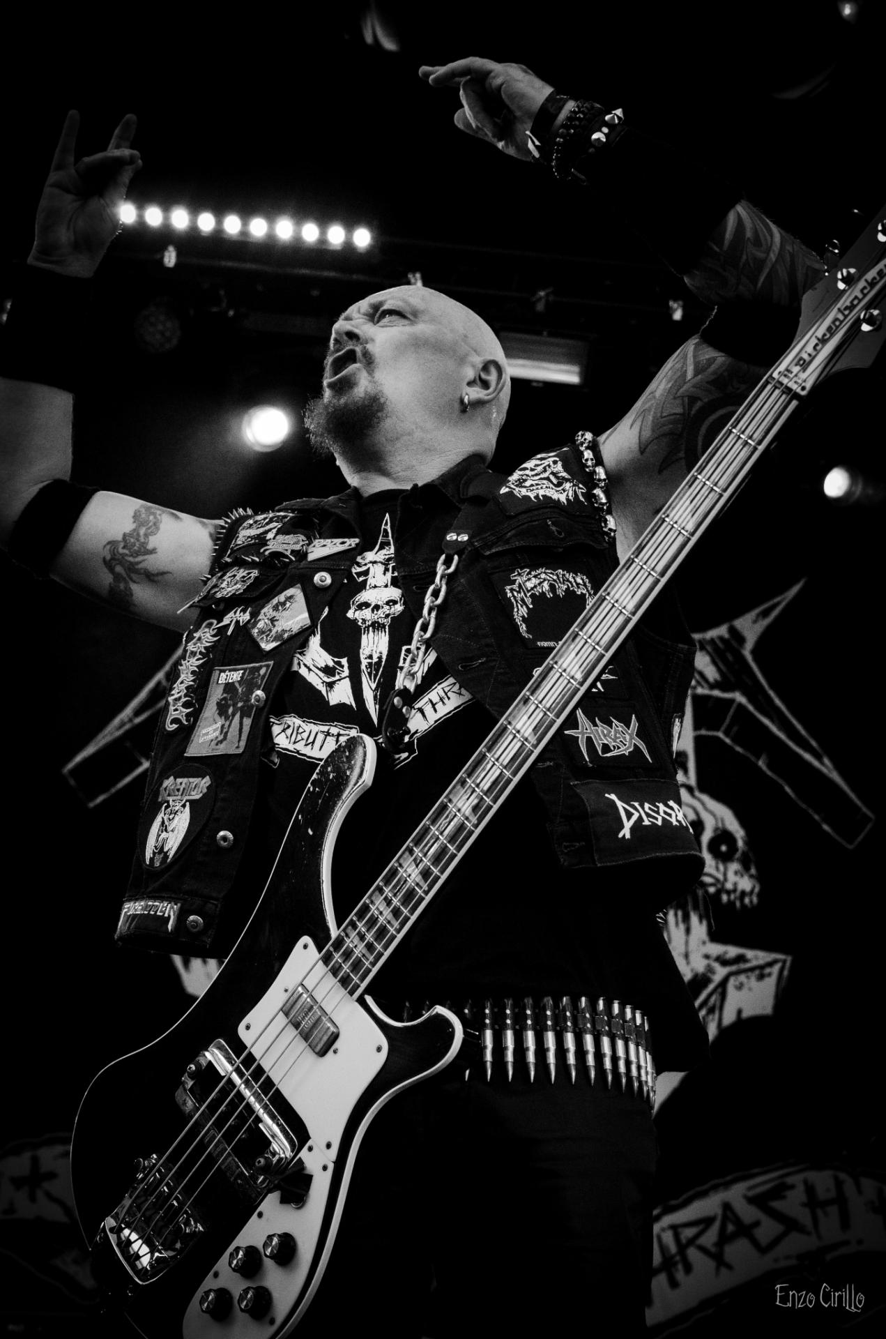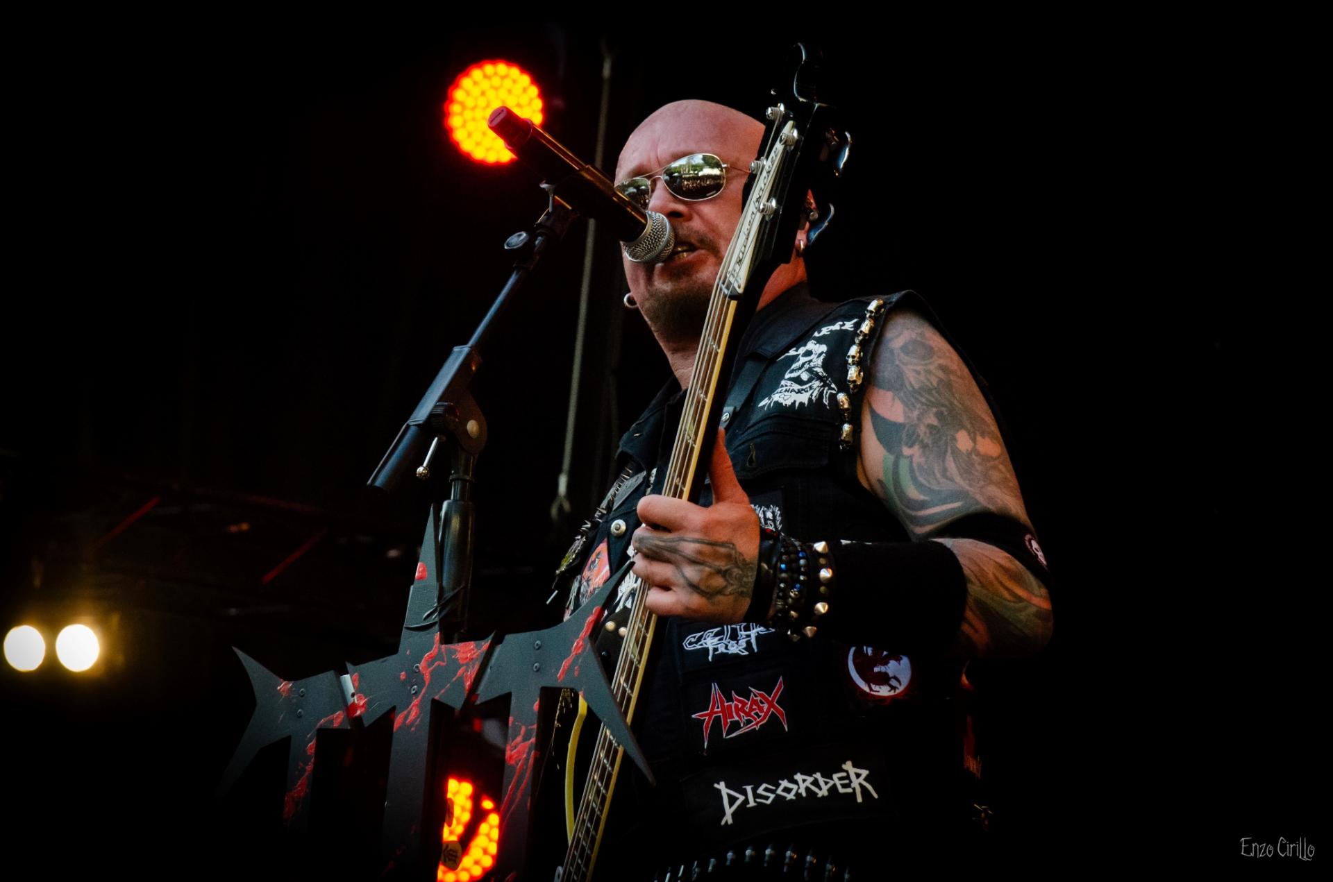 Comme la dernière fois, le tribute passe en revue des morceaux de gros noms du Thrash, notamment trois membres du big four allemand rien que ça, KREATOR avec Flag of Hate, DESTRUCTION avec Mat Butcher et bien entendu SODOM avec Outbreak of Evil. Le groupe fera également un petit clin d’œil au Black Metal avec la chanson du même nom de VENOM. Chaque annonce de morceau fait son effet à la masse de Thrasheux venu pour l’occasion. Le plus épique ce sont les grimaces de Stéphane qui en fera rire plus d’un ! Et on verra également un featuring avec Arno Strobl sur un titre. Alors certes c’est un groupe de reprise, mais les morceaux sont parfaitement exécutés. TTT s’est en quelque sorte approprié ces chansons le temps du set, tout en respectant les œuvres originales, chapeau messieurs.