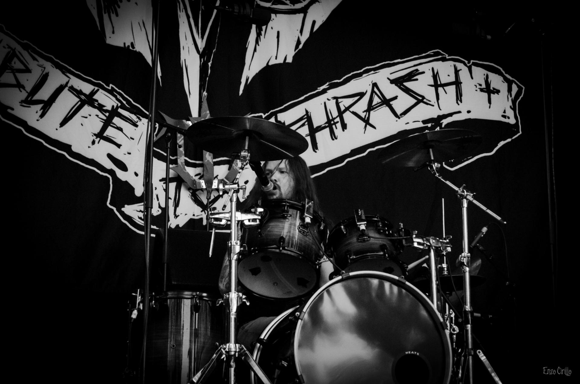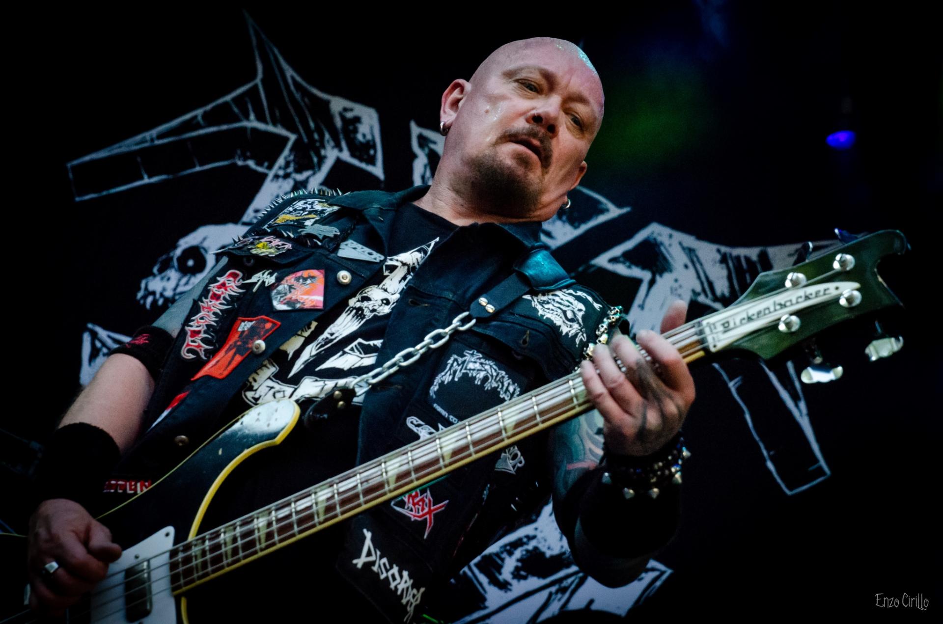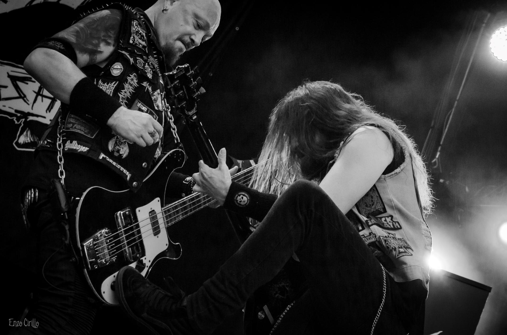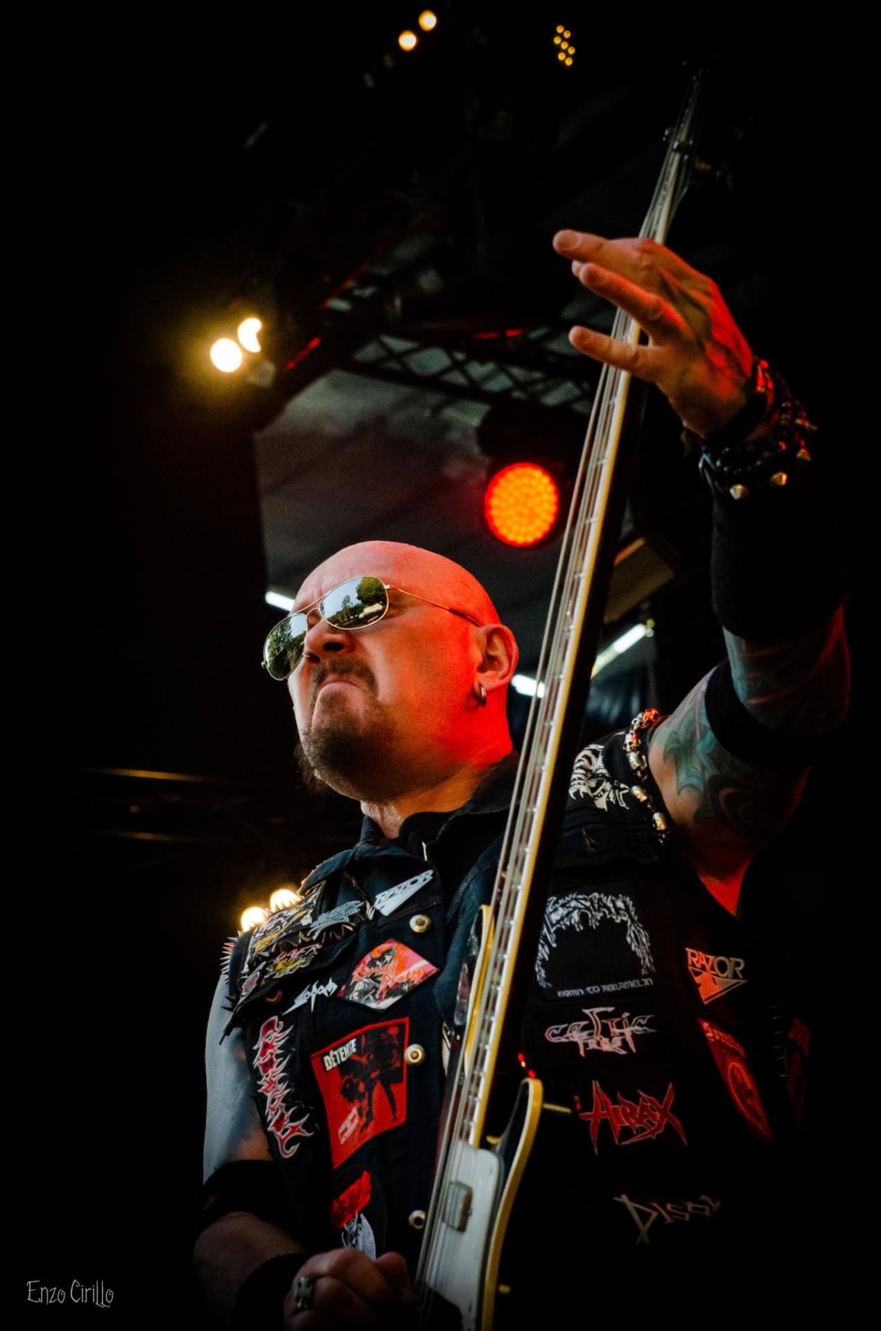 Comme la dernière fois, le tribute passe en revue des morceaux de gros noms du Thrash, notamment trois membres du big four allemand rien que ça, KREATOR avec Flag of Hate, DESTRUCTION avec Mat Butcher et bien entendu SODOM avec Outbreak of Evil. Le groupe fera également un petit clin d’œil au Black Metal avec la chanson du même nom de VENOM. Chaque annonce de morceau fait son effet à la masse de Thrasheux venu pour l’occasion. Le plus épique ce sont les grimaces de Stéphane qui en fera rire plus d’un ! Et on verra également un featuring avec Arno Strobl sur un titre. Alors certes c’est un groupe de reprise, mais les morceaux sont parfaitement exécutés. TTT s’est en quelque sorte approprié ces chansons le temps du set, tout en respectant les œuvres originales, chapeau messieurs.