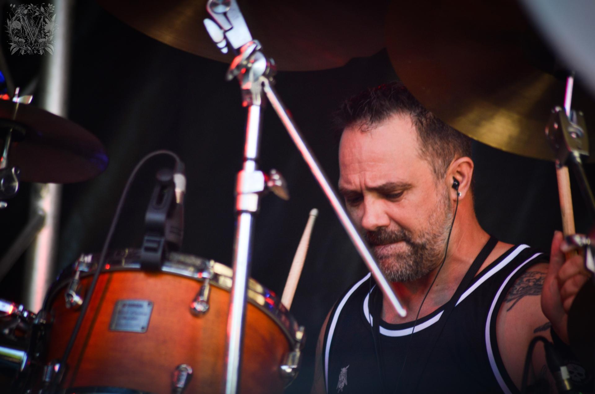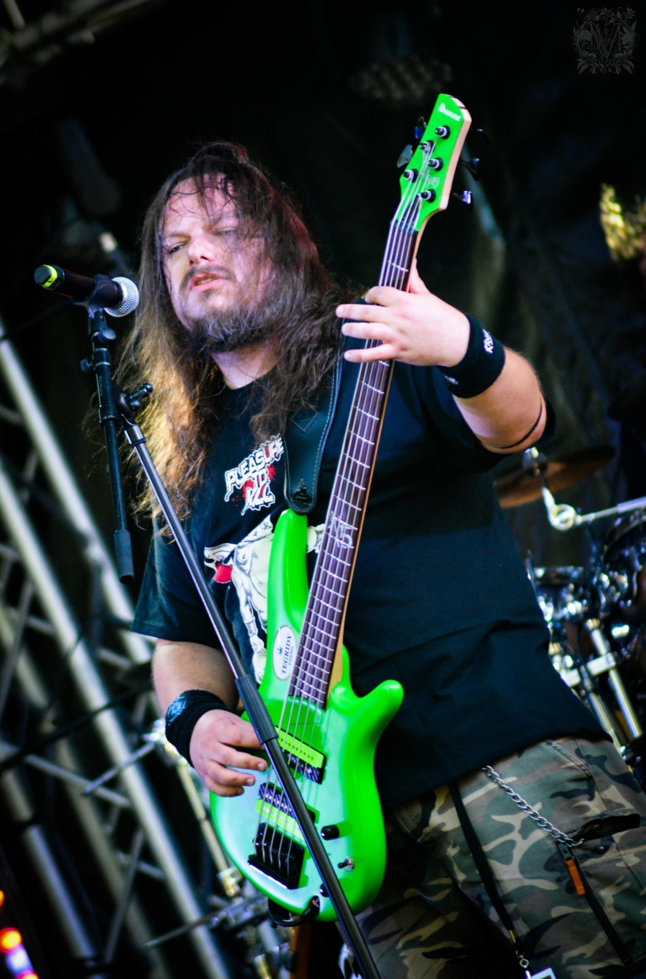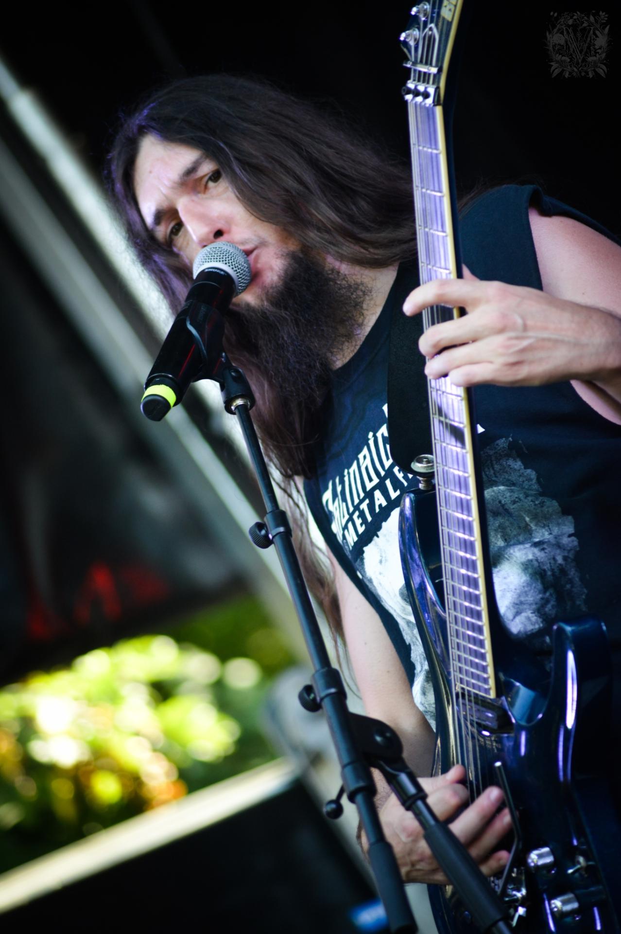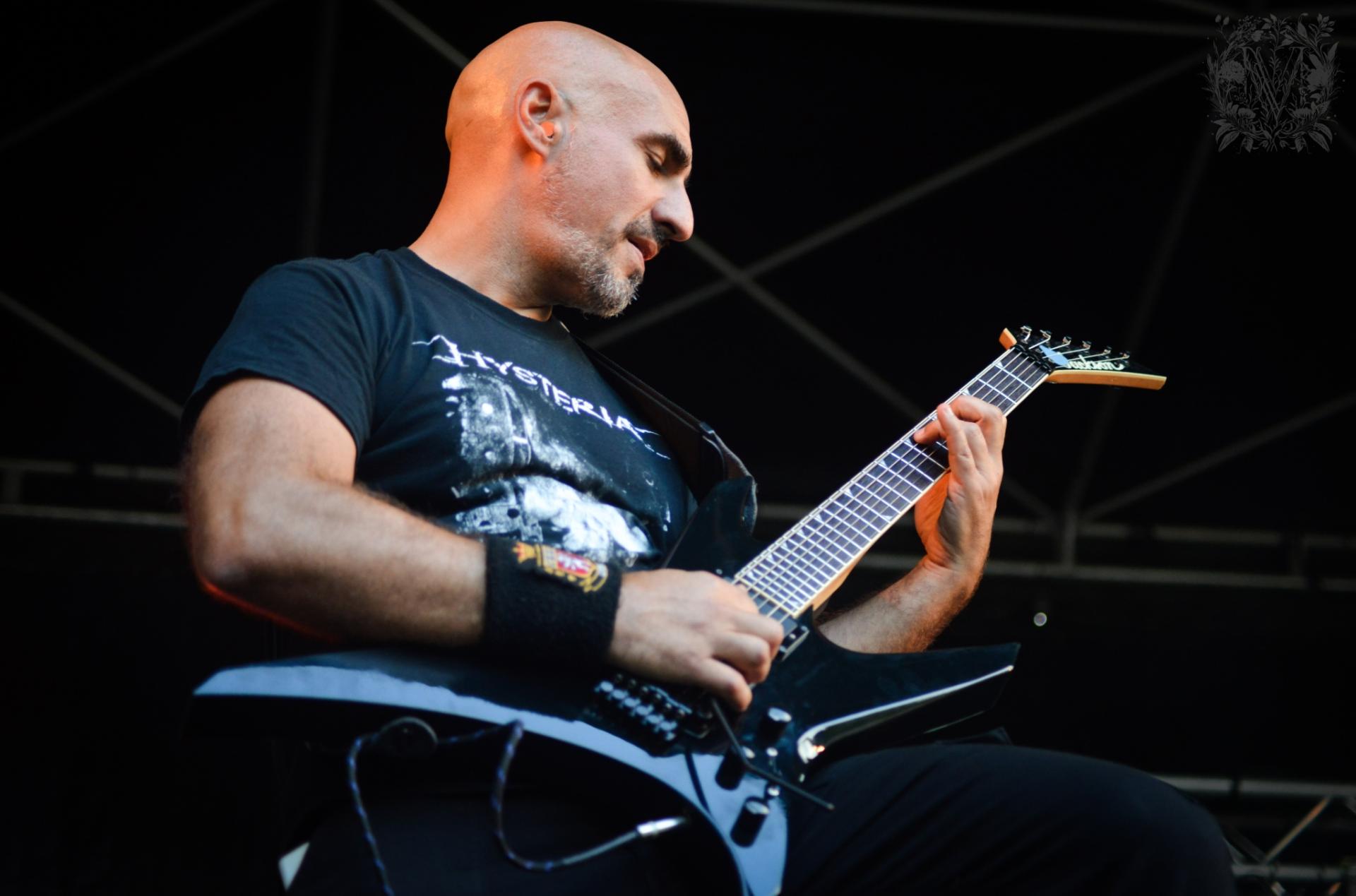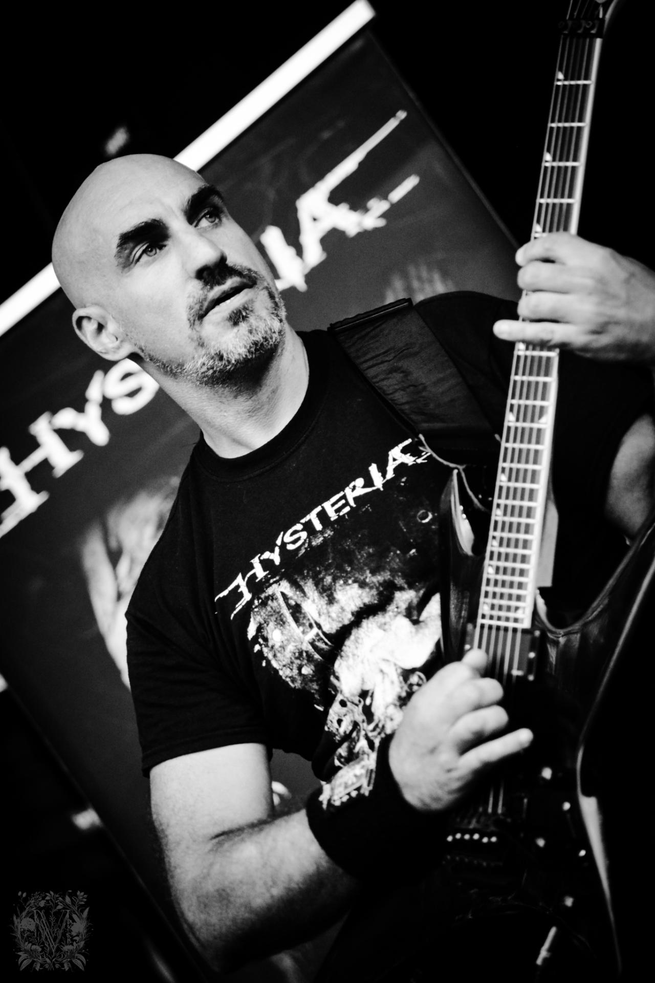 On revient au Death Metal avec les Lyonnais d’HYSTERIA. Le combo arrive sur scène pour nous asséner une nouvelle dose de sons brutaux, écrasants et martiaux. Et malgré tout ça, ils arrivent quand même à partir sur des passages un peu plus mélodiques. Le public ne tardera pas à répondre aux assauts du combo, se déchaînant une fois de plus sur un death metal bien old-school (oui encore !). Les planches de la Eye Stage n’ont jamais autant tremblée qu’aujourd’hui avec des formations comme celle-ci, toujours généreux en technique et en acharnement que ce soit sur les cordes des guitares, les tomes et les caisses de la batterie et les dissonances dans les micros. HYSTERIA nous a convaincu par un tel déferlement de puissance, et preuve en est que la scène Française à son lot d’excellents groupes.