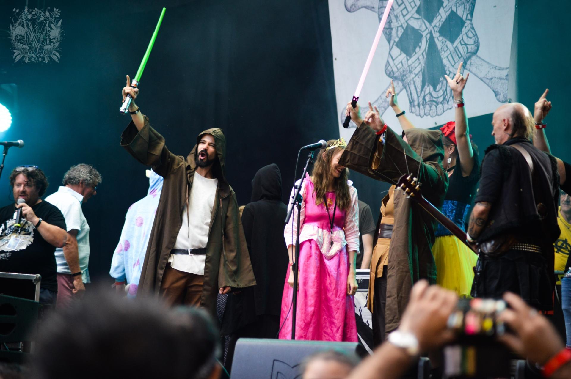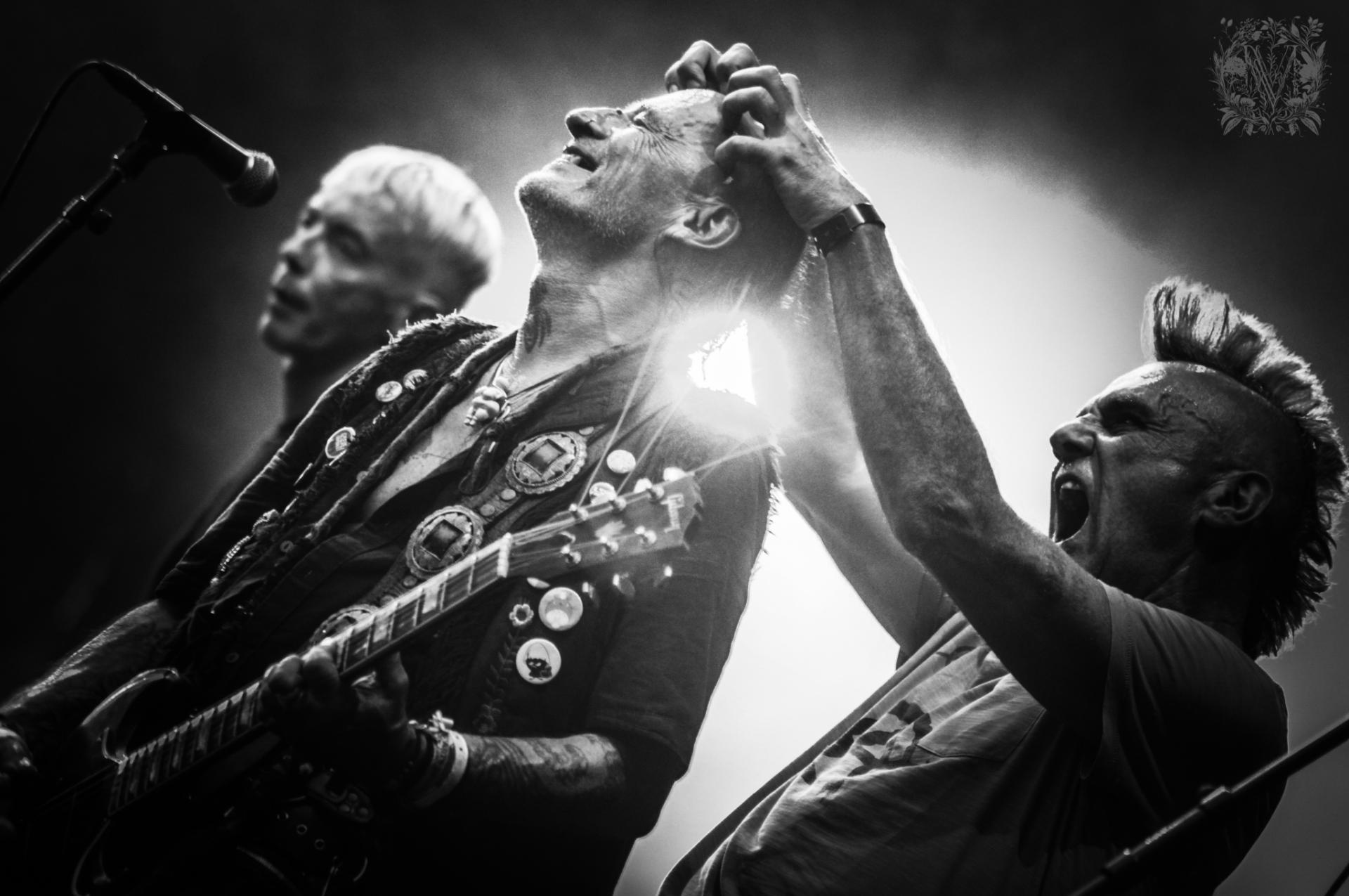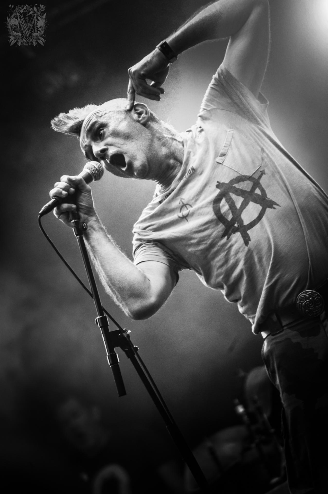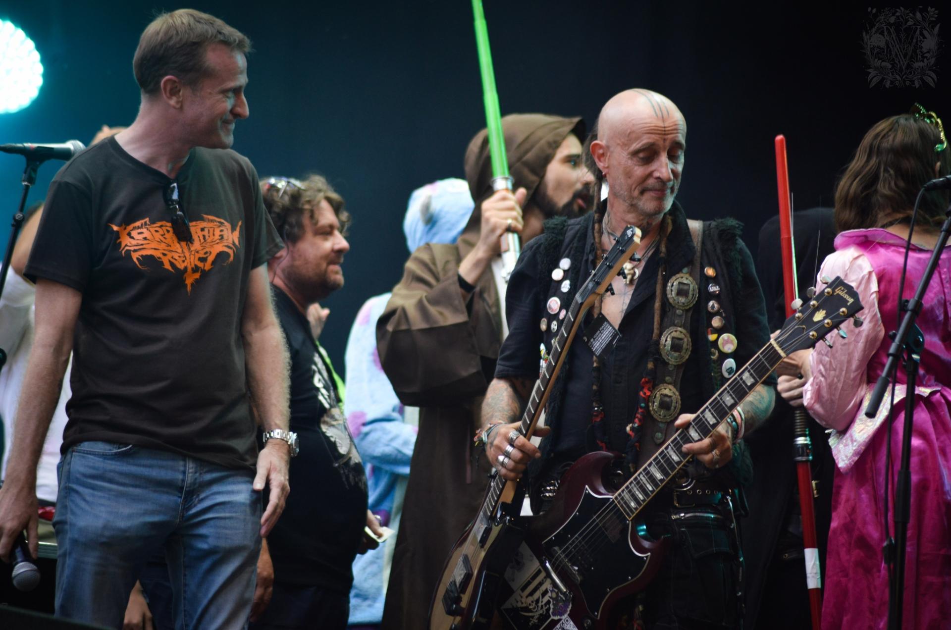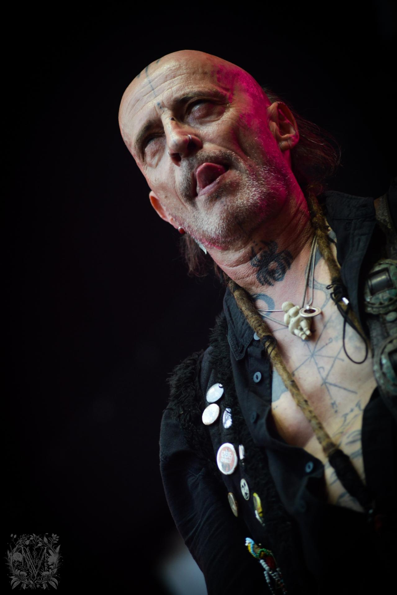 On vous parle rarement de Punk sur WTH, c’est donc une bonne occasion avec les plus Bretons des keupons, LES RAMONEURS DE MENHIR. Si on met de côté l’aspect politique des sujets abordés, on ne peut qu’apprécier le rythme des morceaux et surtout de pouvoir entendre des instruments traditionnels comme le biniou kozh et la bombarde, ce qui caractérise le son du groupe et ses origines, sans oublier les chansons chantées en Breton. Hermat ! Et au moins le son est vraiment nickel. Par contre, ce qui peut être lassant, c’est le rythme des chansons qui restent sur la même lancée, d’autant que le groupe joue sans batteur, avec une boite à rythme. Ceci dit ce n’est pas plus mal car un batteur s’ennuierait à jouer à peu près les mêmes lignes de batterie. Mais c’est quand même suffisant pour faire bouger le public, surtout lorsque nous ressortent de quoi danser la gavotte avec Menez Daou, et grosse réaction sur la reprise de Porcherie des BÉRURIER NOIR. Après cette ambiance festive, place au dernier groupe de la Eye Stage.