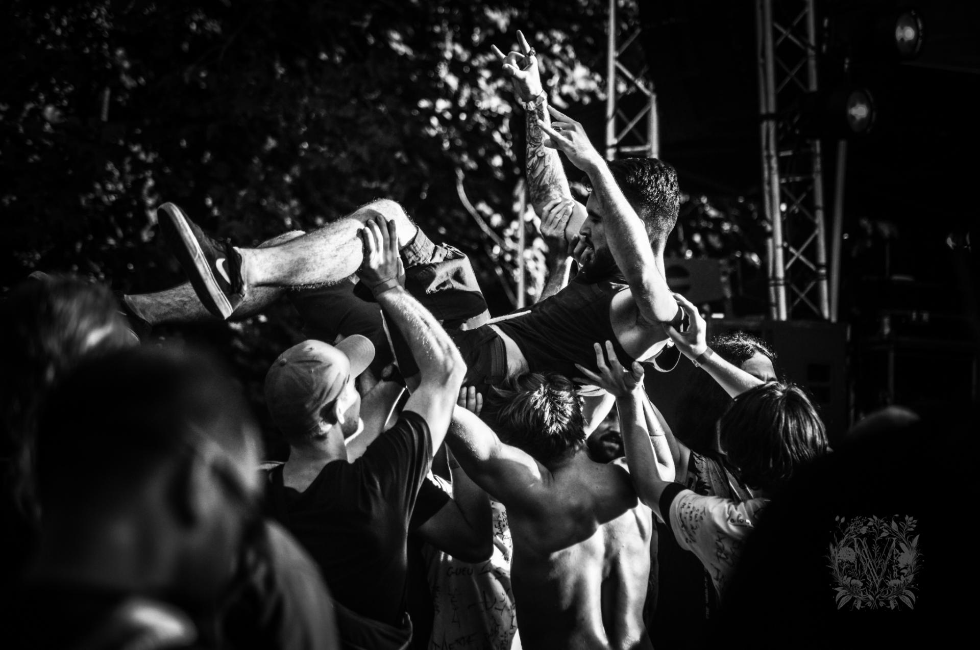 Probablement la plus grosse claque de la journée avec les Français de WAKING THE MISERY. On nous avait annoncé un show spécial et effectivement, il va l’être. C’est un bon paquet de festivaliers qui s’approche de la Menn’s Stage pour se défouler sur la musique du groupe qui possède déjà une bonne fanbase. WTM envoi ses titres comme des torgnoles auditives, beaucoup de puissance dans les riffs et évidemment ça alimente un pit qui se déchaîne. C’est qui est génial ce sont les mecs qui ne se prennent pas au sérieux et nous amusera avec beaucoup de second degré. Et tellement sympa qu’ils nous feront une distribution générale de t-shirt et on reprendra également quelques parts de Cheesecake.