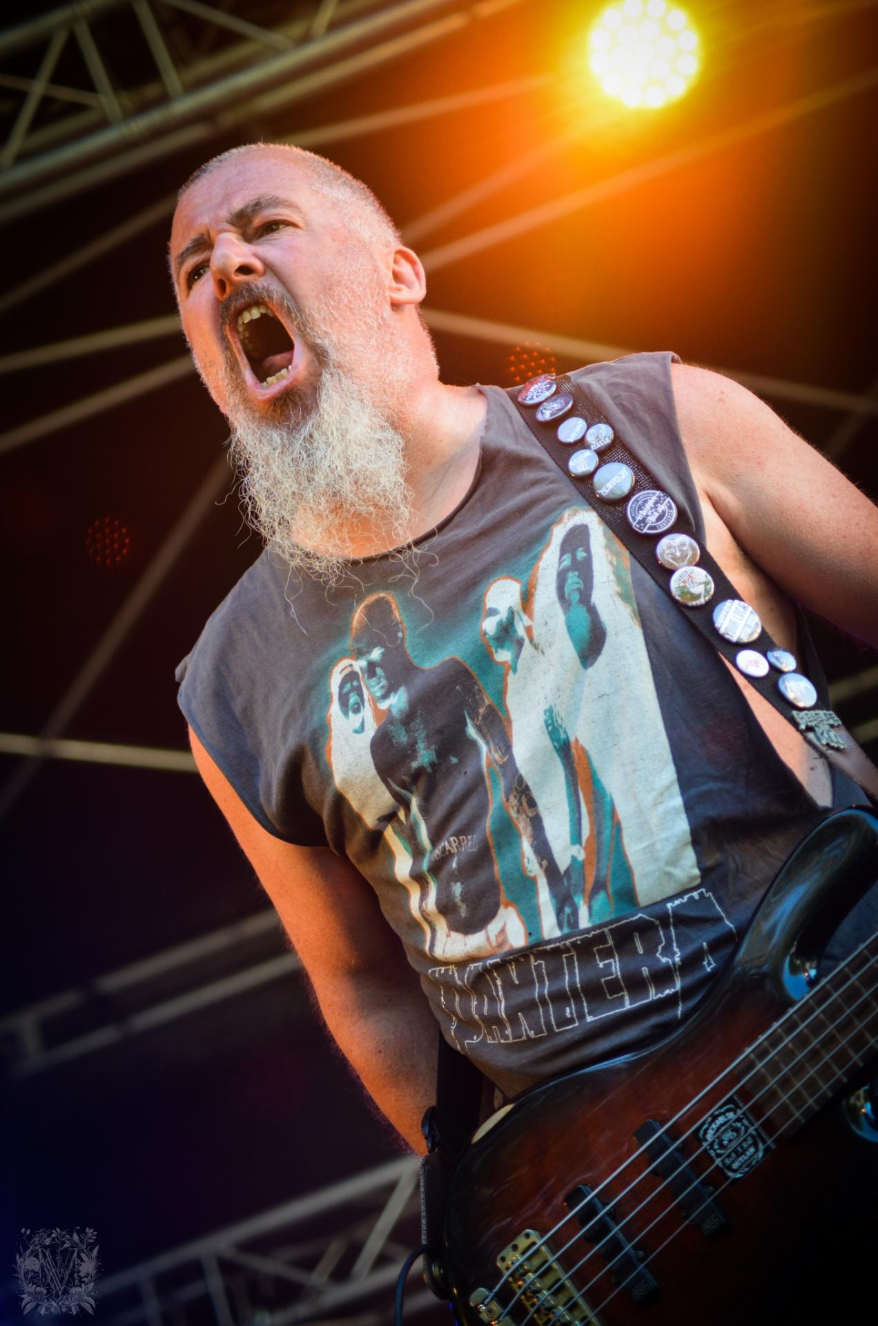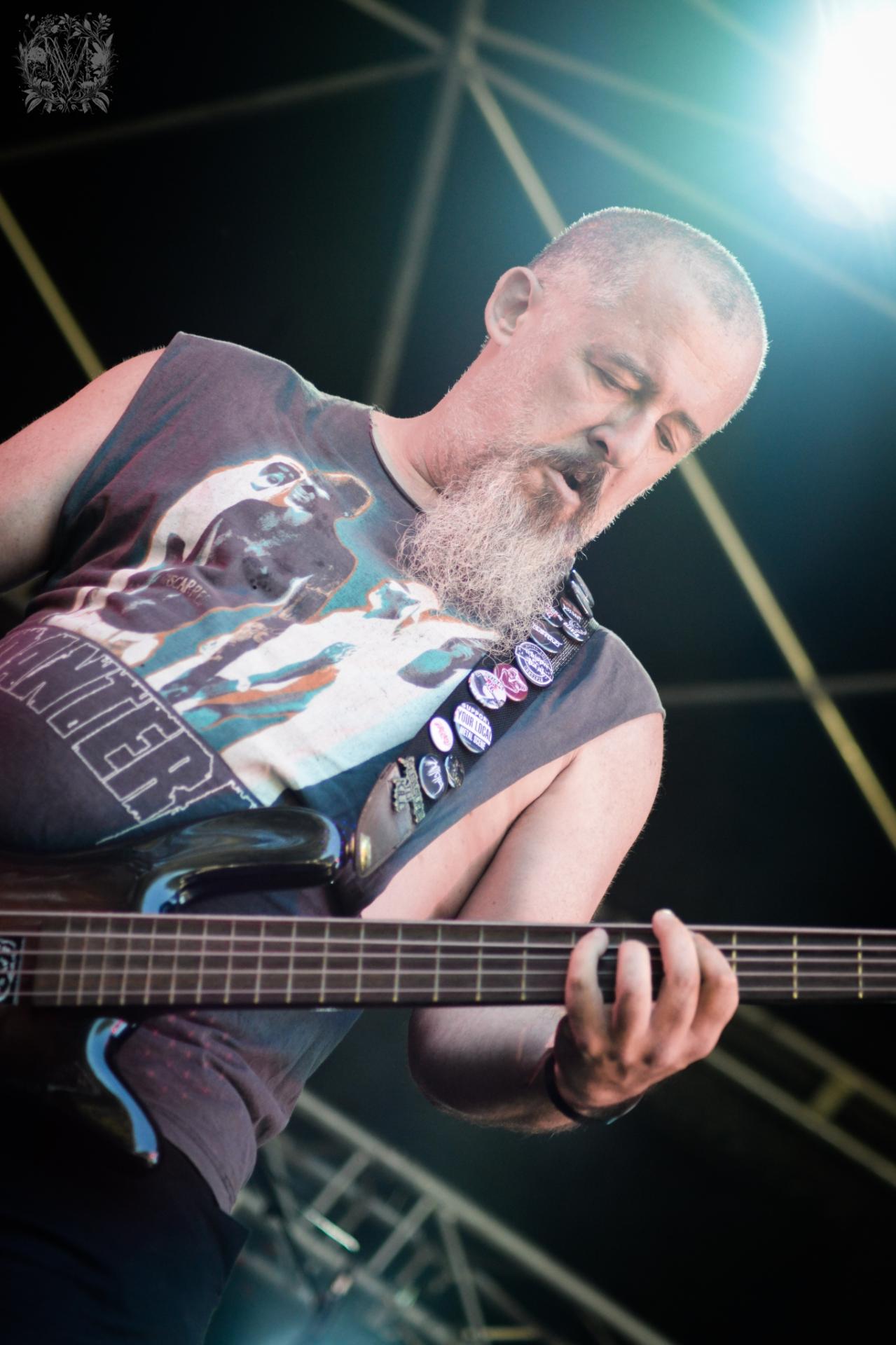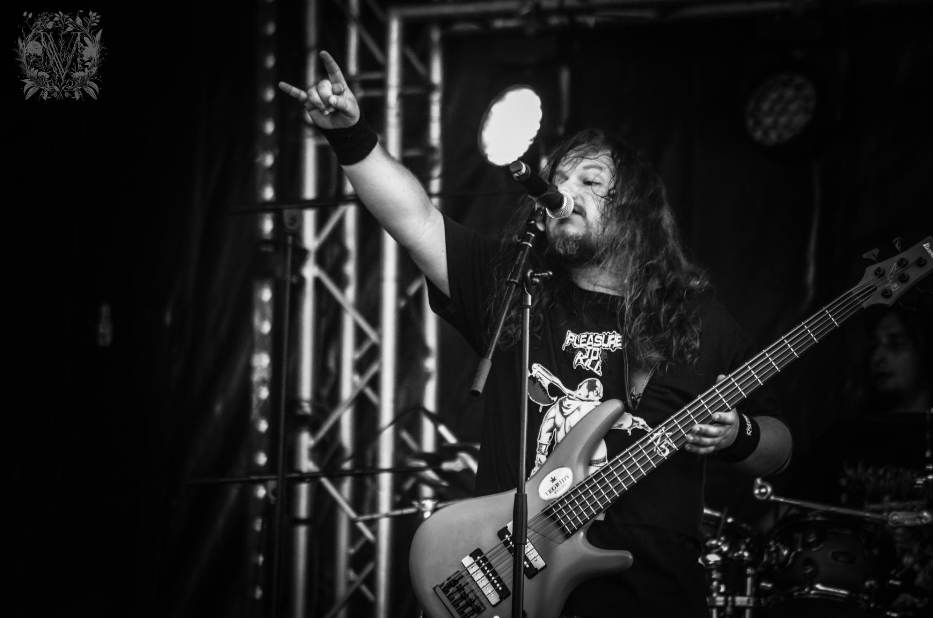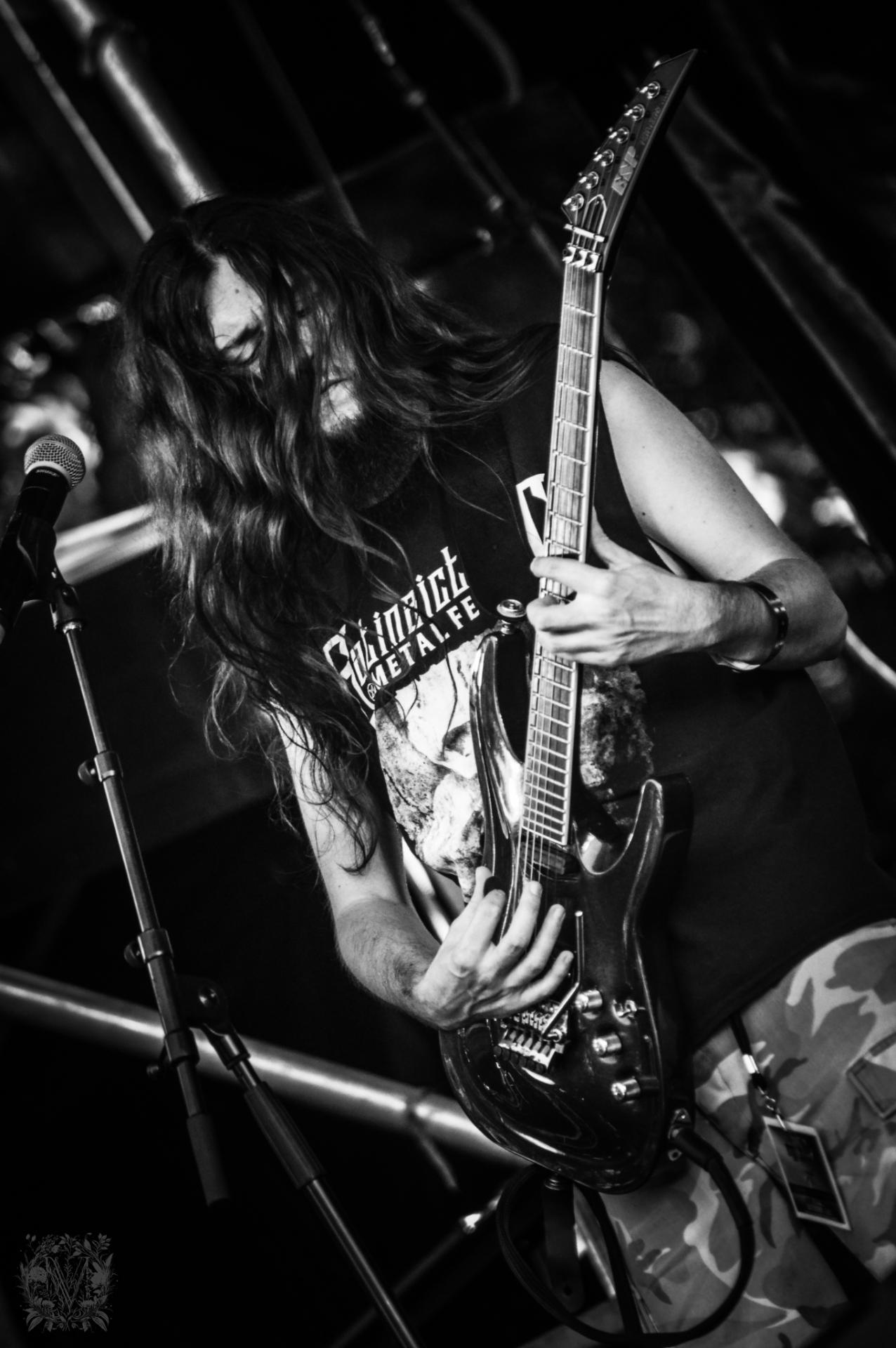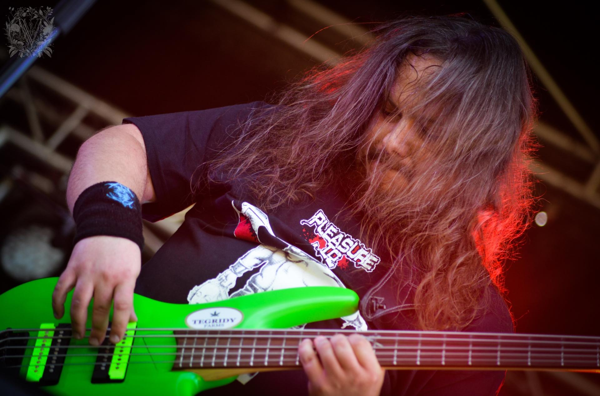 Avec ce nom de groupe, inutile de faire un dessin, on devine facilement quel style est joué par PLEASURE TO KILL et ce n’est certainement pas un hasard qu’il s’agisse du nom d’un album de KREATOR, c’est donc parti pour un set de Thrash Metal. Et ça ne loupe pas, les Orléanais nous envoie une musique très influencée par leurs homologues allemands. Les riffs de guitare sont joués avec vivacité et brutalité. Leur Thrash sonne bien à l’ancienne, du old-school toujours efficace, avec un chant rauque typique et maitrisé, de quoi être apprécié par les plus thrasheux parmi le public et à en juger par les quelques pogos, le groupe a fait son job tout en prenant plaisir à jouer leur style de prédilection.