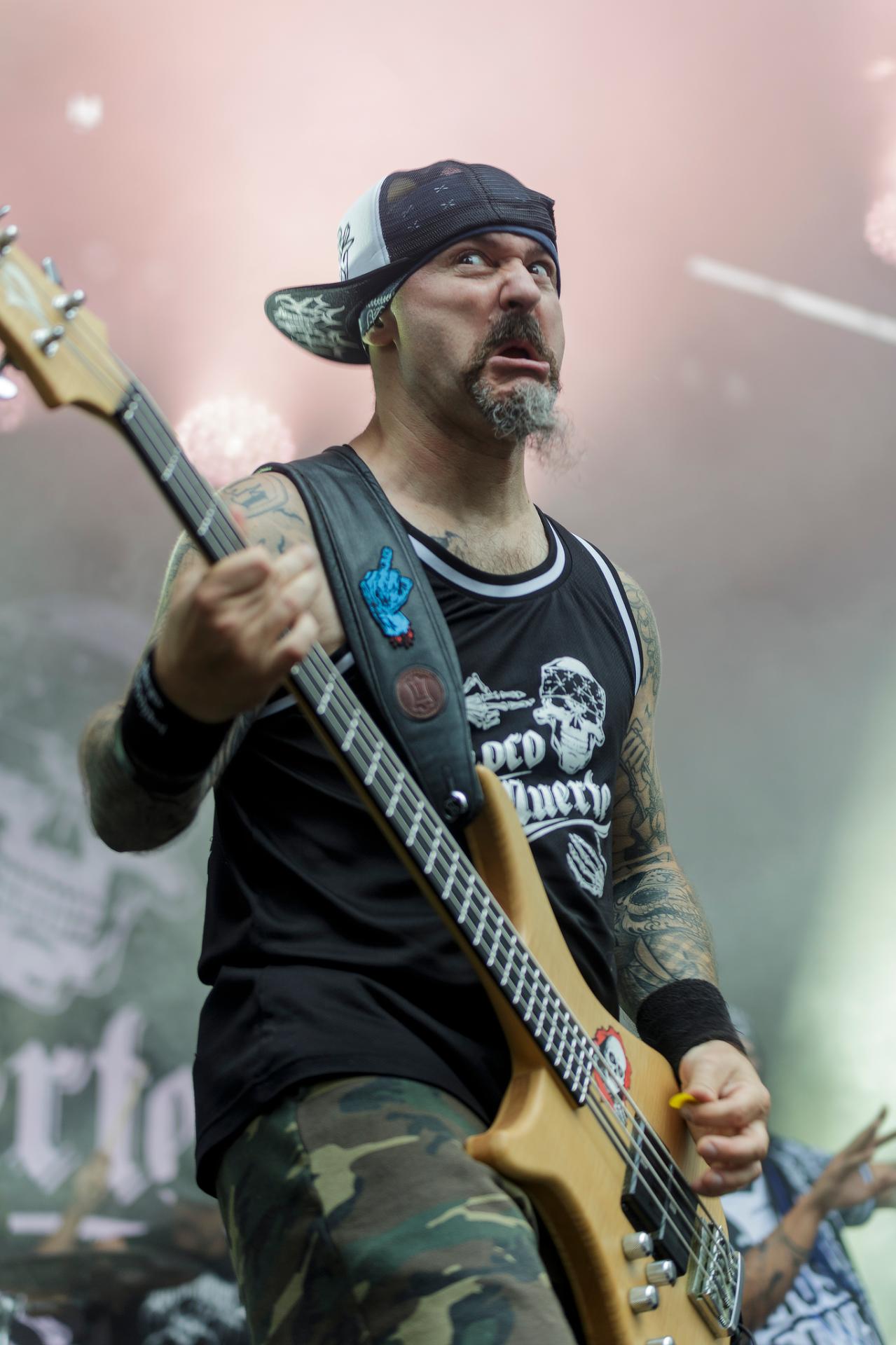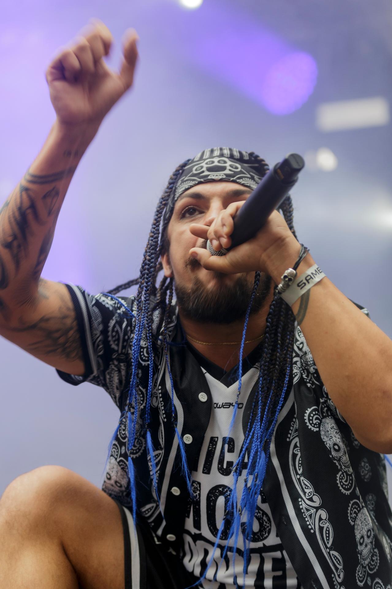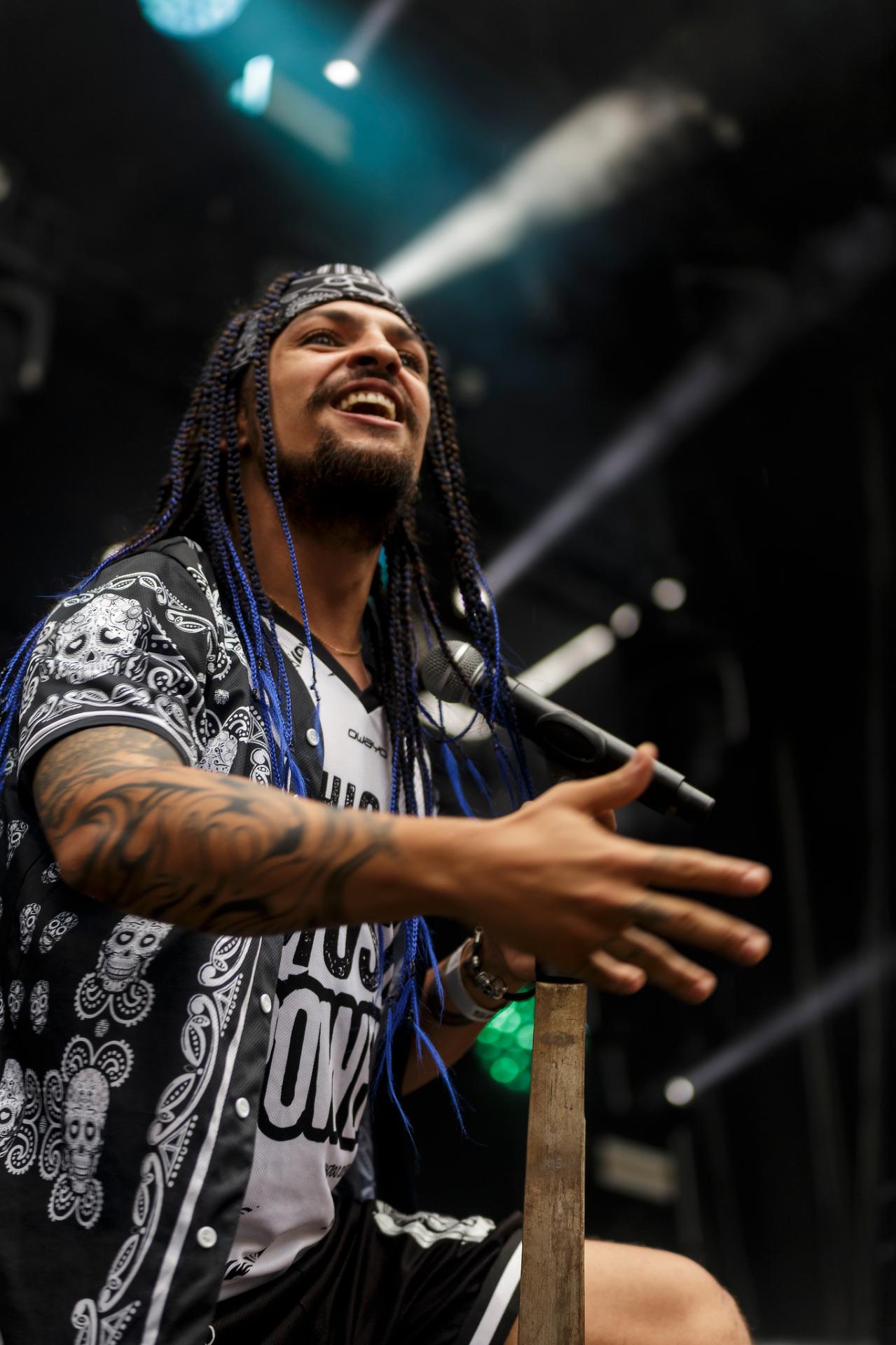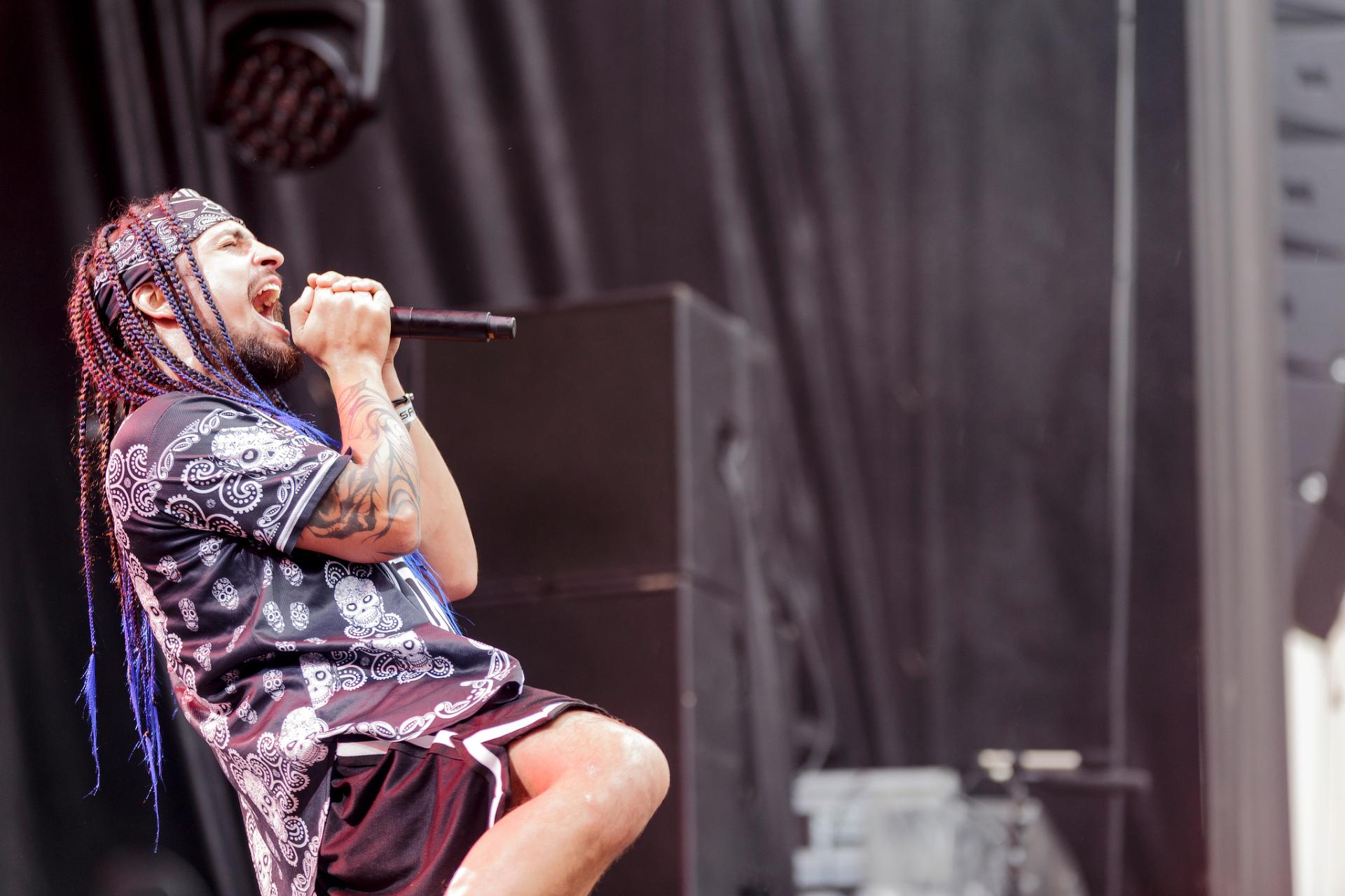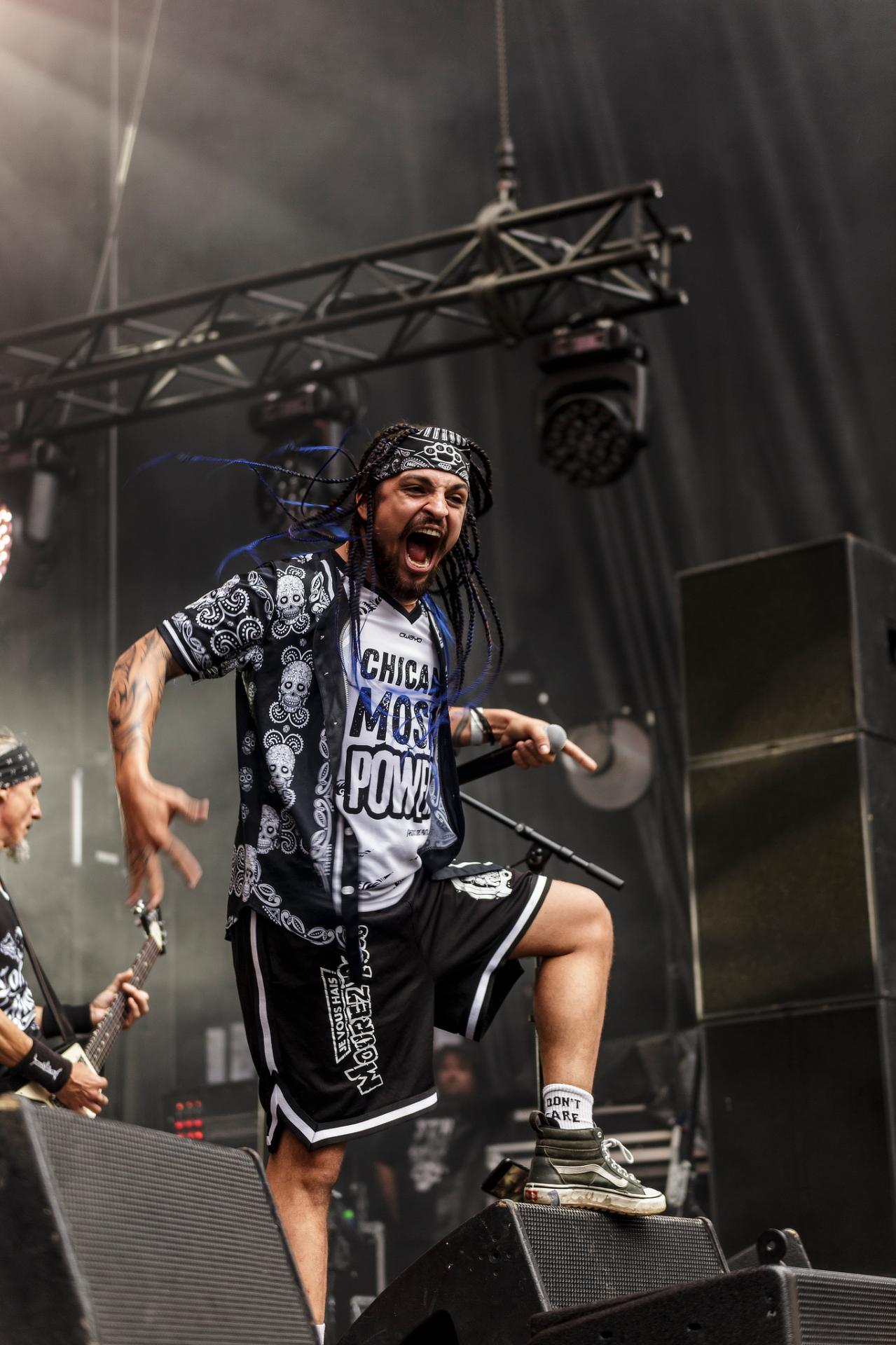 Un peu plus tard, c’est au tour des LOCOMUERTE de venir en découdre. Le groupe, déjà présent à l’édition 2022, ne se fera pas prier pour refaire une prestation qui restera dans les annales du festival. C’est aussi l’occasion pour eux de fêter les 10 ans de leur chanteur El Termito au sein du groupe, un véritable excité du bocal qui ne se contente pas de chanter mais aussi de jouer les casse-cou sur scène entre cascades et cabrioles. Le groupe déglingue tout sur son passage avec son crossover hardcore mêlé à une énergie théâtrale. Leur interaction avec le public, notamment les lâchers de crocodiles gonflables et les performances en espagnol et en français, en font un moment qu’il ne fallait absolument pas rater, d’autant plus que les bandoleros nous offriront quelques extraits de leur nouvel album Parano Booster, un opus qui porte bien son nom puisque chaque moment du set nous booste pour la suite du festival. LOCOMUERTE nous a offert une prestation à la hauteur de sa réputation en mettant littéralement le feu au Parc de Villeroy avec une ambiance "mucho calor!"