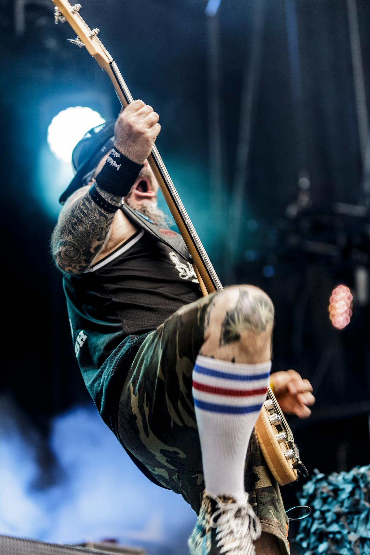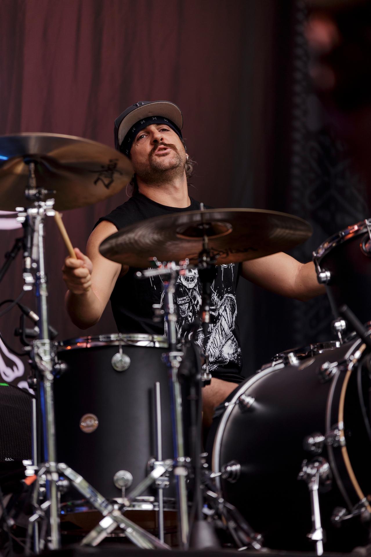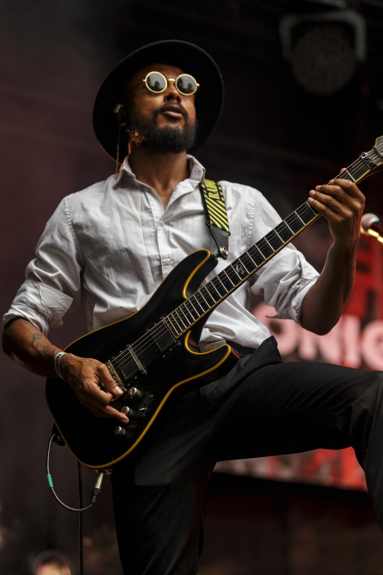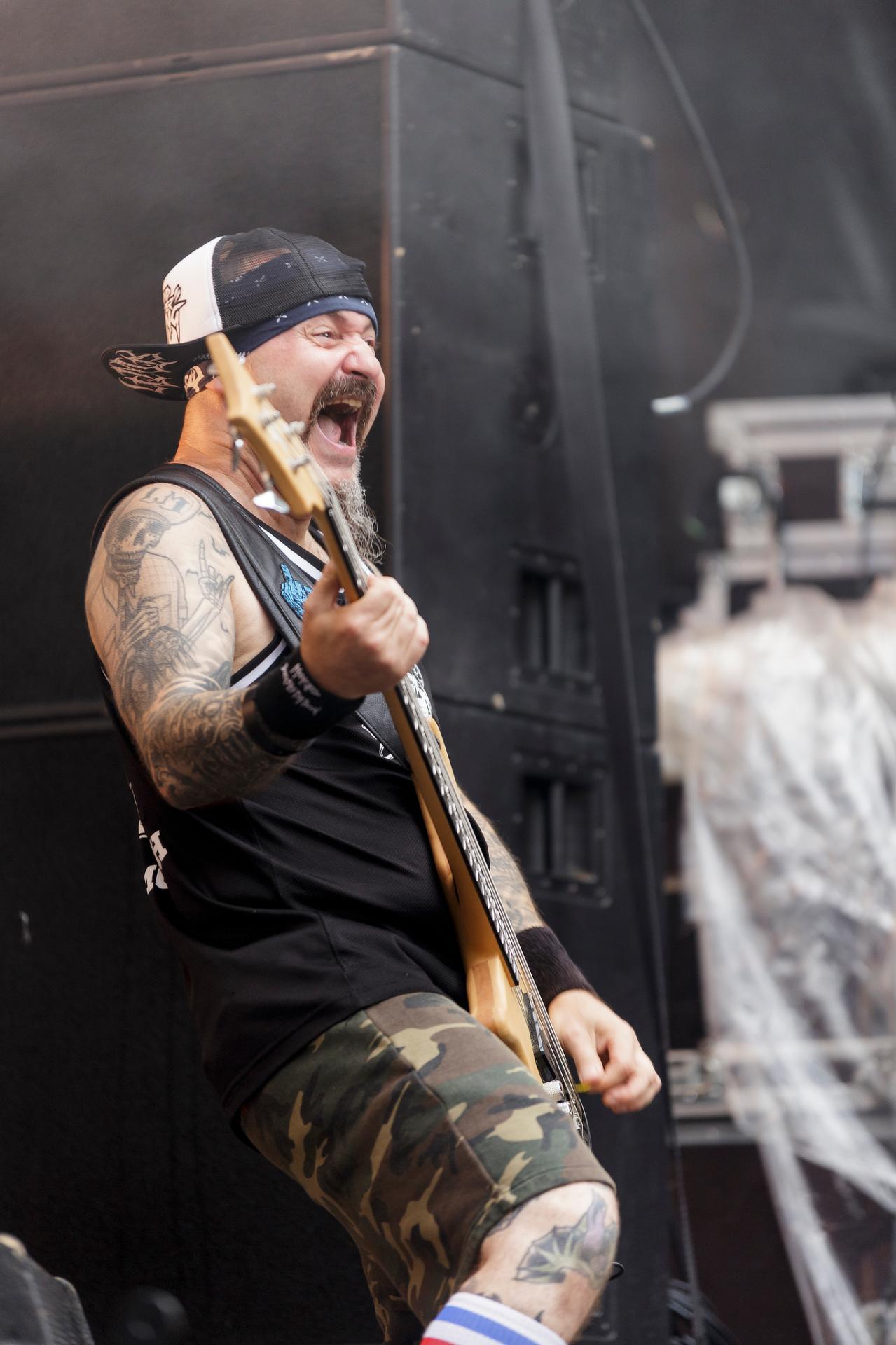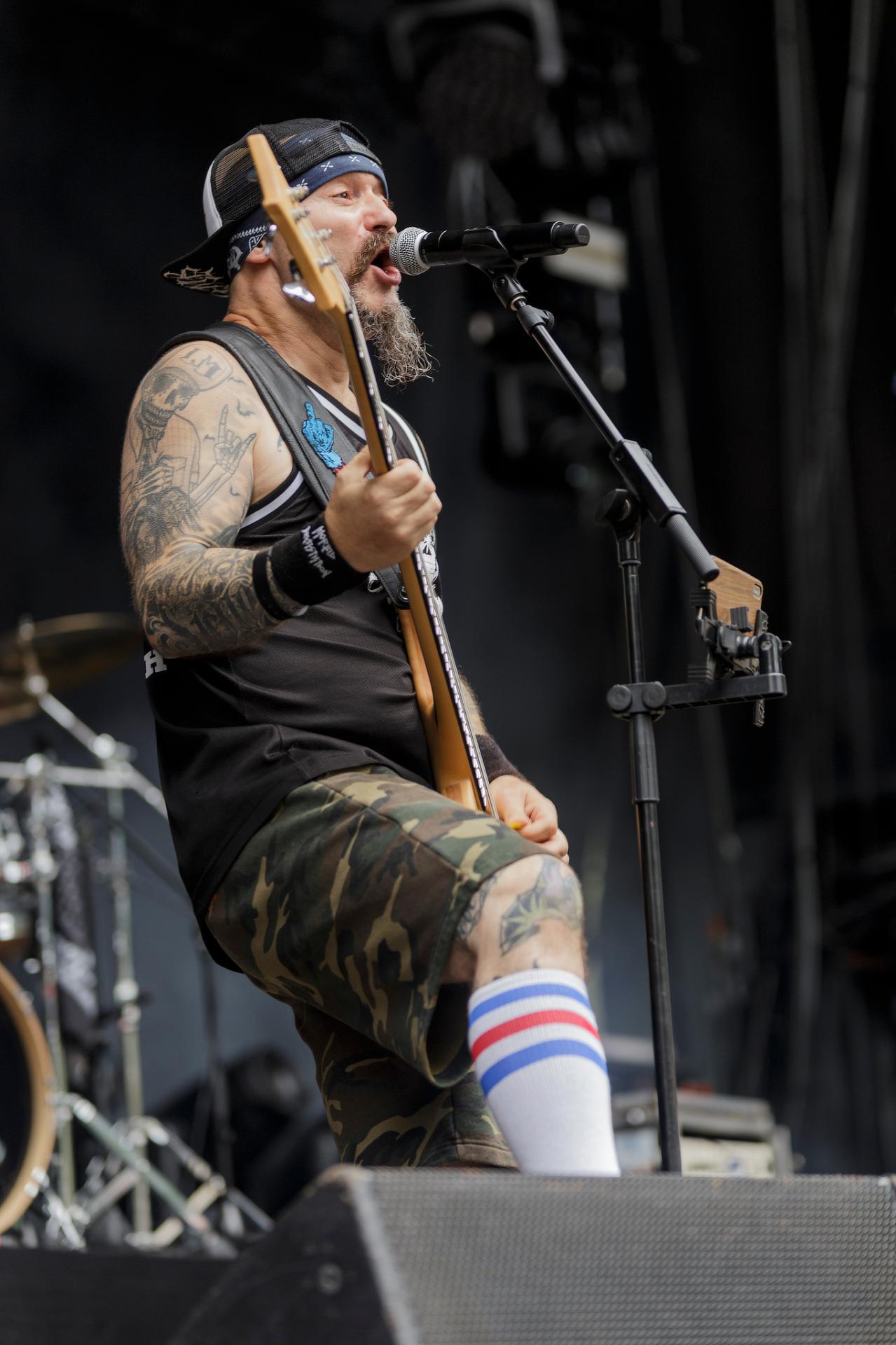 Un peu plus tard, c’est au tour des LOCOMUERTE de venir en découdre. Le groupe, déjà présent à l’édition 2022, ne se fera pas prier pour refaire une prestation qui restera dans les annales du festival. C’est aussi l’occasion pour eux de fêter les 10 ans de leur chanteur El Termito au sein du groupe, un véritable excité du bocal qui ne se contente pas de chanter mais aussi de jouer les casse-cou sur scène entre cascades et cabrioles. Le groupe déglingue tout sur son passage avec son crossover hardcore mêlé à une énergie théâtrale. Leur interaction avec le public, notamment les lâchers de crocodiles gonflables et les performances en espagnol et en français, en font un moment qu’il ne fallait absolument pas rater, d’autant plus que les bandoleros nous offriront quelques extraits de leur nouvel album Parano Booster, un opus qui porte bien son nom puisque chaque moment du set nous booste pour la suite du festival. LOCOMUERTE nous a offert une prestation à la hauteur de sa réputation en mettant littéralement le feu au Parc de Villeroy avec une ambiance "mucho calor!"