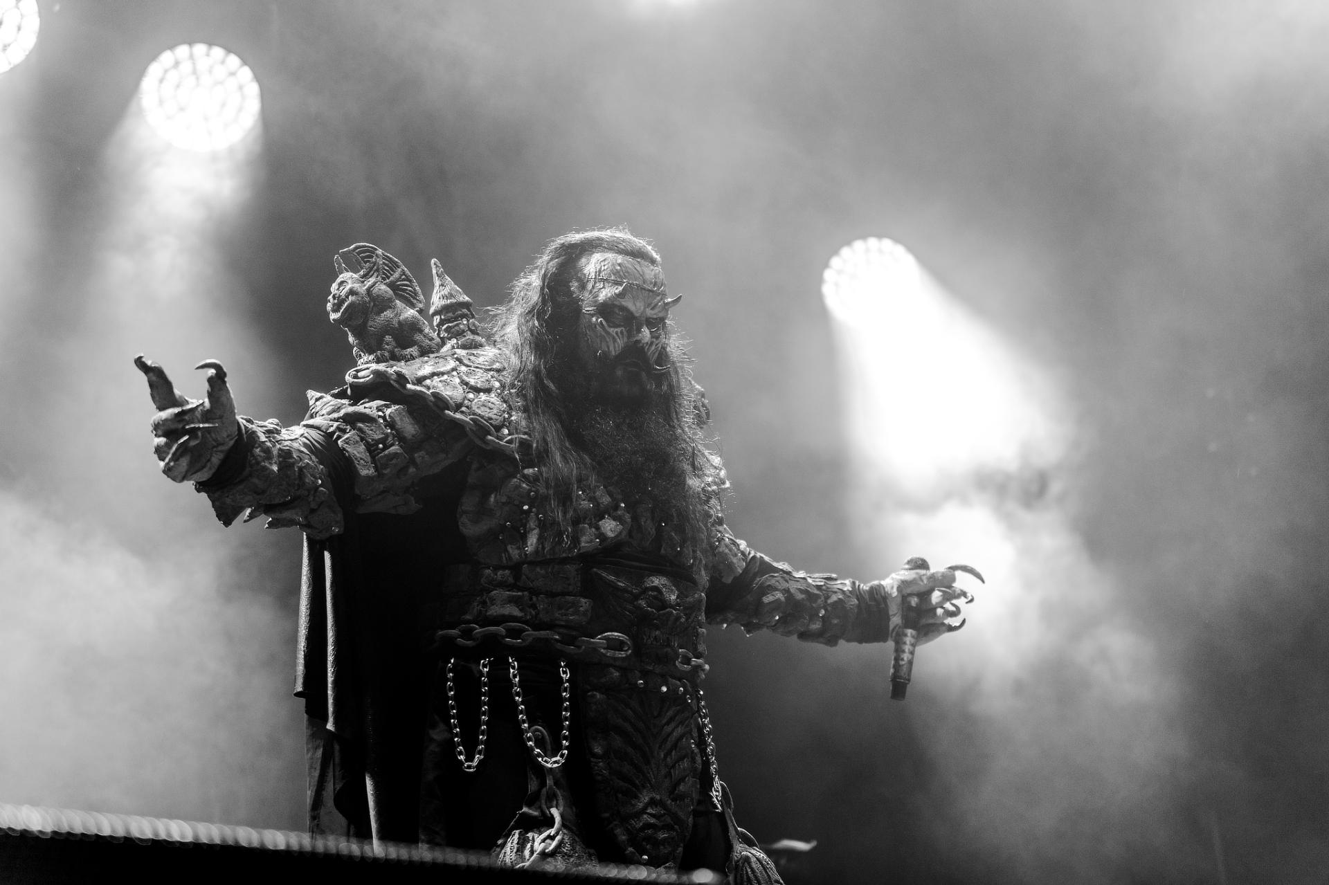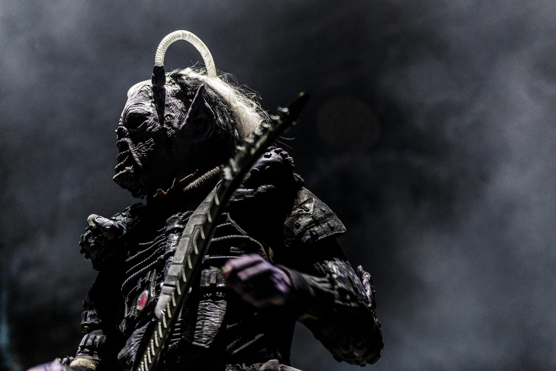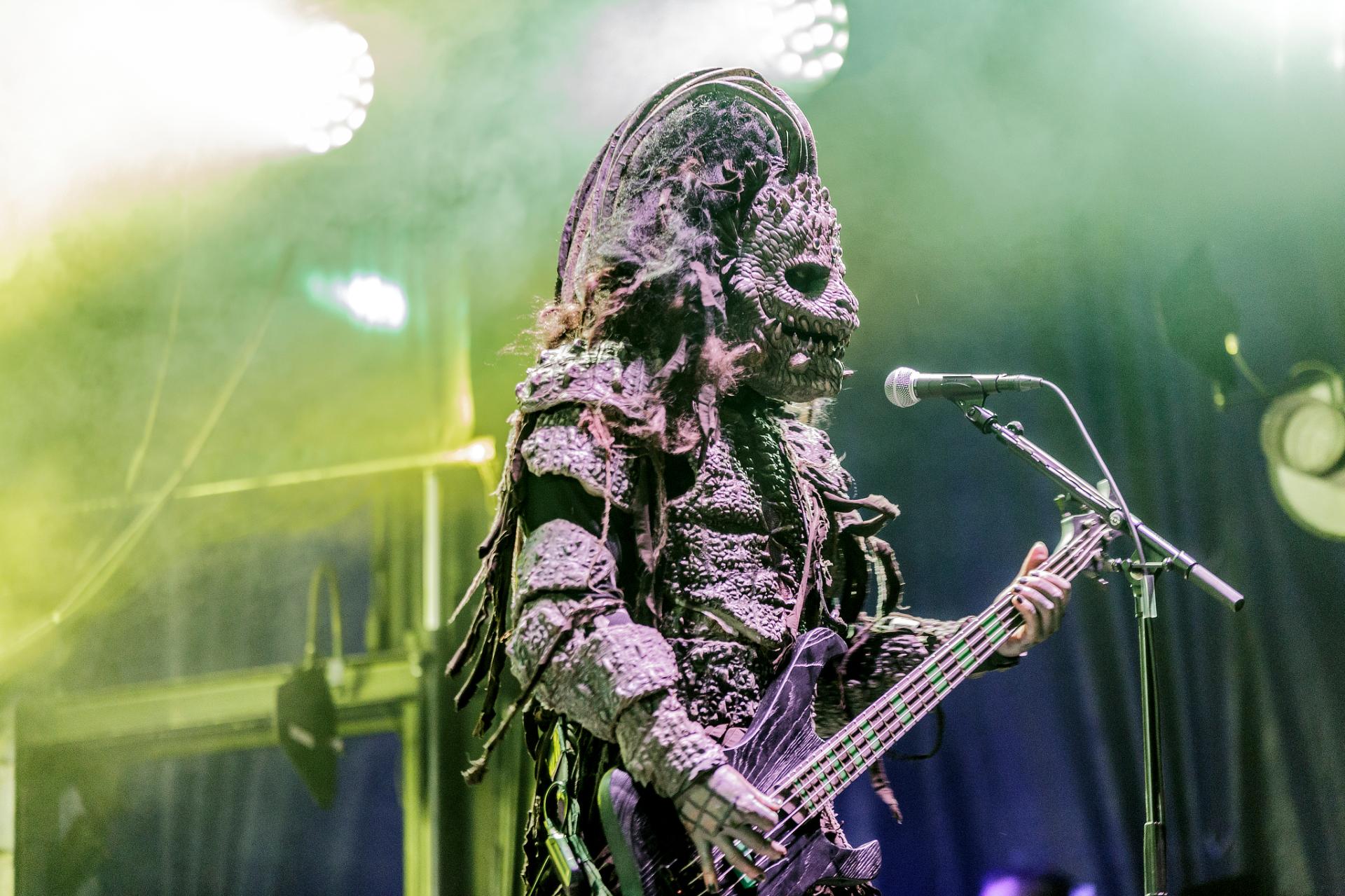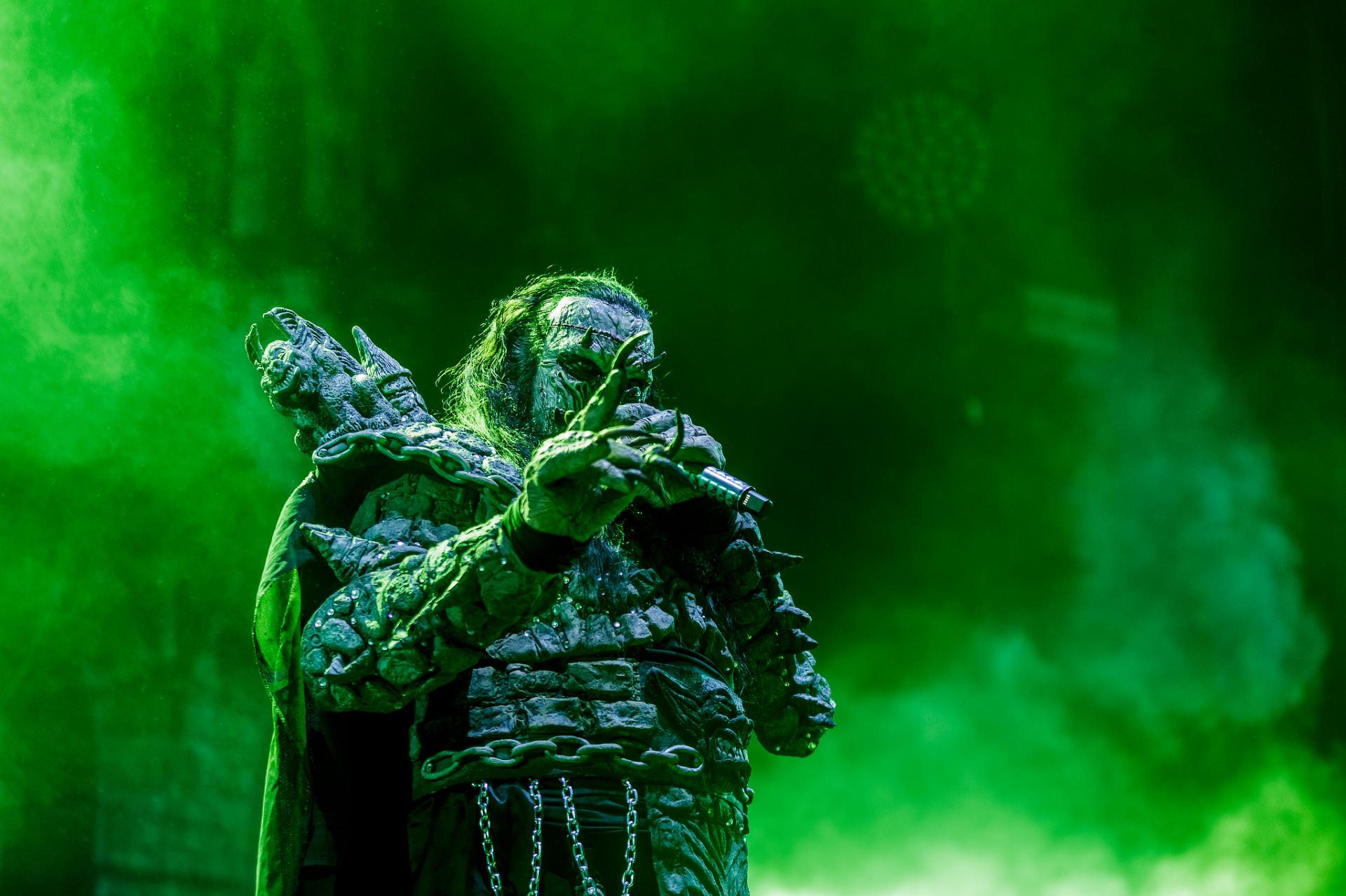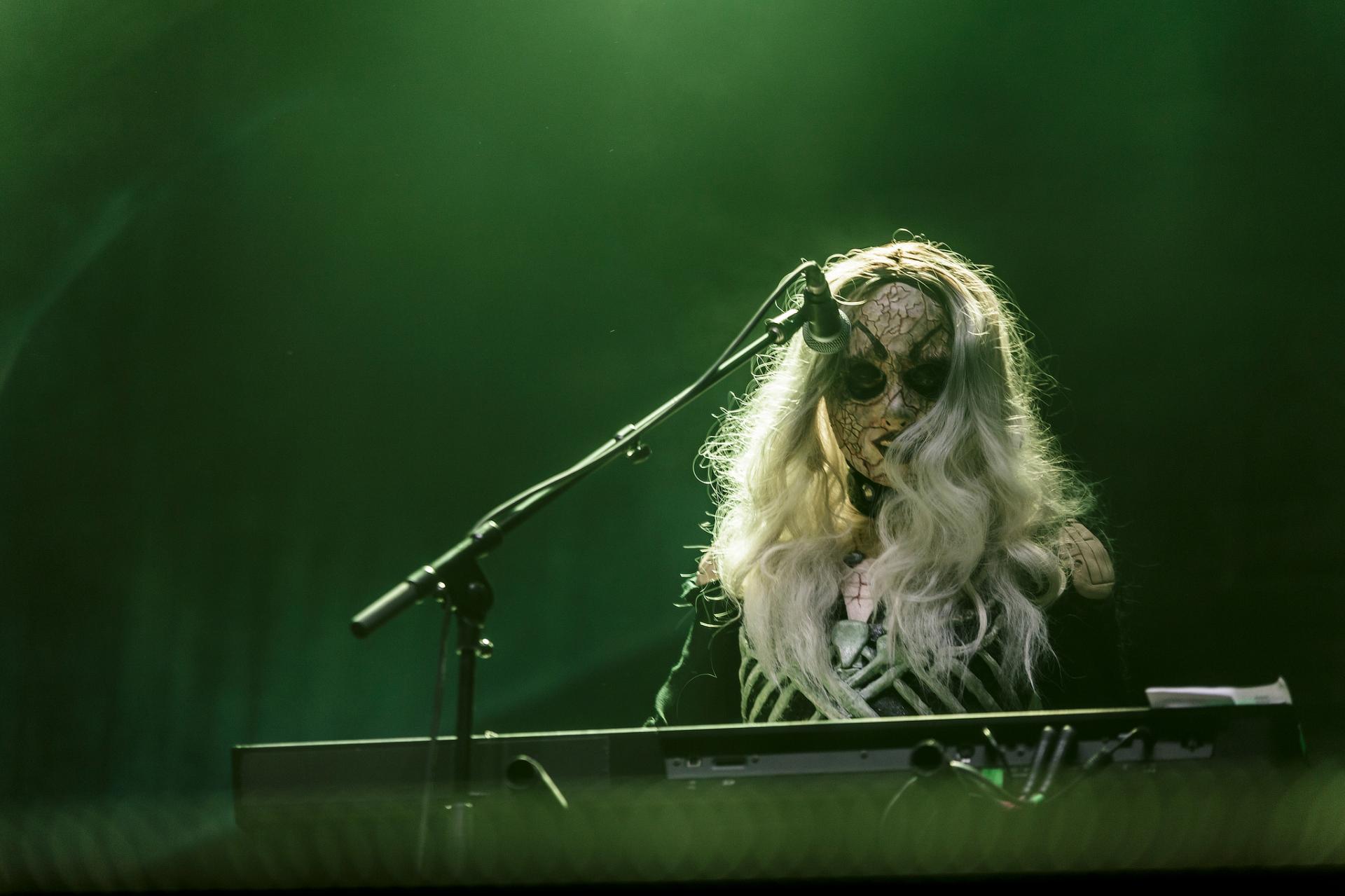 Après une bonne pause, le temps de se restaurer et d’écouter du coin de l’oreille les sets d’OPIUM DU PEUPLE et FATIMA, nous voilà fin prêt pour accueillir sa monstruosité Mr Lordi et ses camarades de LORDI. Cette fois, l’habituel décorum ne sera pas déployé et on notera une légère déception de certains. Alors pour ceux qui ont connu LORDI avec l’Eurovision 2006, le line-up n’a plus rien à avoir avec cette époque révolue puisque seul Mr Lordi (ce qui est logique) est toujours présent depuis. Mais l’âme du groupe subsiste toujours comme on peut le voir avec l’entrée théâtrale de la formation.