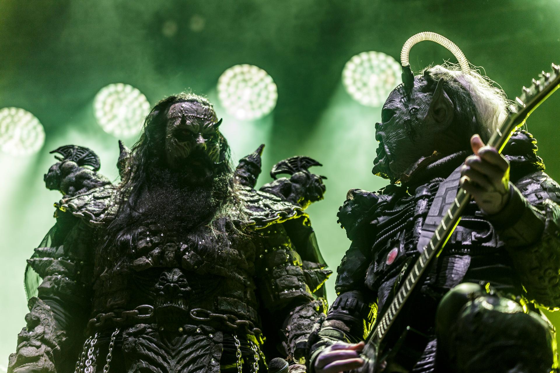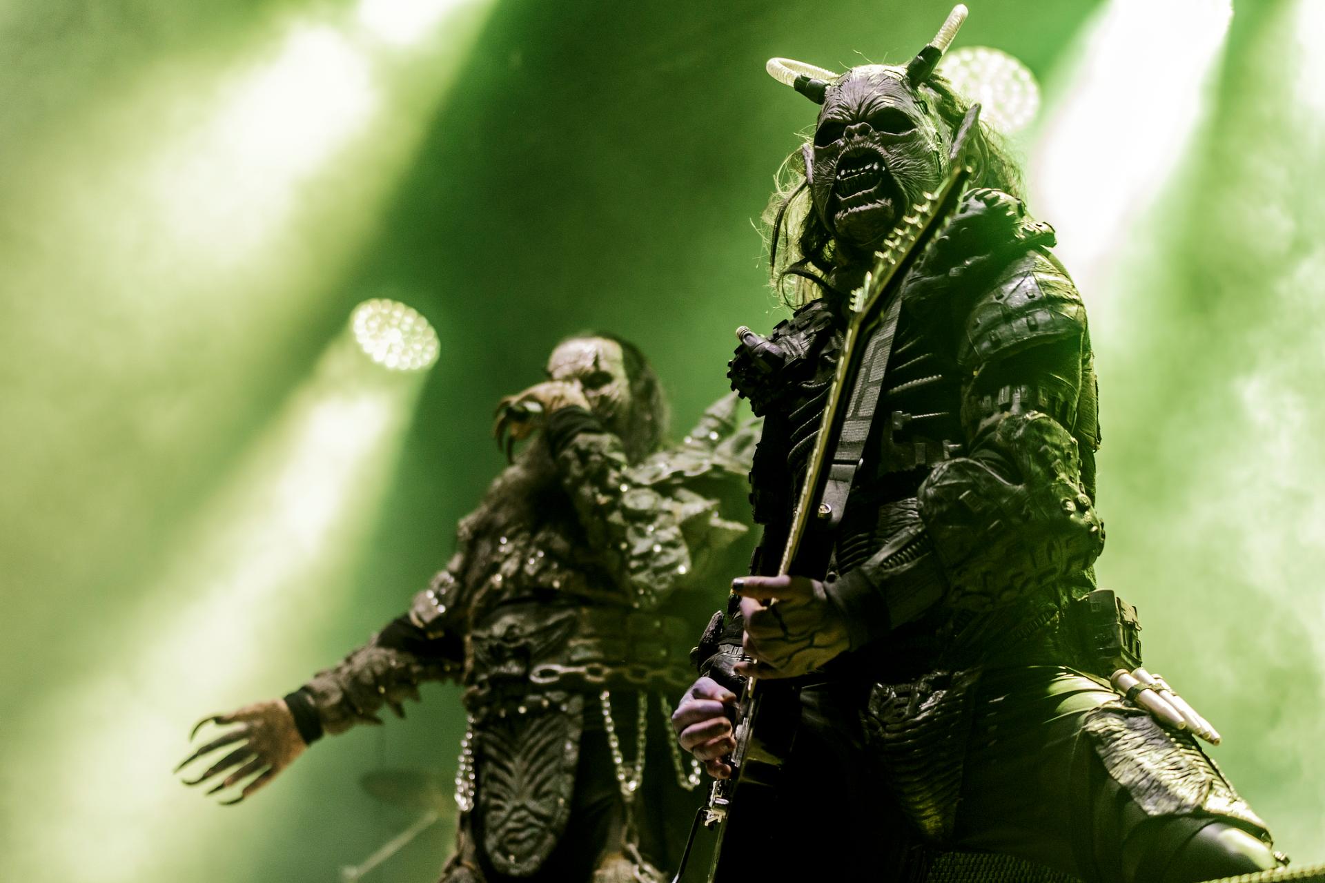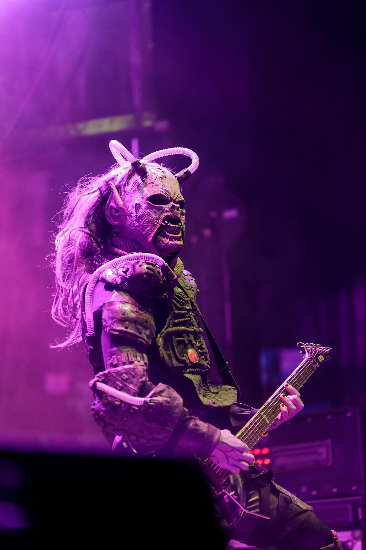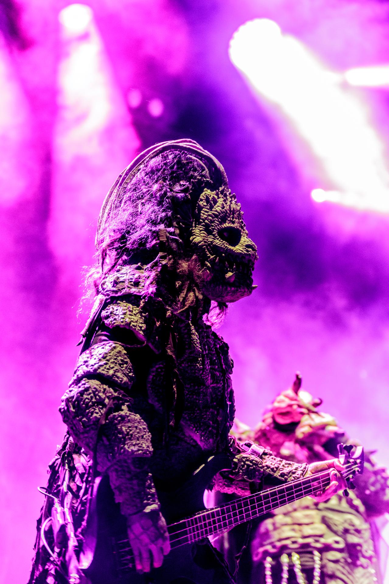 Après une bonne pause, le temps de se restaurer et d’écouter du coin de l’oreille les sets d’OPIUM DU PEUPLE et FATIMA, nous voilà fin prêt pour accueillir sa monstruosité Mr Lordi et ses camarades de LORDI. Cette fois, l’habituel décorum ne sera pas déployé et on notera une légère déception de certains. Alors pour ceux qui ont connu LORDI avec l’Eurovision 2006, le line-up n’a plus rien à avoir avec cette époque révolue puisque seul Mr Lordi (ce qui est logique) est toujours présent depuis. Mais l’âme du groupe subsiste toujours comme on peut le voir avec l’entrée théâtrale de la formation.