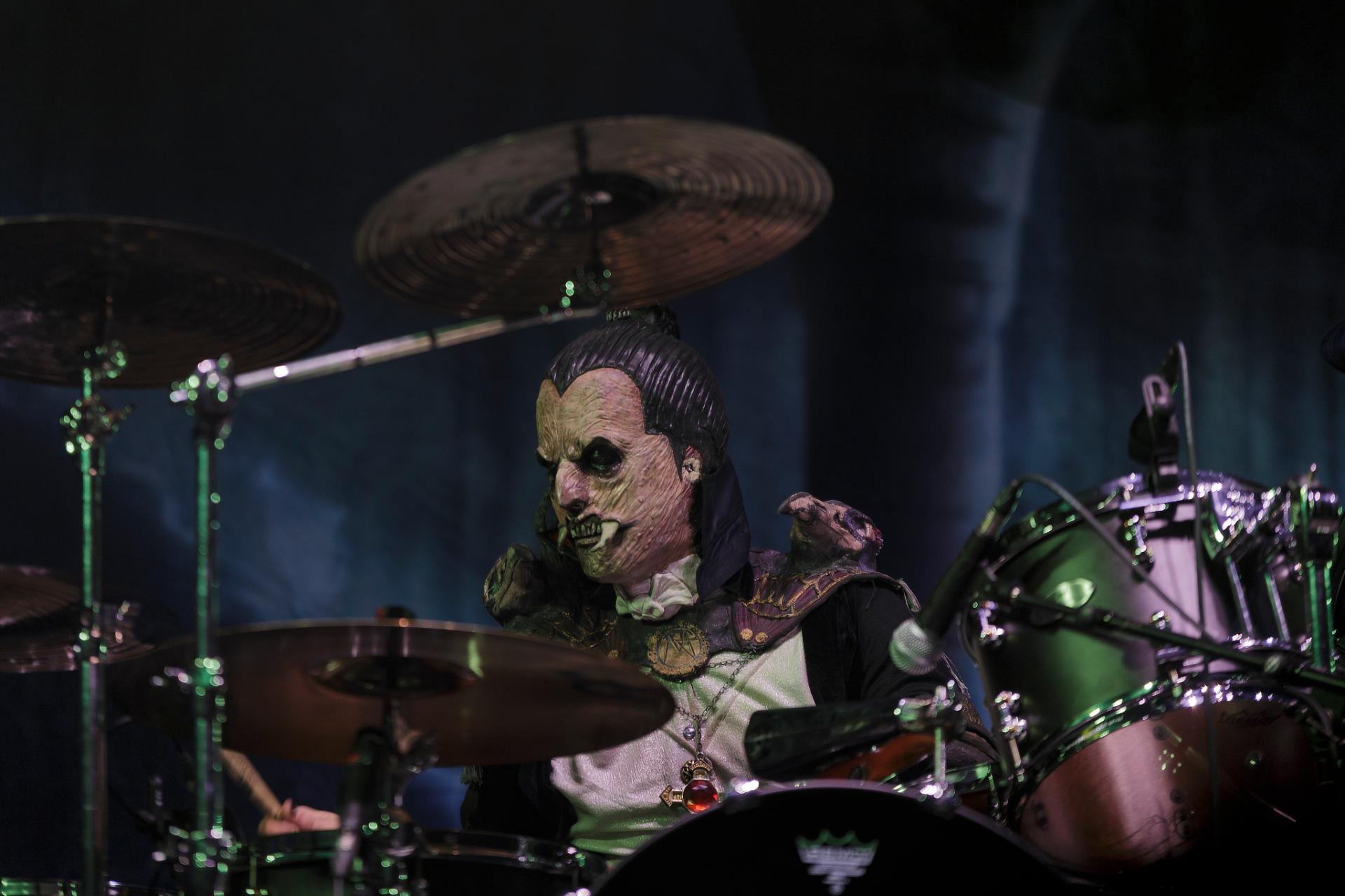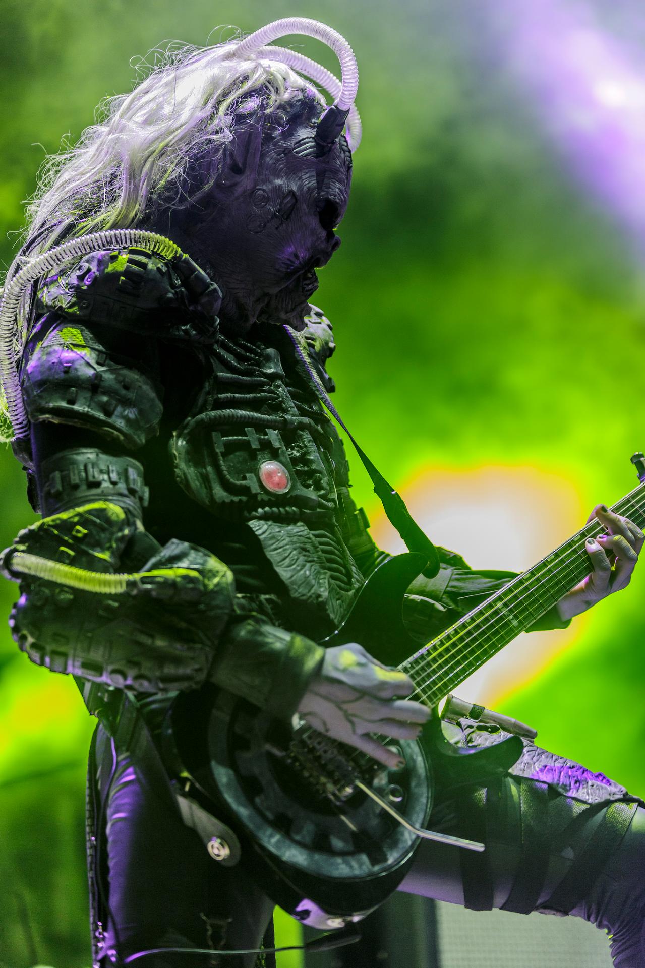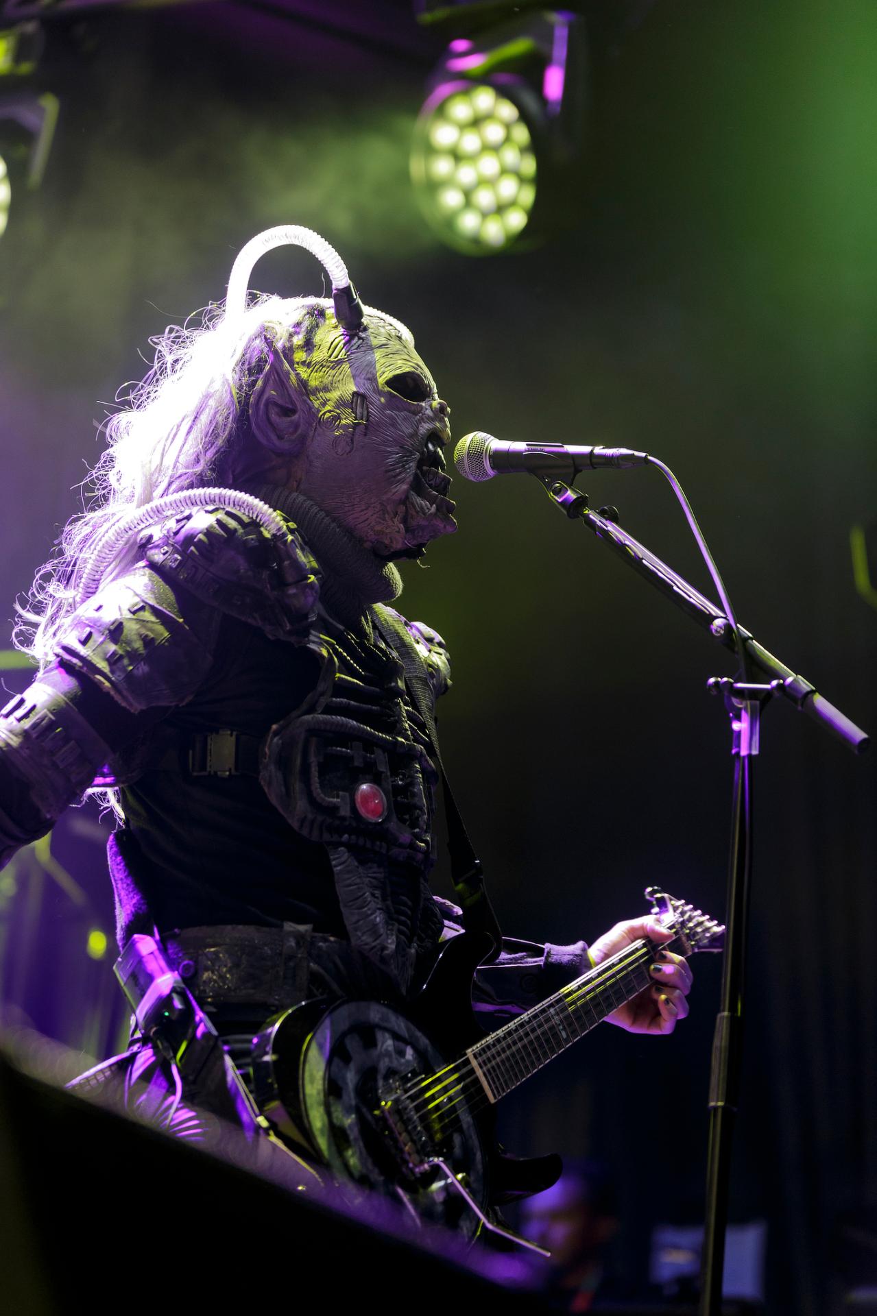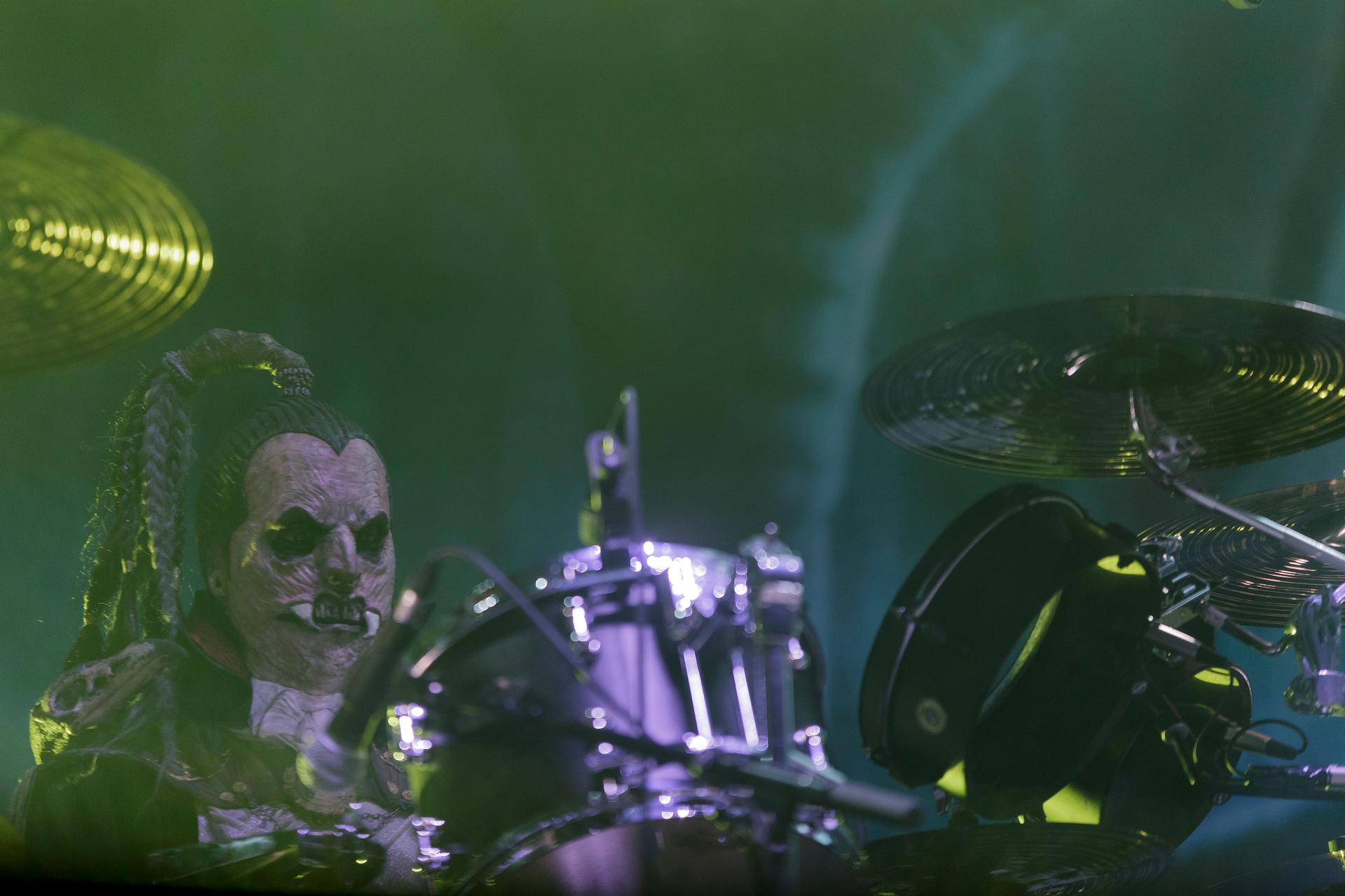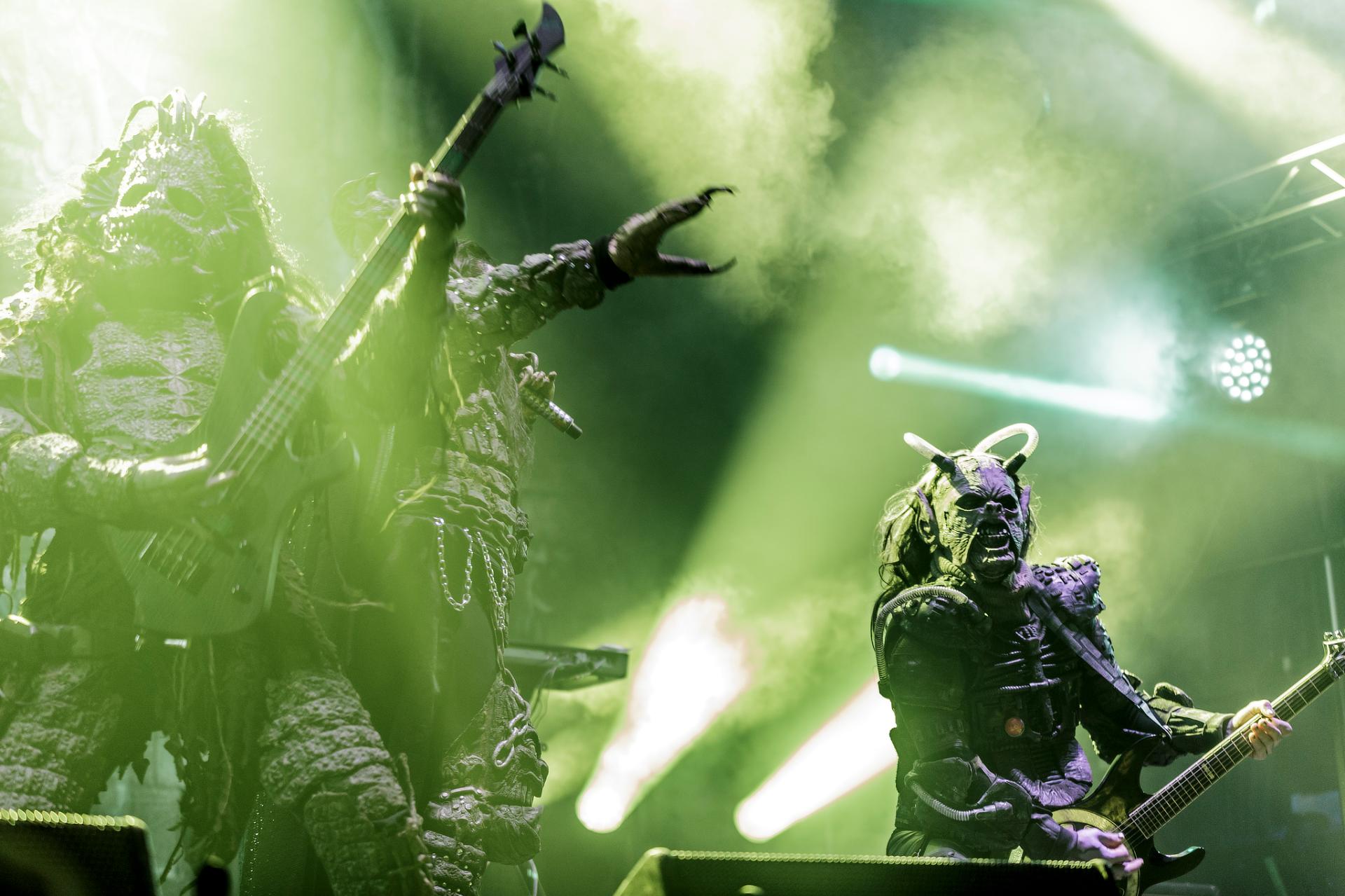 Après une bonne pause, le temps de se restaurer et d’écouter du coin de l’oreille les sets d’OPIUM DU PEUPLE et FATIMA, nous voilà fin prêt pour accueillir sa monstruosité Mr Lordi et ses camarades de LORDI. Cette fois, l’habituel décorum ne sera pas déployé et on notera une légère déception de certains. Alors pour ceux qui ont connu LORDI avec l’Eurovision 2006, le line-up n’a plus rien à avoir avec cette époque révolue puisque seul Mr Lordi (ce qui est logique) est toujours présent depuis. Mais l’âme du groupe subsiste toujours comme on peut le voir avec l’entrée théâtrale de la formation.