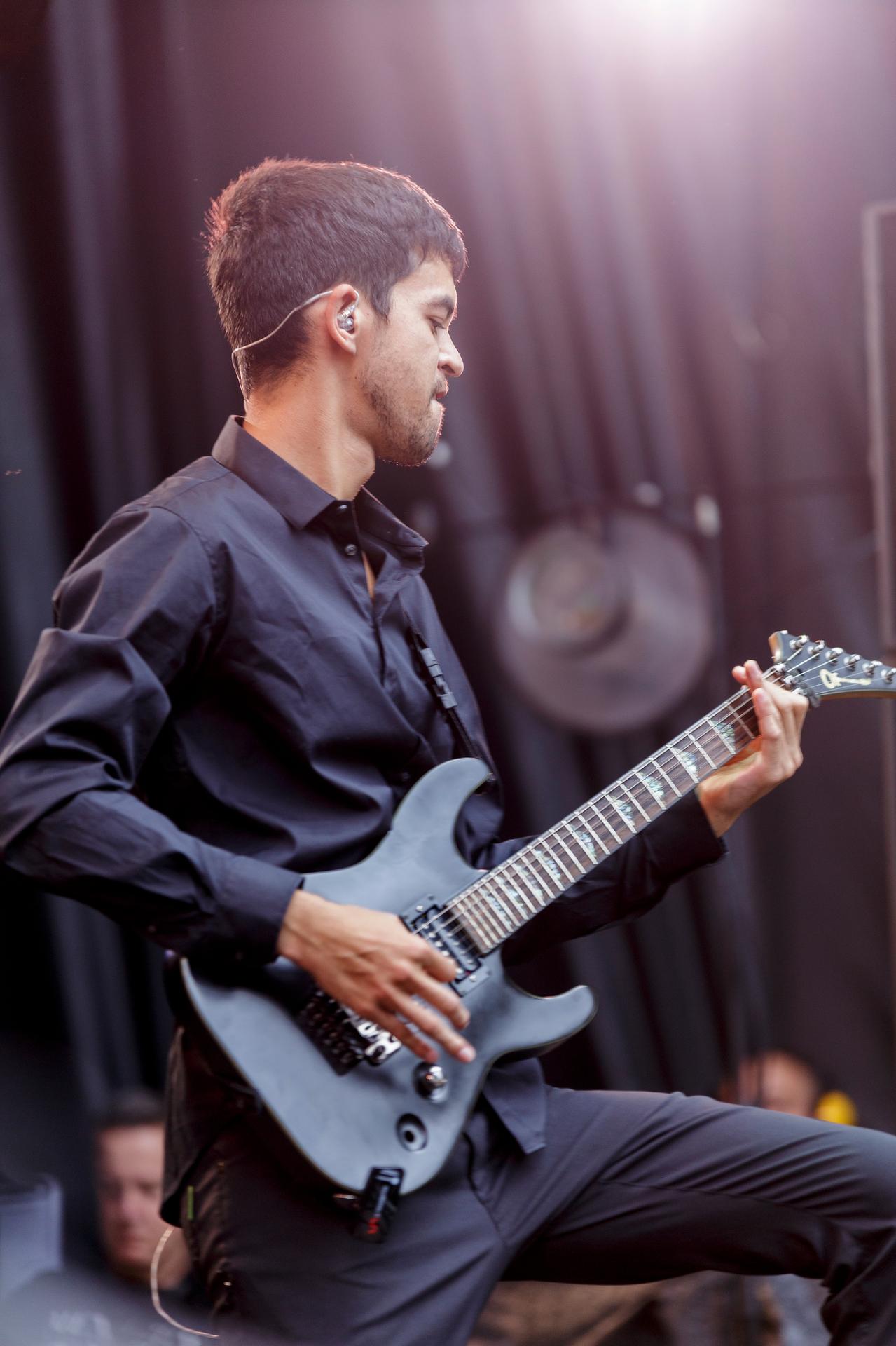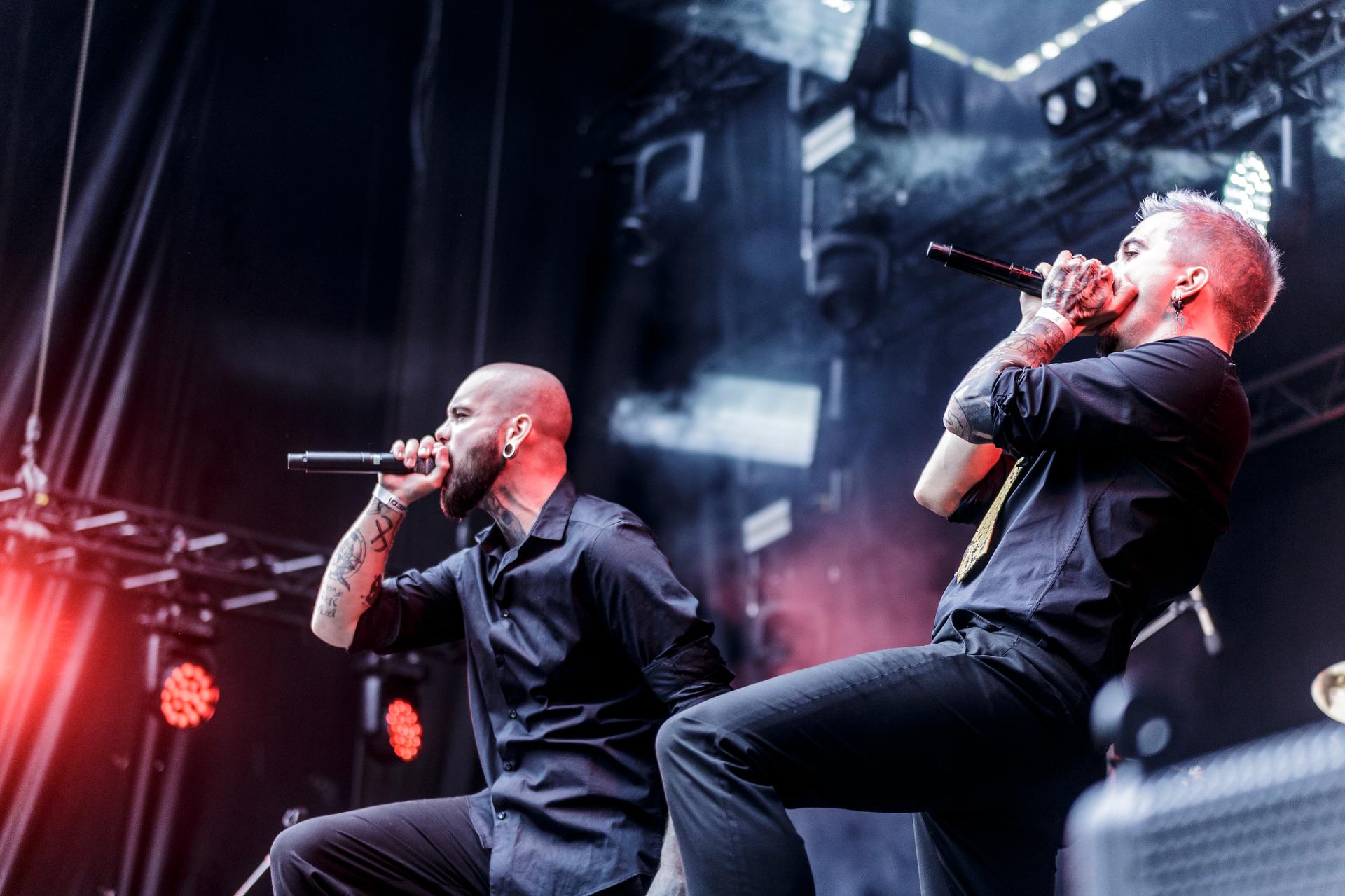 Il en est de même pour ONIGAMI qui a sorti un joli décorum très japonisant et des musiciens dans des tenues assez chics : chemises, cravates et vestes de smoking, et un duo de chanteurs qui passe du rap au growl en passant par le chant clair avec beaucoup d’aisance.