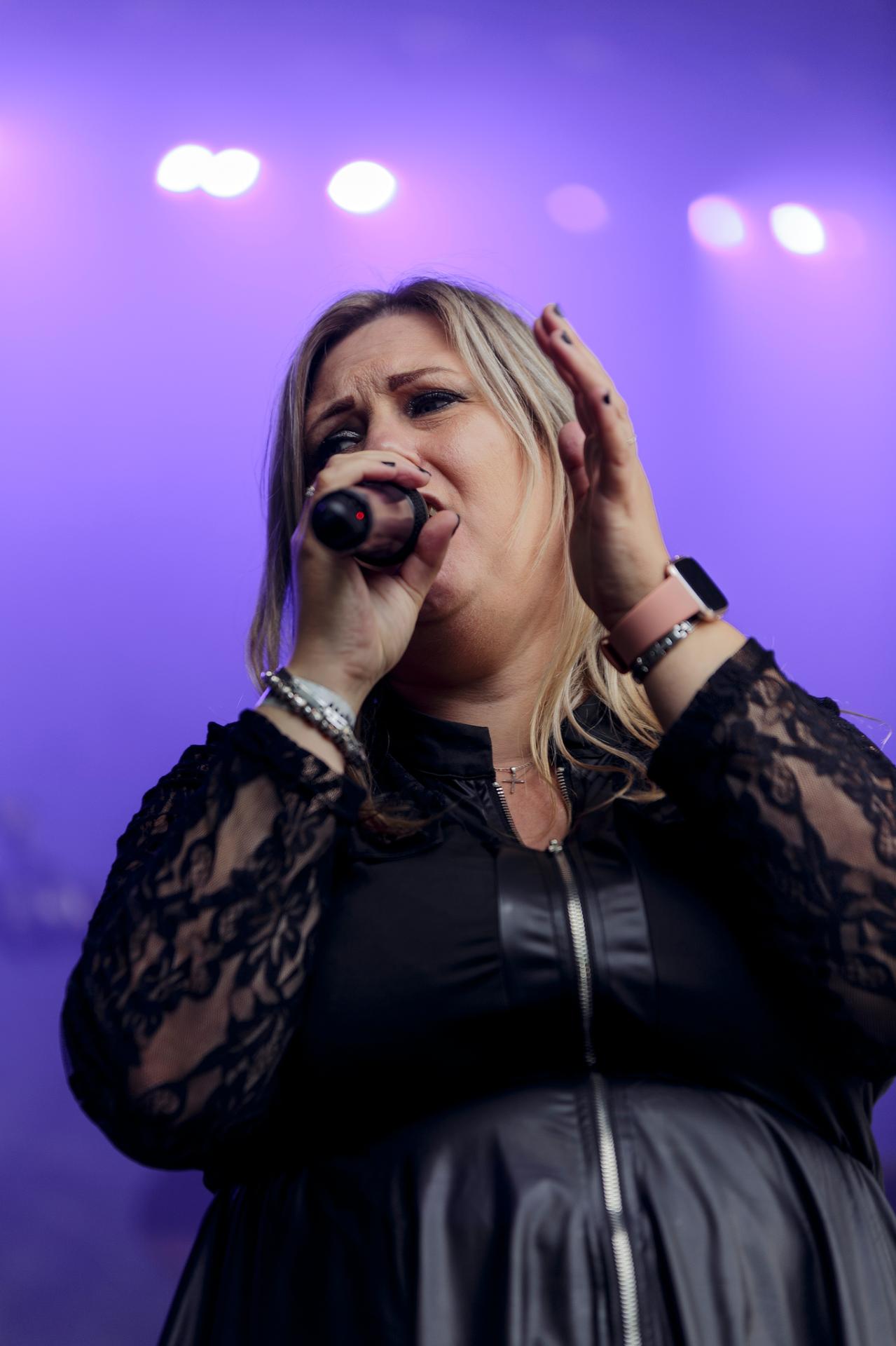 C’est au tour de DEATHLESS LEGACY d’investir la Eye Stage pour le dernier concert de cette édition pour cette scène. Le groupe vient nous présenter sa musique, ce qu’ils appellent du Horror Metal. Mais le groupe sera beaucoup trop dans la pénombre, étant éclairé à contre-jour. Mais malgré tout, le groupe italien, connu pour son esthétique gothique et ses performances captivantes, a offert une véritable immersion dans un univers sombre, mystérieux et envoûtant. En dépit de ce contre-jour et de la fumée, la chanteuse Steva offre une présence scénique et une voix puissante, capable de passer de notes lyriques à des growls gutturaux, ont immédiatement captivé l’audience. Steva n’a pas manqué d’interagir avec le public entre les morceaux, incitant les spectateurs à chanter et à participer à l’ambiance occulte. Elle a également pris le temps de remercier chaleureusement les fans français, soulignant l’importance de ce moment pour DEATHLESS LEGACY. Le groupe a livré une performance marquante à mi-chemin entre un concert de heavy metal et un spectacle gothique. Avec leur maîtrise musicale et leur esthétique unique, ils ont su séduire un public avide d’expériences hors du commun.