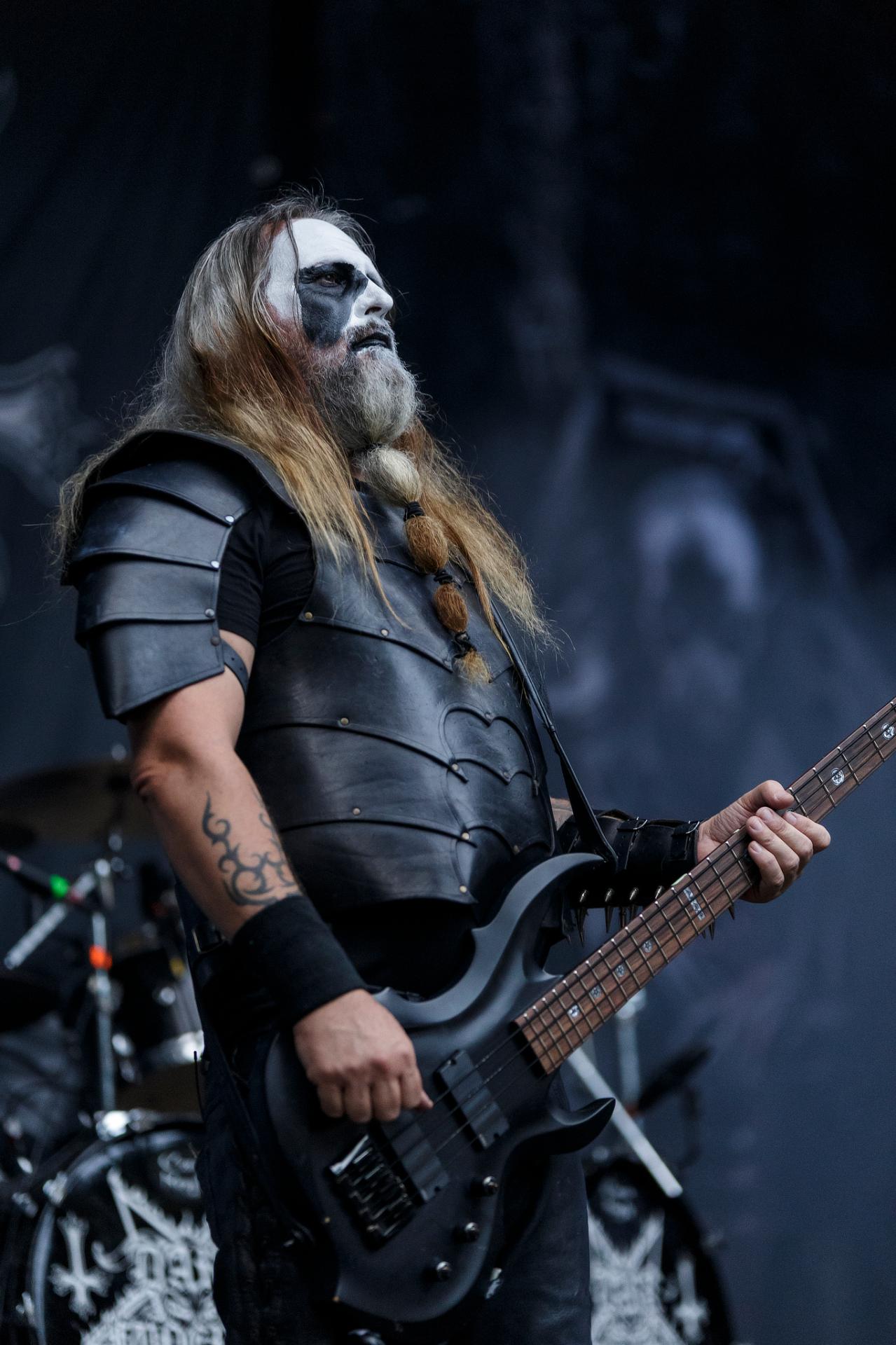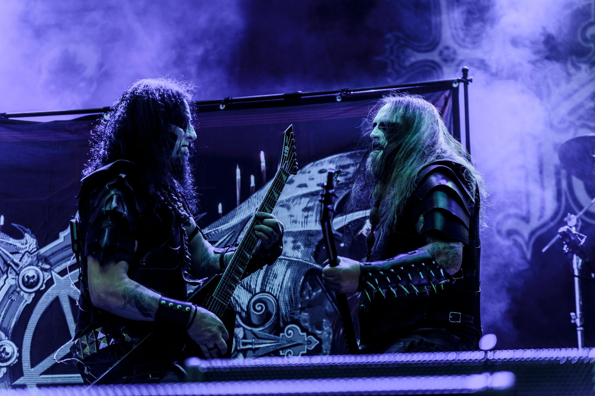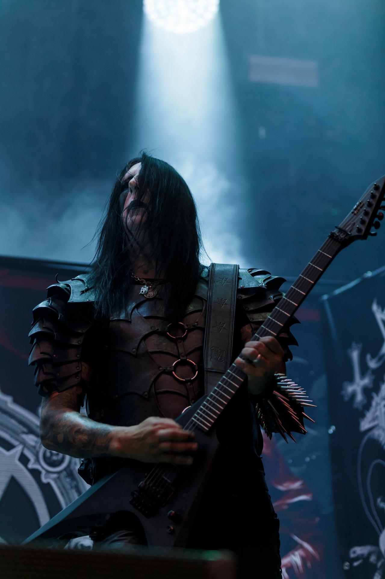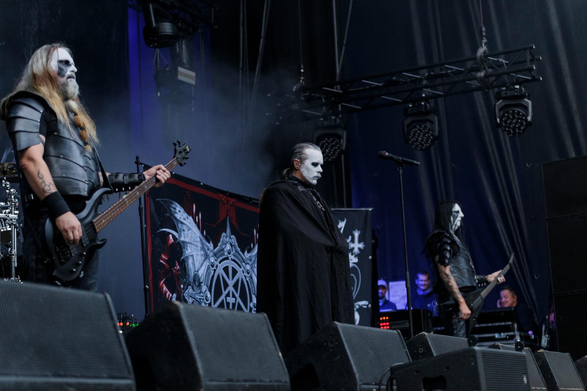 L’arrivée de DARK FUNERAL change radicalement l’ambiance du festival, un changement qui était déjà amorcé par le passage de HIMINBJORN sur la Eye Stage. Le combo Suédois fait une entrée théâtrale sur scène avec son magnifique décorum, des tenues de scènes toutes aussi classe. Le show millimétré démarre sur Nosferatu avec une première salve de blast et les riffs glacials de Lord Ahriman. Le chanteur Heljarmadr, tout aussi charismatique, fait preuve d’une puissance vocale impressionnante et une sorte de majesté sur scène, mais aussi, à la fois, une aura maléfique. La setlist bien taillée sera principalement axée sur les deux derniers albums avec des titres comme When I’m Gone, As One We Shall Conquer ou encore Let The Devil In, tout en revenant sur des morceaux plus anciens comme My Funeral, The Arrival of Satan’s Empire ou encore la classique Shadows Over Transylvania. Mais le point culminant du set viendra lors du titre désormais culte Unchain My Soul qui viendra fédérer l’assistance. Et le final en apothéose viendra avec Where The Shadows Forever Reign pour finir ce set diabolique.