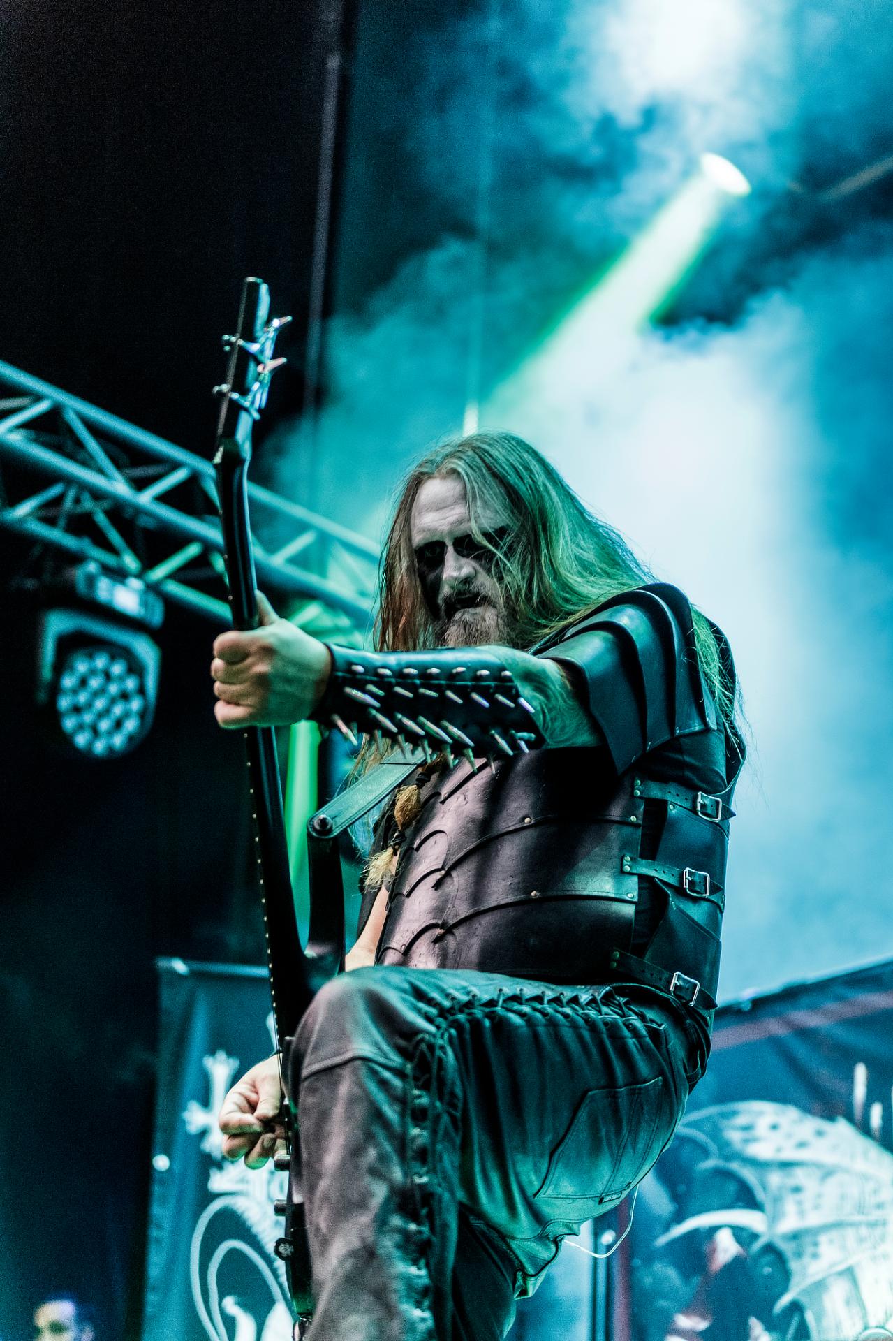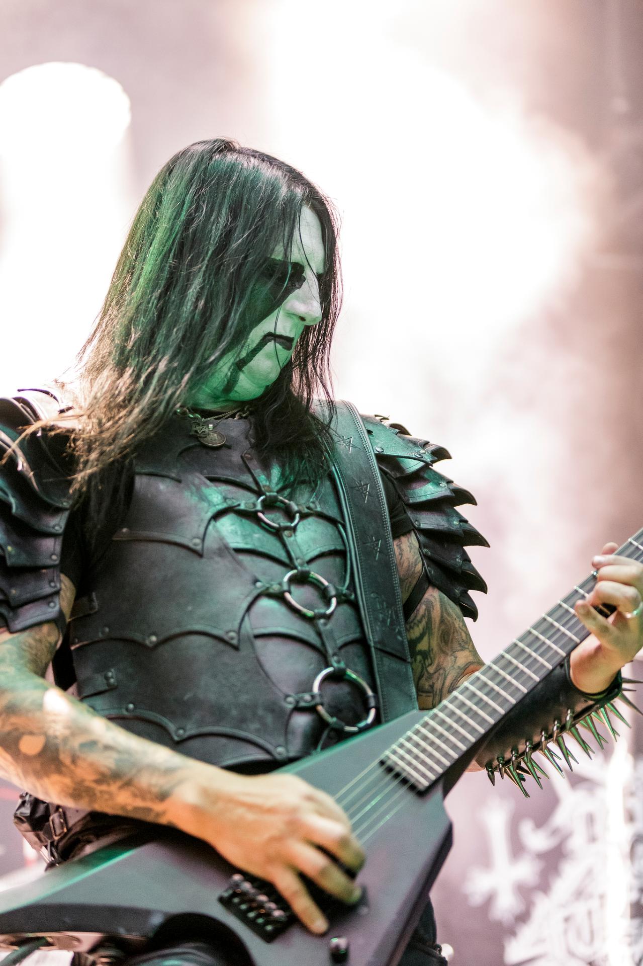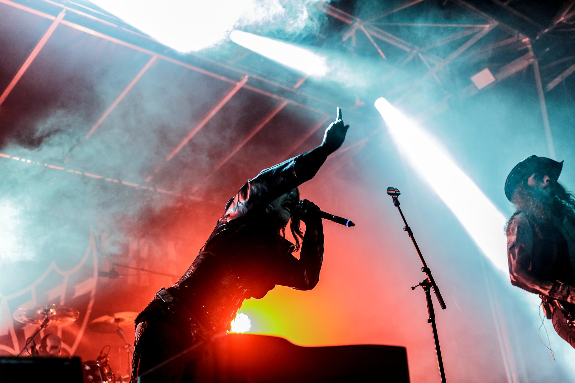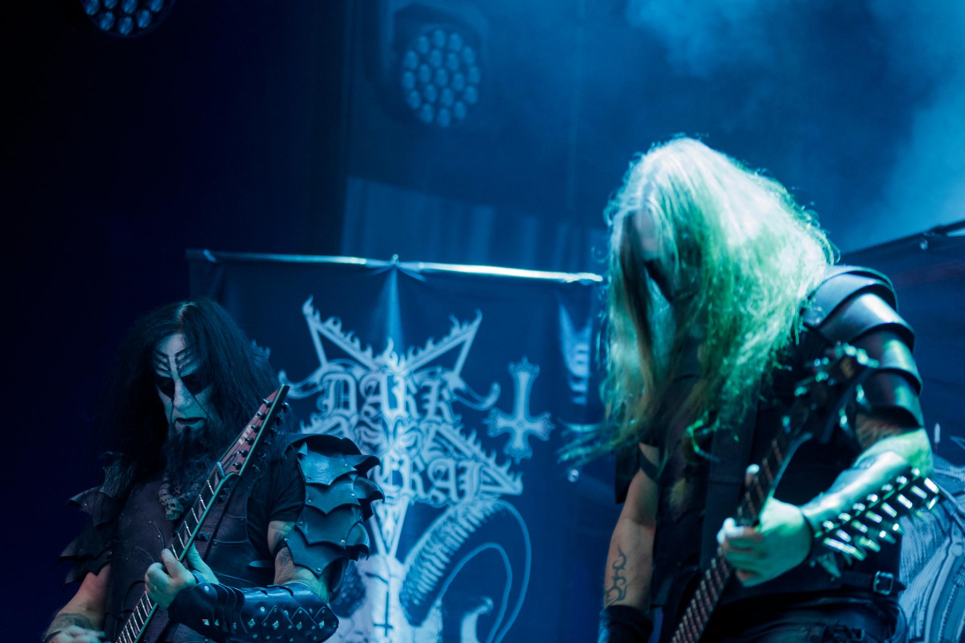 L’arrivée de DARK FUNERAL change radicalement l’ambiance du festival, un changement qui était déjà amorcé par le passage de HIMINBJORN sur la Eye Stage. Le combo Suédois fait une entrée théâtrale sur scène avec son magnifique décorum, des tenues de scènes toutes aussi classe. Le show millimétré démarre sur Nosferatu avec une première salve de blast et les riffs glacials de Lord Ahriman. Le chanteur Heljarmadr, tout aussi charismatique, fait preuve d’une puissance vocale impressionnante et une sorte de majesté sur scène, mais aussi, à la fois, une aura maléfique. La setlist bien taillée sera principalement axée sur les deux derniers albums avec des titres comme When I’m Gone, As One We Shall Conquer ou encore Let The Devil In, tout en revenant sur des morceaux plus anciens comme My Funeral, The Arrival of Satan’s Empire ou encore la classique Shadows Over Transylvania. Mais le point culminant du set viendra lors du titre désormais culte Unchain My Soul qui viendra fédérer l’assistance. Et le final en apothéose viendra avec Where The Shadows Forever Reign pour finir ce set diabolique.
