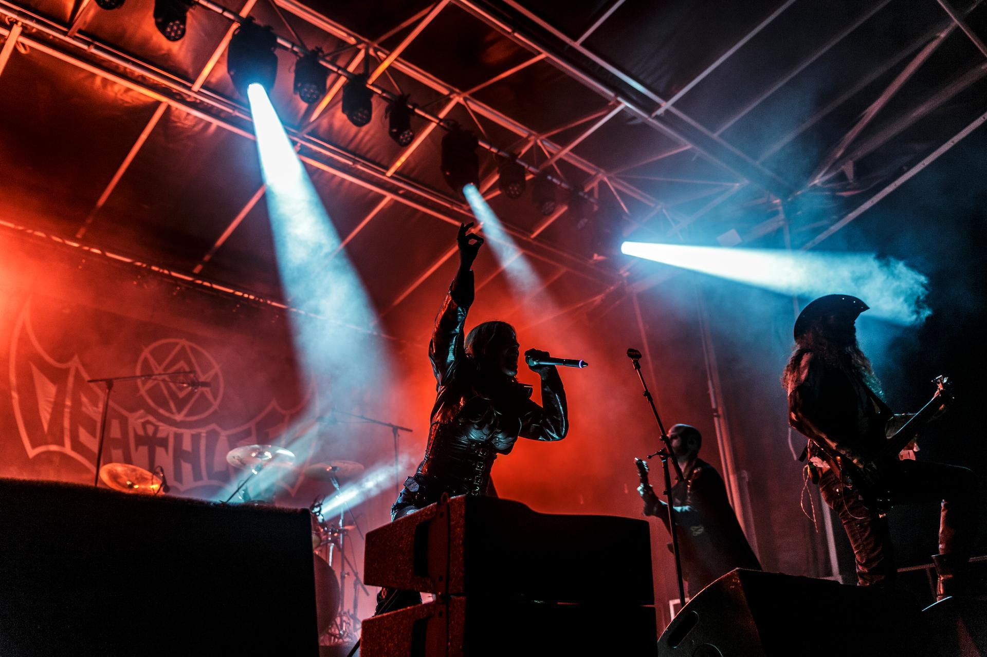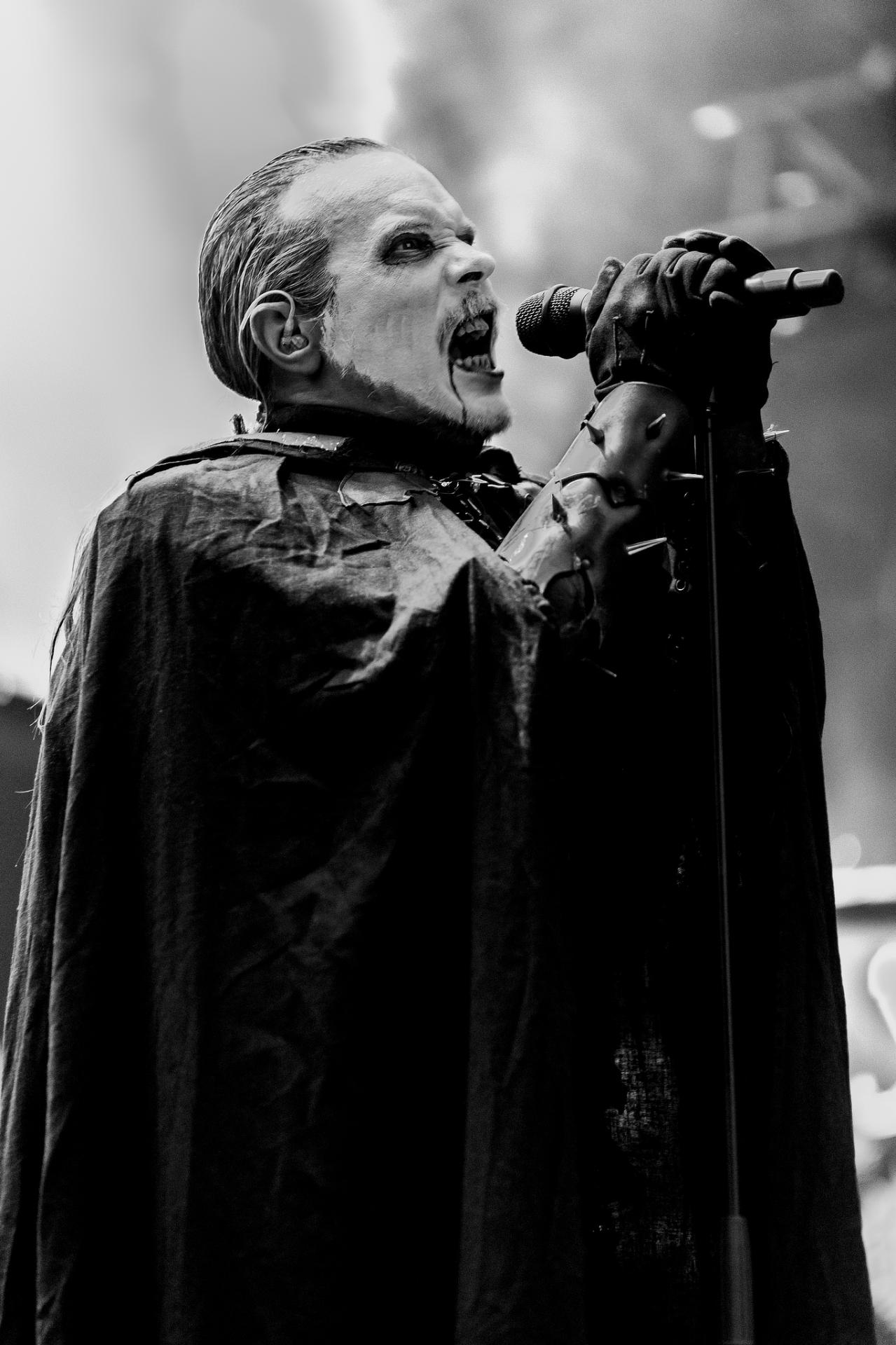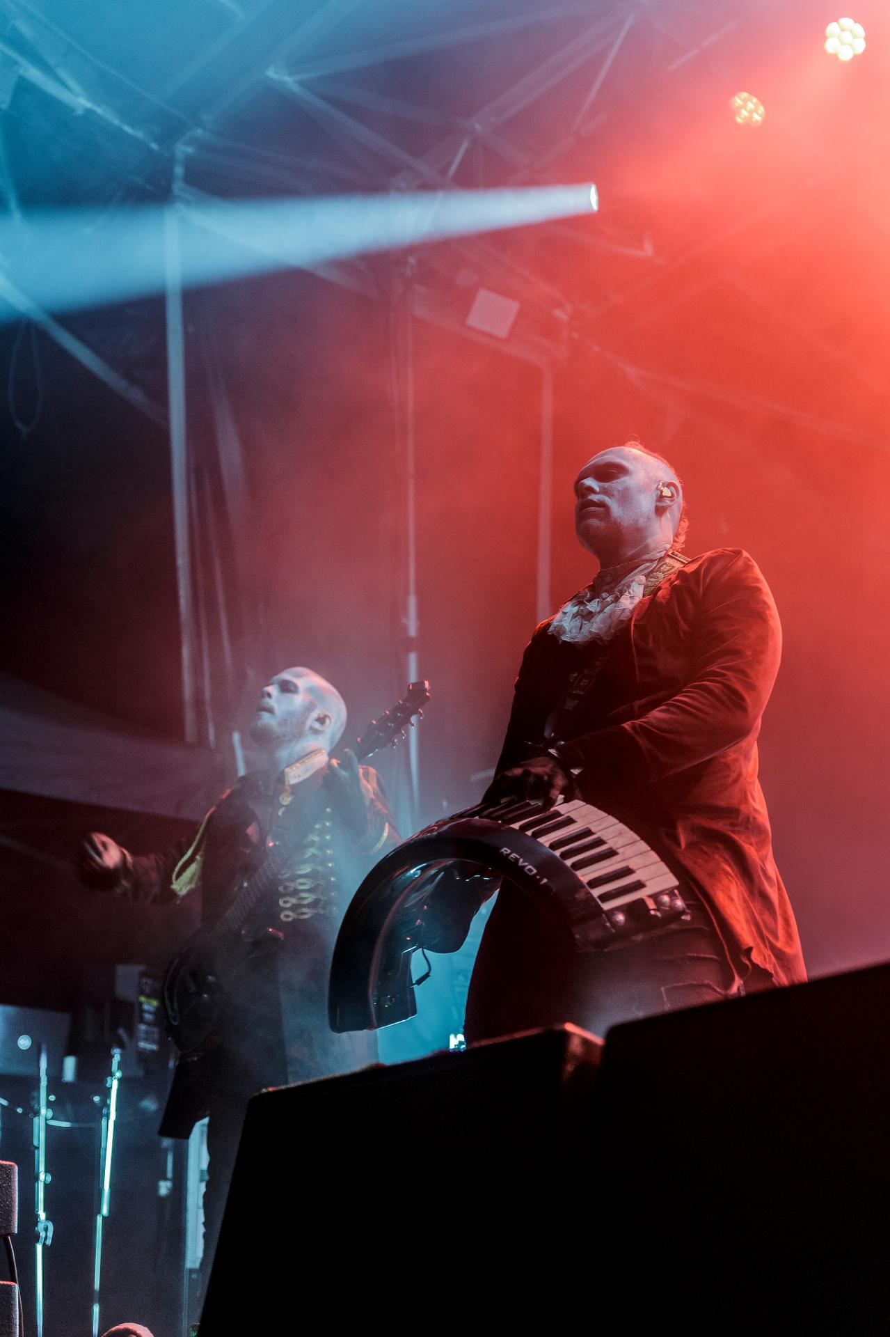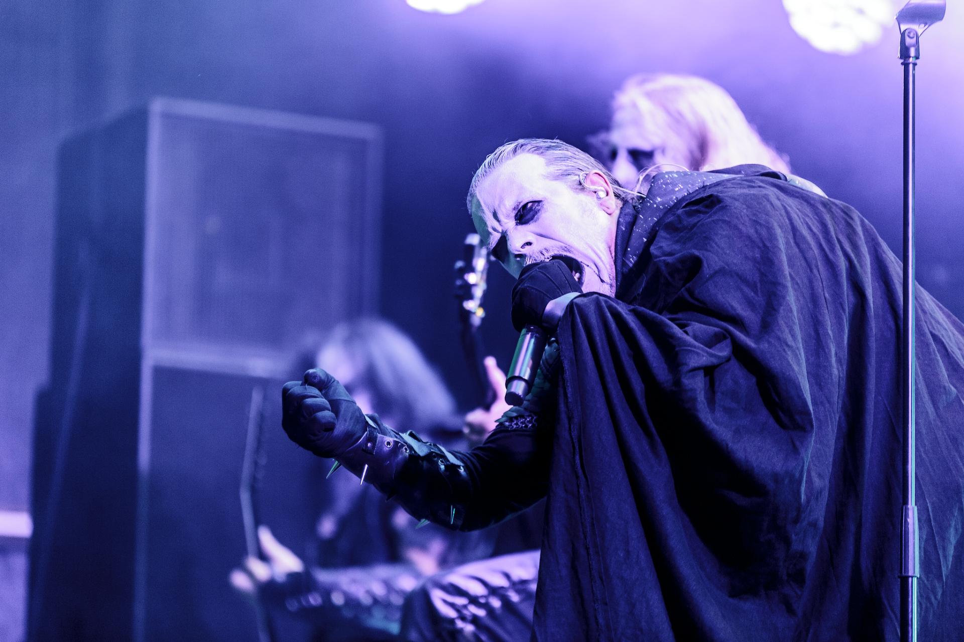 L’arrivée de DARK FUNERAL change radicalement l’ambiance du festival, un changement qui était déjà amorcé par le passage de HIMINBJORN sur la Eye Stage. Le combo Suédois fait une entrée théâtrale sur scène avec son magnifique décorum, des tenues de scènes toutes aussi classe. Le show millimétré démarre sur Nosferatu avec une première salve de blast et les riffs glacials de Lord Ahriman. Le chanteur Heljarmadr, tout aussi charismatique, fait preuve d’une puissance vocale impressionnante et une sorte de majesté sur scène, mais aussi, à la fois, une aura maléfique. La setlist bien taillée sera principalement axée sur les deux derniers albums avec des titres comme When I’m Gone, As One We Shall Conquer ou encore Let The Devil In, tout en revenant sur des morceaux plus anciens comme My Funeral, The Arrival of Satan’s Empire ou encore la classique Shadows Over Transylvania. Mais le point culminant du set viendra lors du titre désormais culte Unchain My Soul qui viendra fédérer l’assistance. Et le final en apothéose viendra avec Where The Shadows Forever Reign pour finir ce set diabolique.