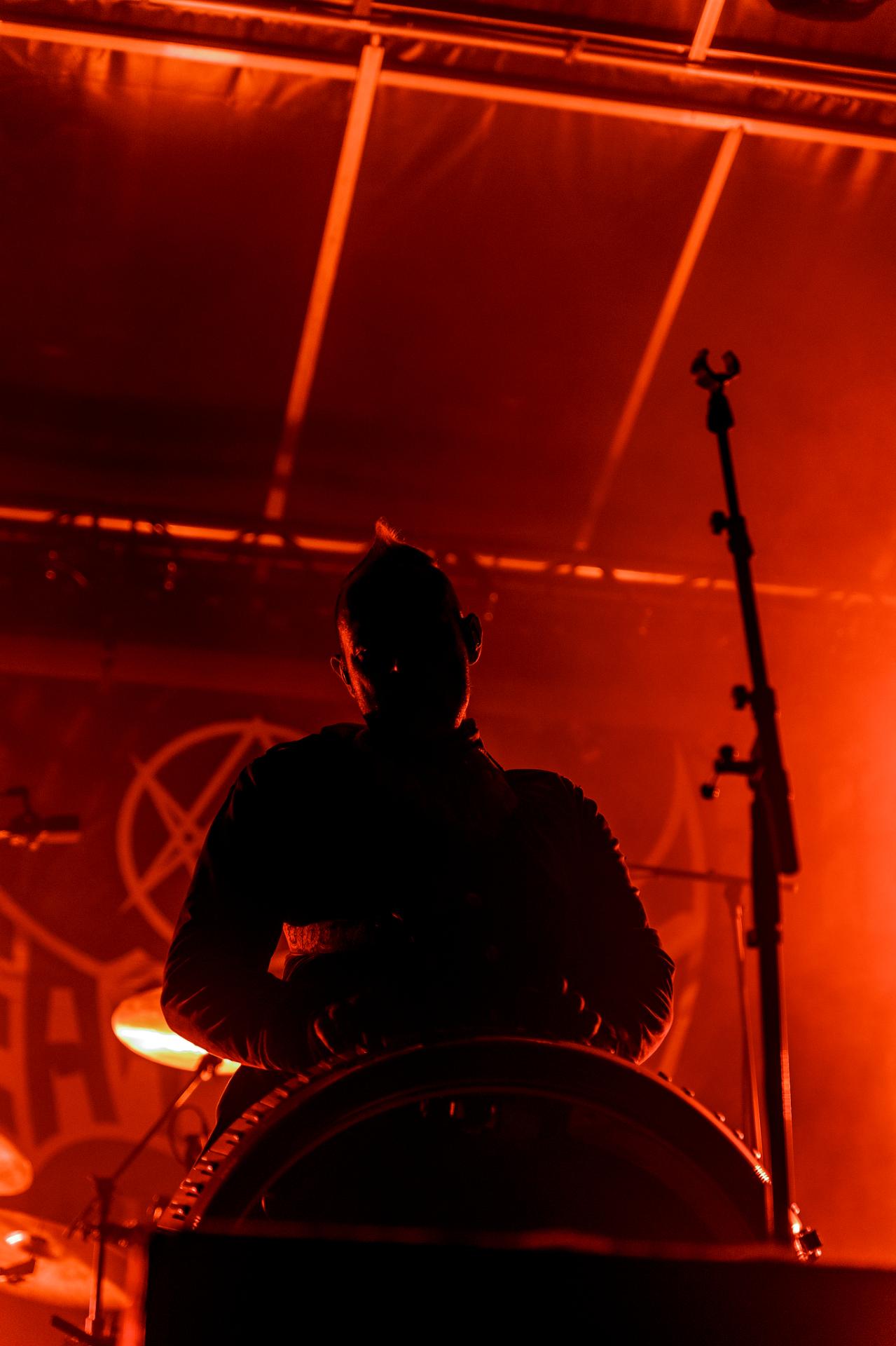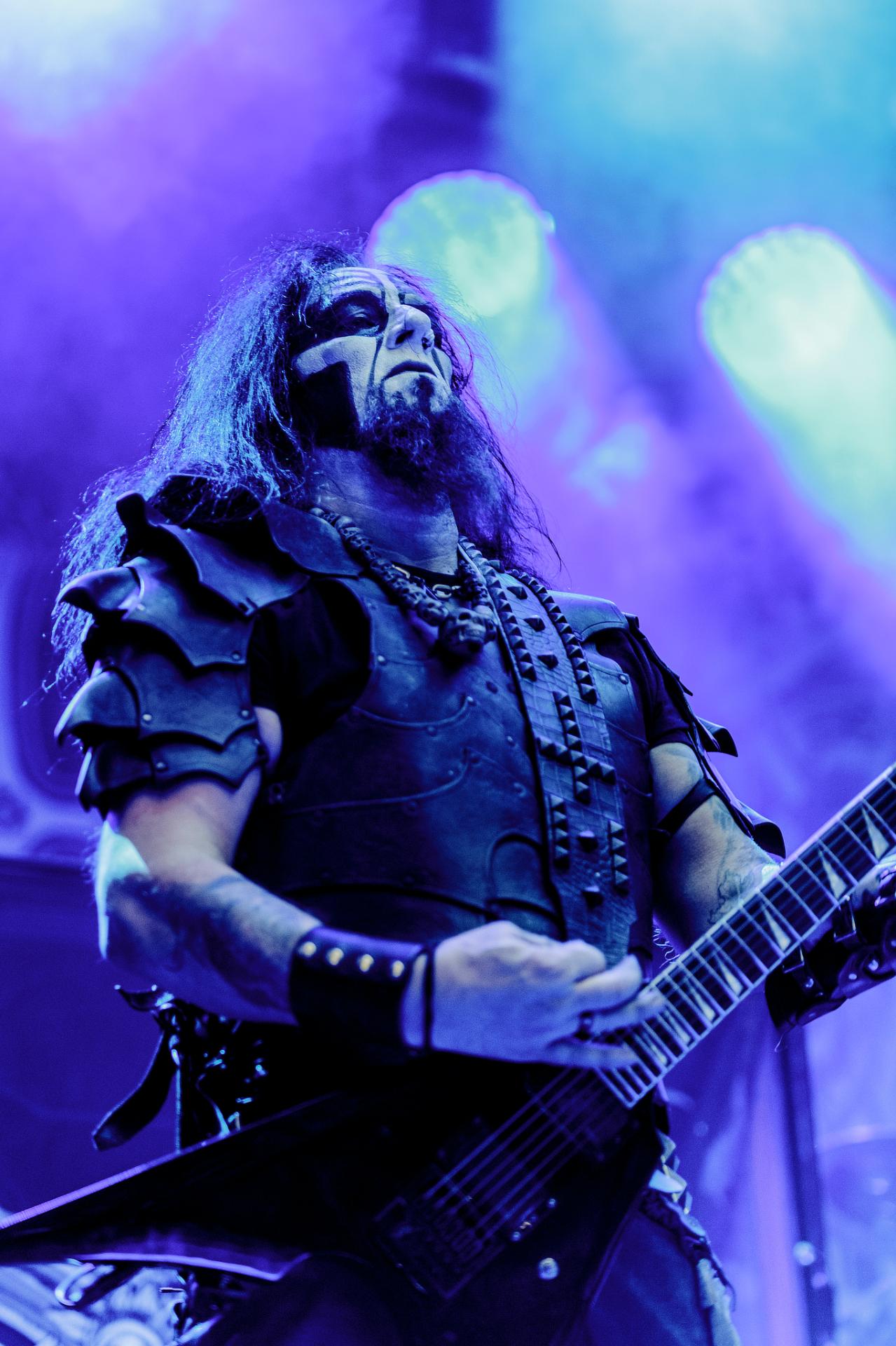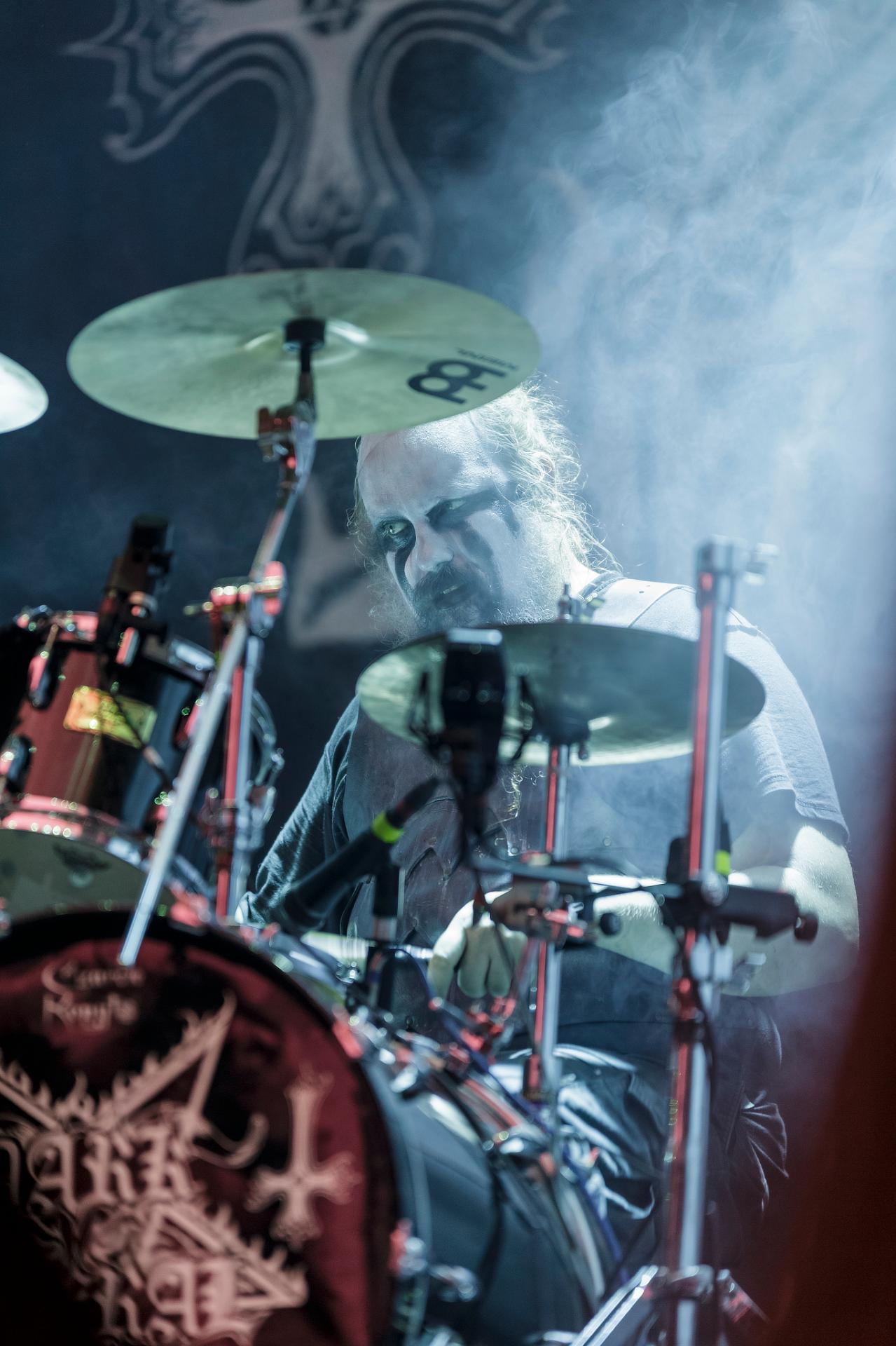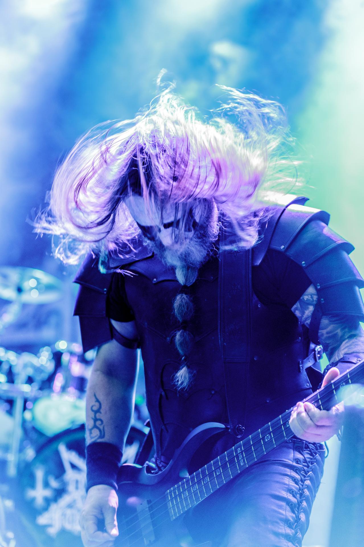 L’arrivée de DARK FUNERAL change radicalement l’ambiance du festival, un changement qui était déjà amorcé par le passage de HIMINBJORN sur la Eye Stage. Le combo Suédois fait une entrée théâtrale sur scène avec son magnifique décorum, des tenues de scènes toutes aussi classe. Le show millimétré démarre sur Nosferatu avec une première salve de blast et les riffs glacials de Lord Ahriman. Le chanteur Heljarmadr, tout aussi charismatique, fait preuve d’une puissance vocale impressionnante et une sorte de majesté sur scène, mais aussi, à la fois, une aura maléfique. La setlist bien taillée sera principalement axée sur les deux derniers albums avec des titres comme When I’m Gone, As One We Shall Conquer ou encore Let The Devil In, tout en revenant sur des morceaux plus anciens comme My Funeral, The Arrival of Satan’s Empire ou encore la classique Shadows Over Transylvania. Mais le point culminant du set viendra lors du titre désormais culte Unchain My Soul qui viendra fédérer l’assistance. Et le final en apothéose viendra avec Where The Shadows Forever Reign pour finir ce set diabolique.