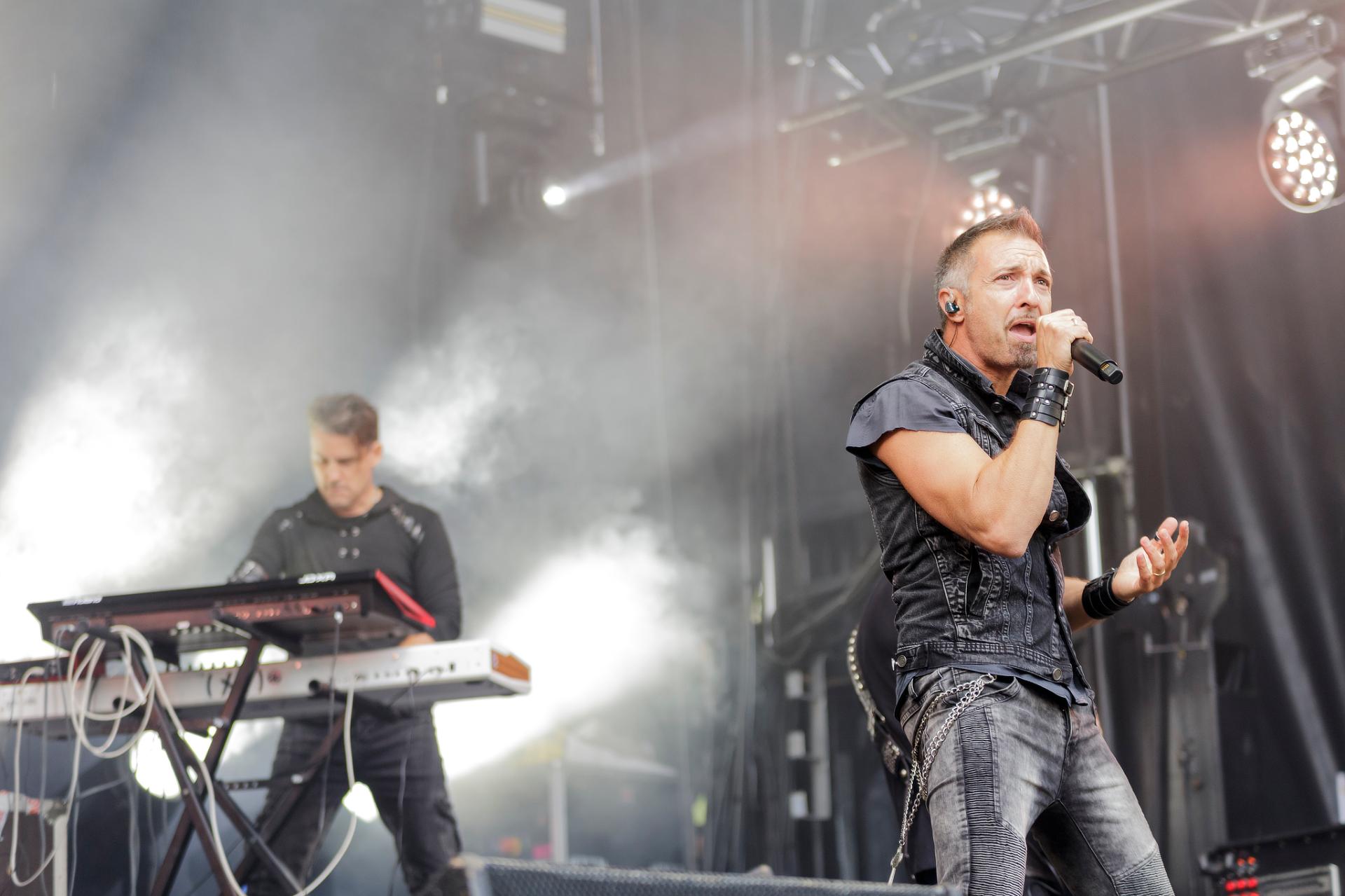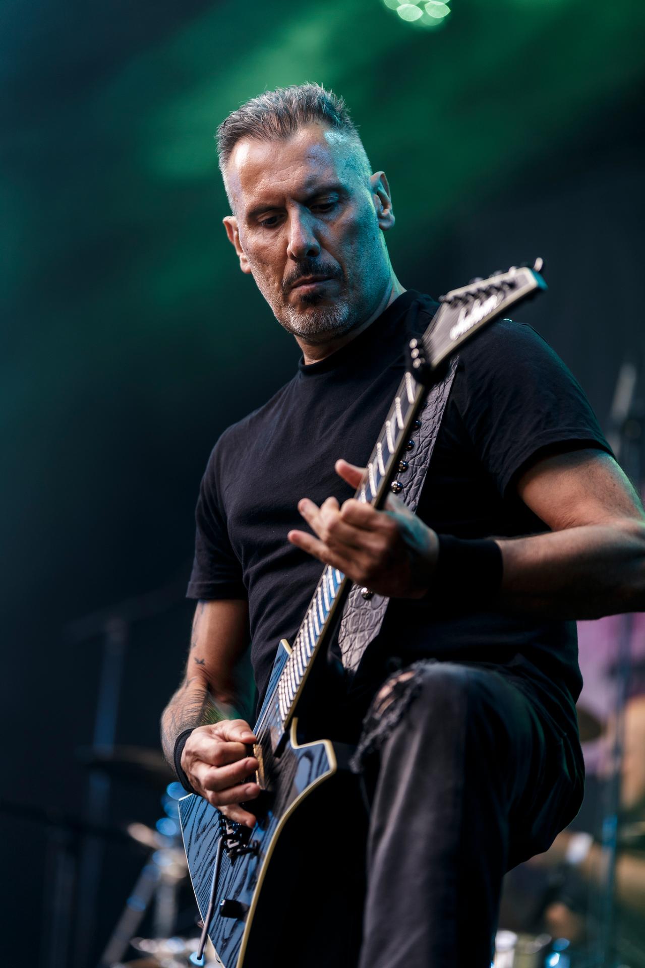 Parmi les moments forts de la journée, la performance des maîtres italiens du Power Metal Progressif ELDRITCH a offert une expérience intense et captivante, entre technicité instrumentale et mélodies poignantes. Avec une carrière s’étalant sur plus de trois décennies, le groupe a su conjuguer virtuosité et émotion, transportant le public dans un univers sonore riche et immersif. ELDRITCH a pris possession de la scène et dès le premier titre, on ressent tout ce qu’incarne parfaitement leur identité : des riffs puissants, des claviers atmosphériques, et une rythmique complexe. Dès les premières minutes, le groupe a démontré une maîtrise technique hors pair, plongeant le public dans un voyage sonore où chaque note semblait millimétrée. Terence Holler, le charismatique chanteur, a rapidement établi une connexion avec l’audience grâce à sa voix versatile, capable de naviguer entre des passages mélodiques et des lignes vocales plus agressives. L’apport des claviers, omniprésent mais jamais envahissant, a ajouté une dimension presque cinématographique à leur musique, renforçant l’intensité émotionnelle de chaque morceau. La prestation d’ELDRITCH a été un moment d’exception où technicité et émotion se sont conjuguées à la perfection. Le groupe a prouvé qu’il reste une référence incontournable dans le power metal progressif, capable de séduire aussi bien les initiés que les néophytes.