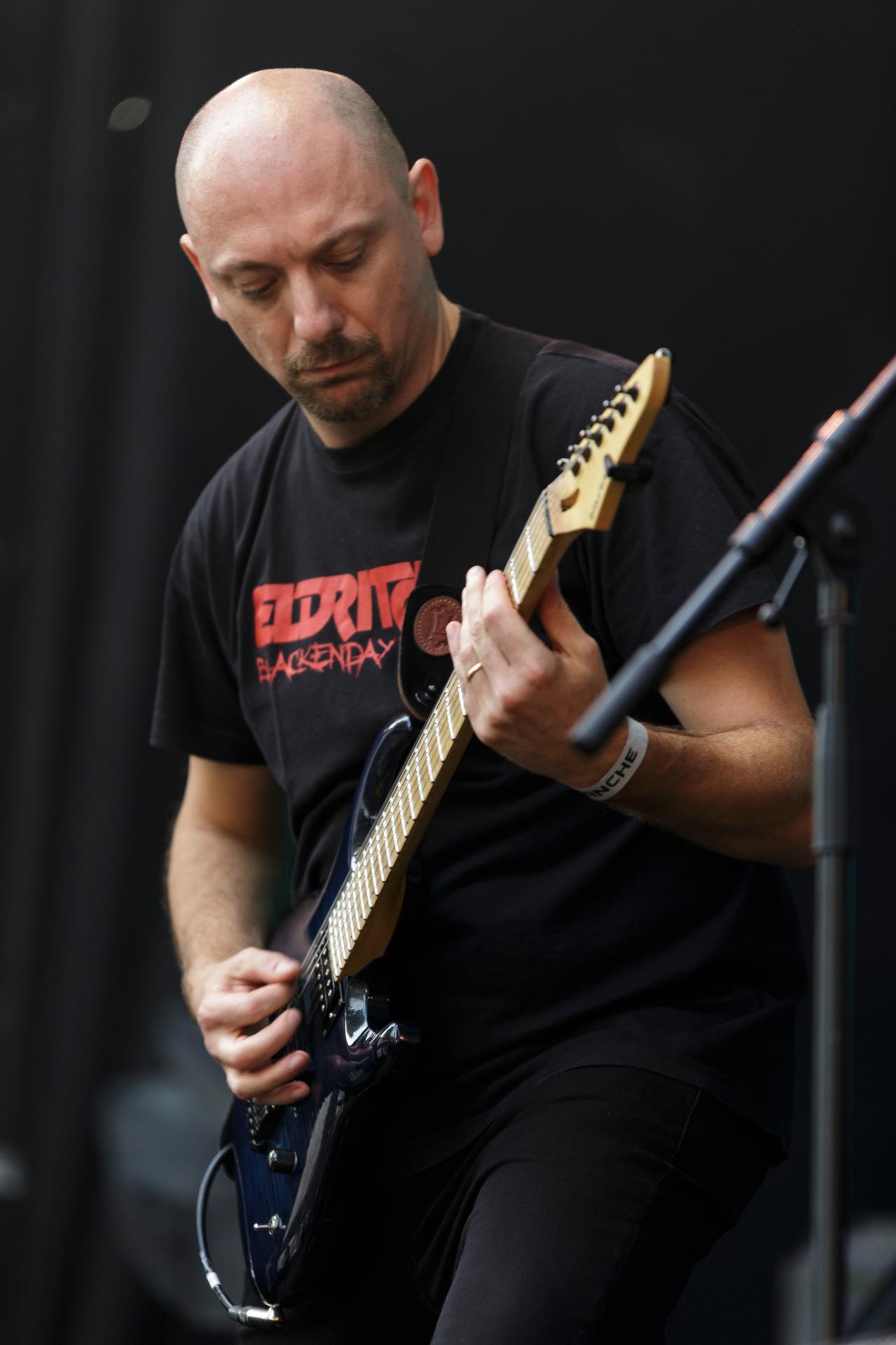 Nos amis de DEFICIENCY ont littéralement mis le feu à la Eye Stage malgré la vilaine averse au début de leur set. Mais le frontman Laurent Gisonna n’allait pas laisser quelques gouttes venir nous ennuyer et invita le public à se rapprocher. Et grâce à leur énergie, leur Thrash Metal bien rodé avec leur riffs électrisants, la pluie sera vite écartée. Très vite, les headbangers (dont moi-même) arriveront pour un décrochage de nuque en règle. Leur musique énergique sera bien nuancée par des passages mélodiques, voire progressifs. Le groupe ira chercher des morceaux de plusieurs album dont le dernier en date Warenta, mais on pourra également découvrir en live leur dernier titre intitulé The Nest, une véritable pépite. DEFICIENCY a véritablement tout donné dans ce show et on peut dire qu’ils n’ont pas volé leur statut de fer de lance de la scène metal française actuelle et on ne peut qu’attendre le prochain opus avec impatience.