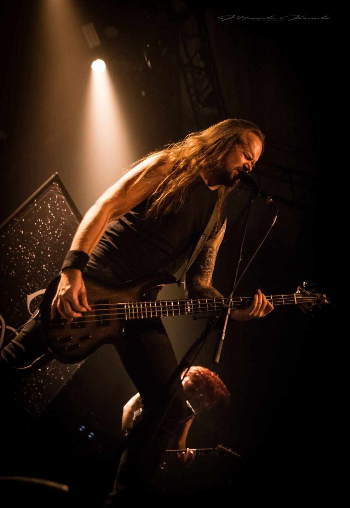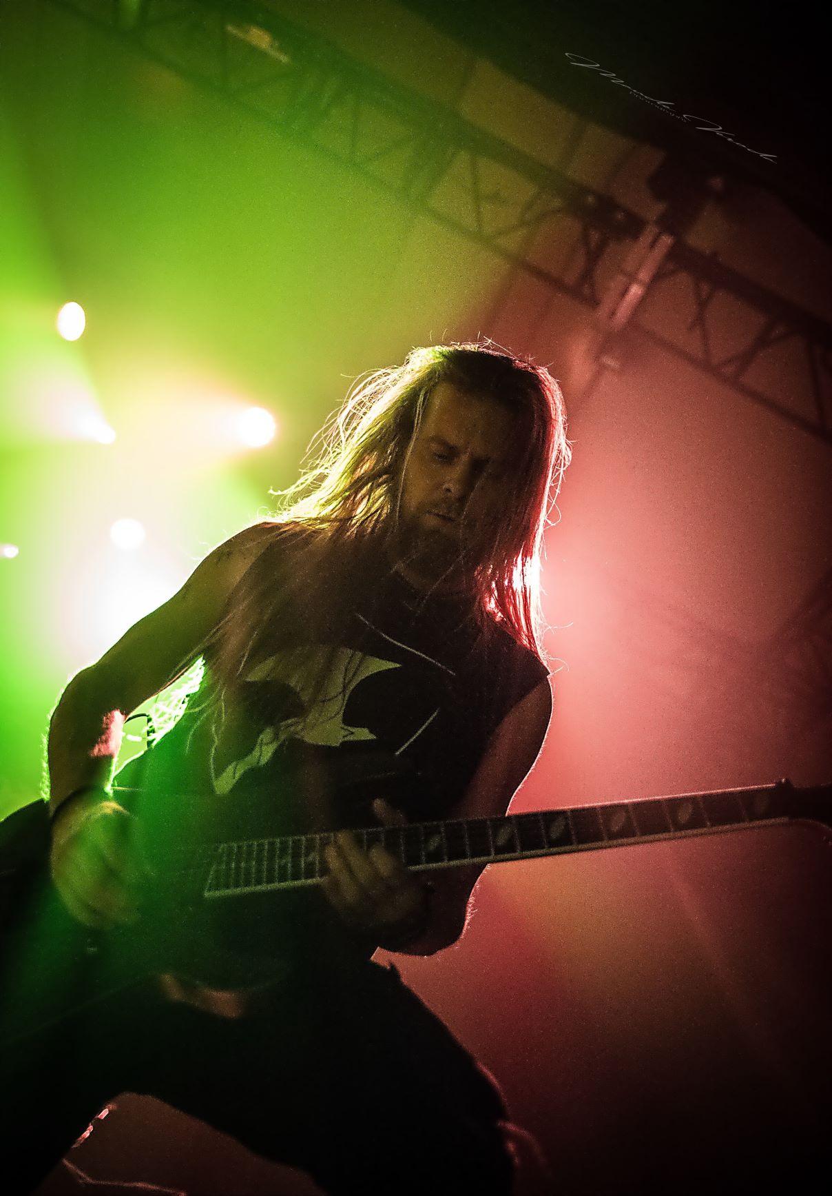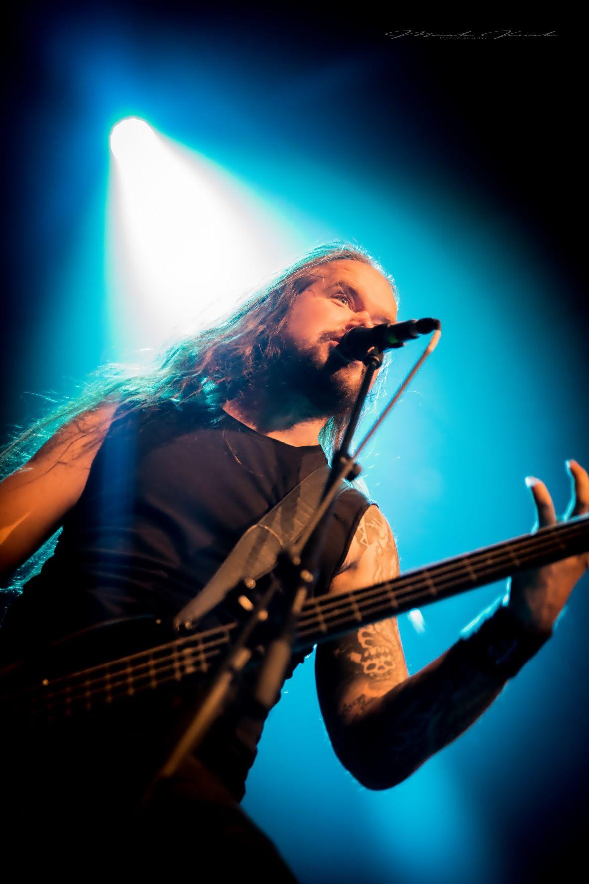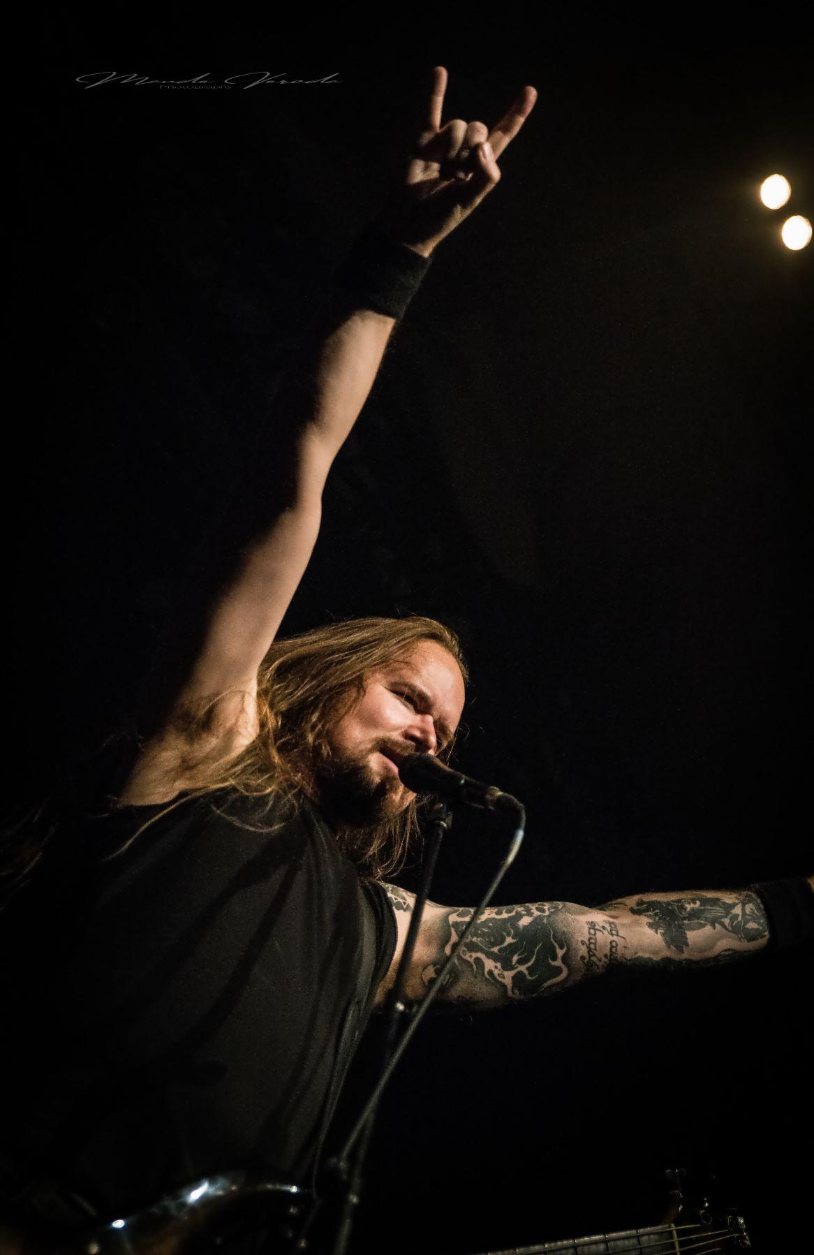 WOLFHEART de son côté n’a déjà plus rien à prouver. Ayant suivi le même chemin qu’HINAYANA, ce qui n'était qu'un side-project est devenu un groupe à part entière donc le chef d’orchestre est Tuomas Saukkonen. Le style du combo se rapproche beaucoup de leurs compatriotes d’INSOMNIUM mais reste un tantinet plus sombre. Comme toujours, Tuomas ne s’adressera pas au public, laissant au bassiste Lauri Silvonen et au guitariste lead Vangelis Karzis un peu plus de liberté à ce niveau-là. Mais pas besoin de grand discours, les Finlandais diffusent leur death mélodique avec beaucoup d’intensité. Le groupe est en pleine promo de son dernier album King of the North, une pépite que je vous recommande, mais seulement trois titres on été calés sur la setlist avec Skyforger, The King et Knell, faute de temps, surtout qu’ils ne pouvaient pas occulter le chef-d’œuvre Winterborn sorti en 2015 avec The Hunt et Routa, Pt.2, bien que j’aurai aimé qu’ils jouent Strength And Valour et Boneyard mais bon, ne soyons pas trop gourmands. Un live de WOLFHEART c’est toujours un voyage musical et ils l’ont encore prouvé ce soir.