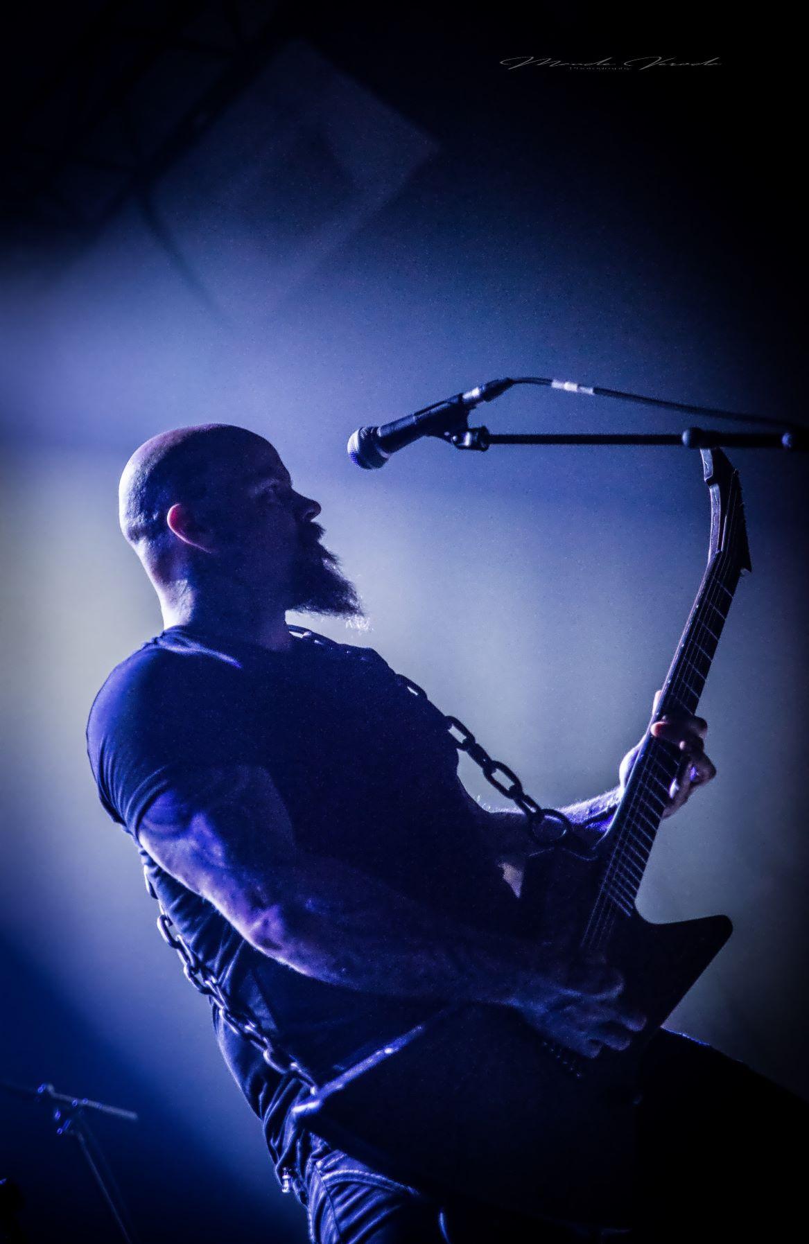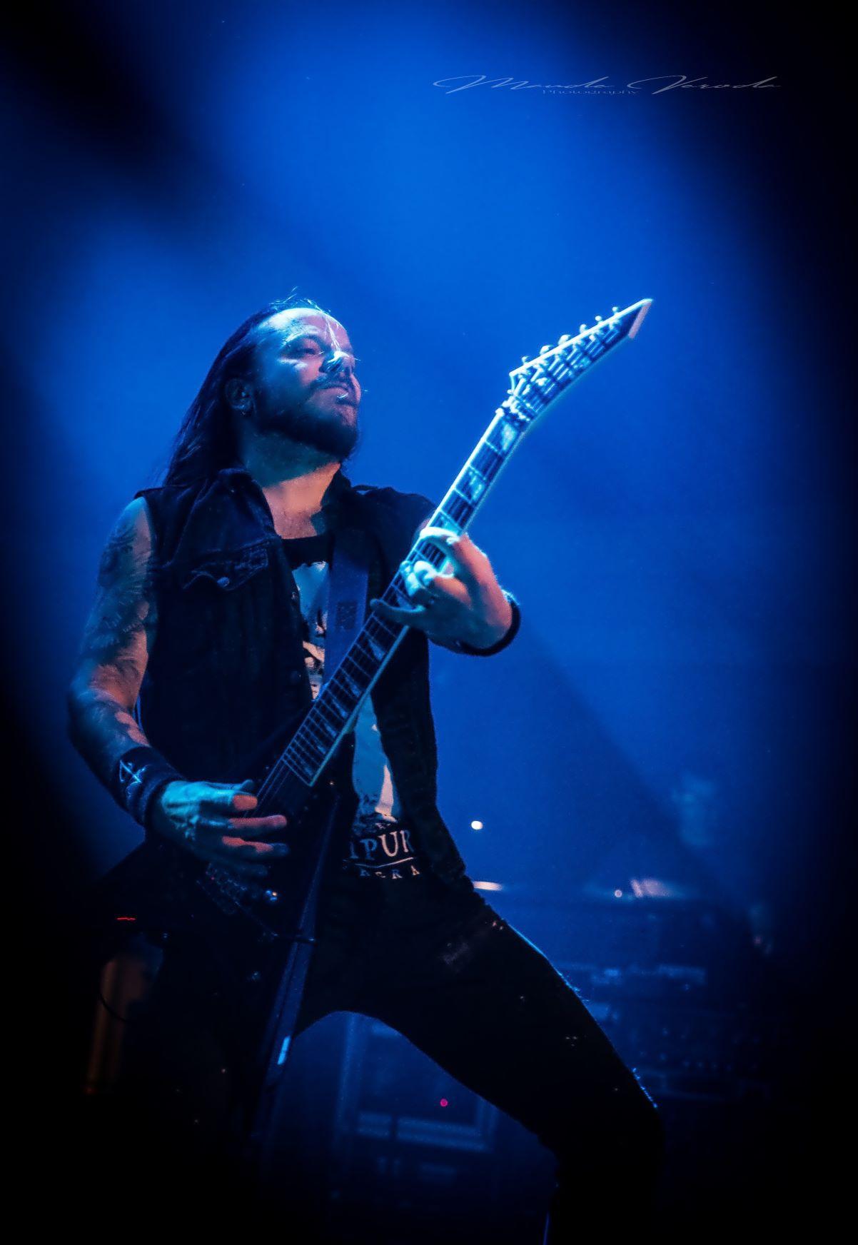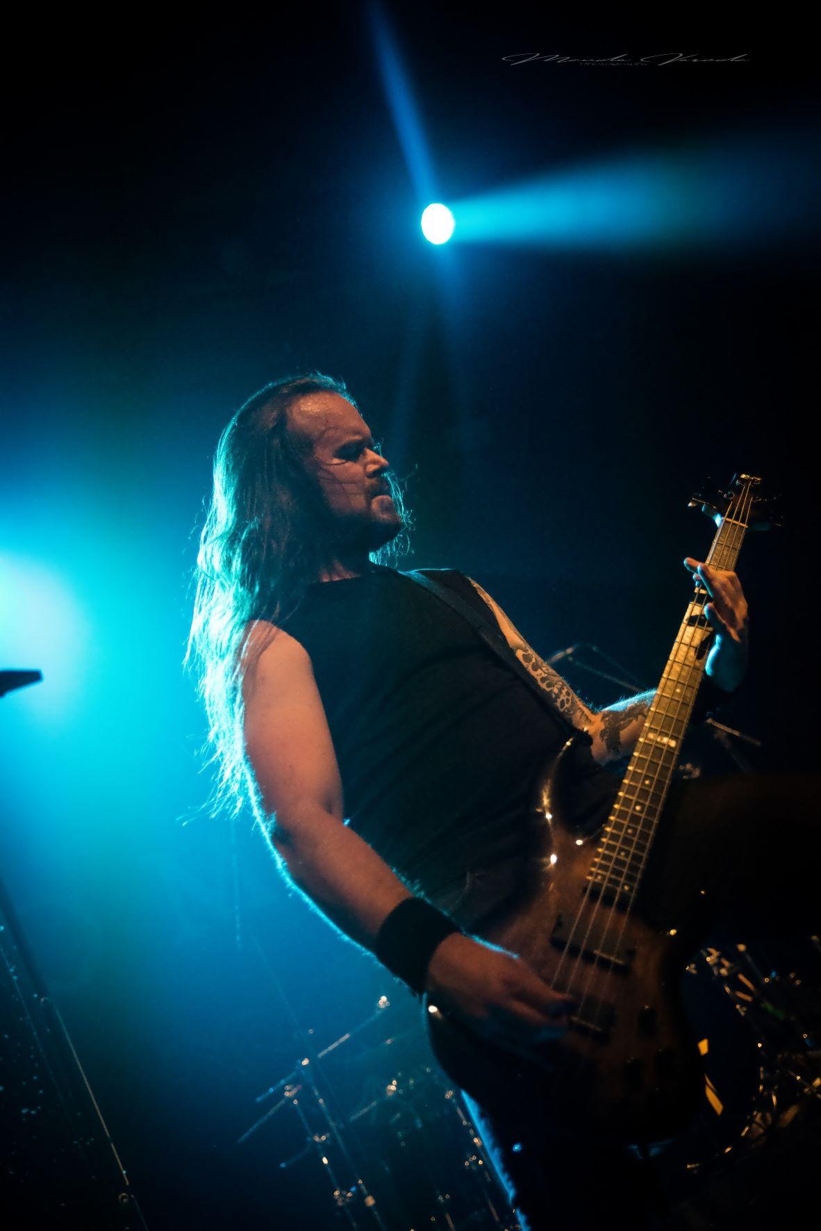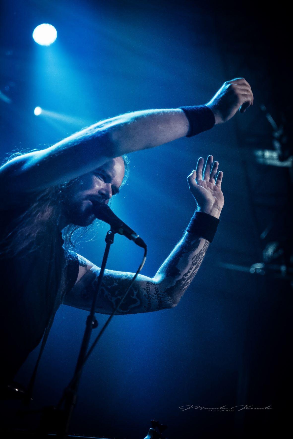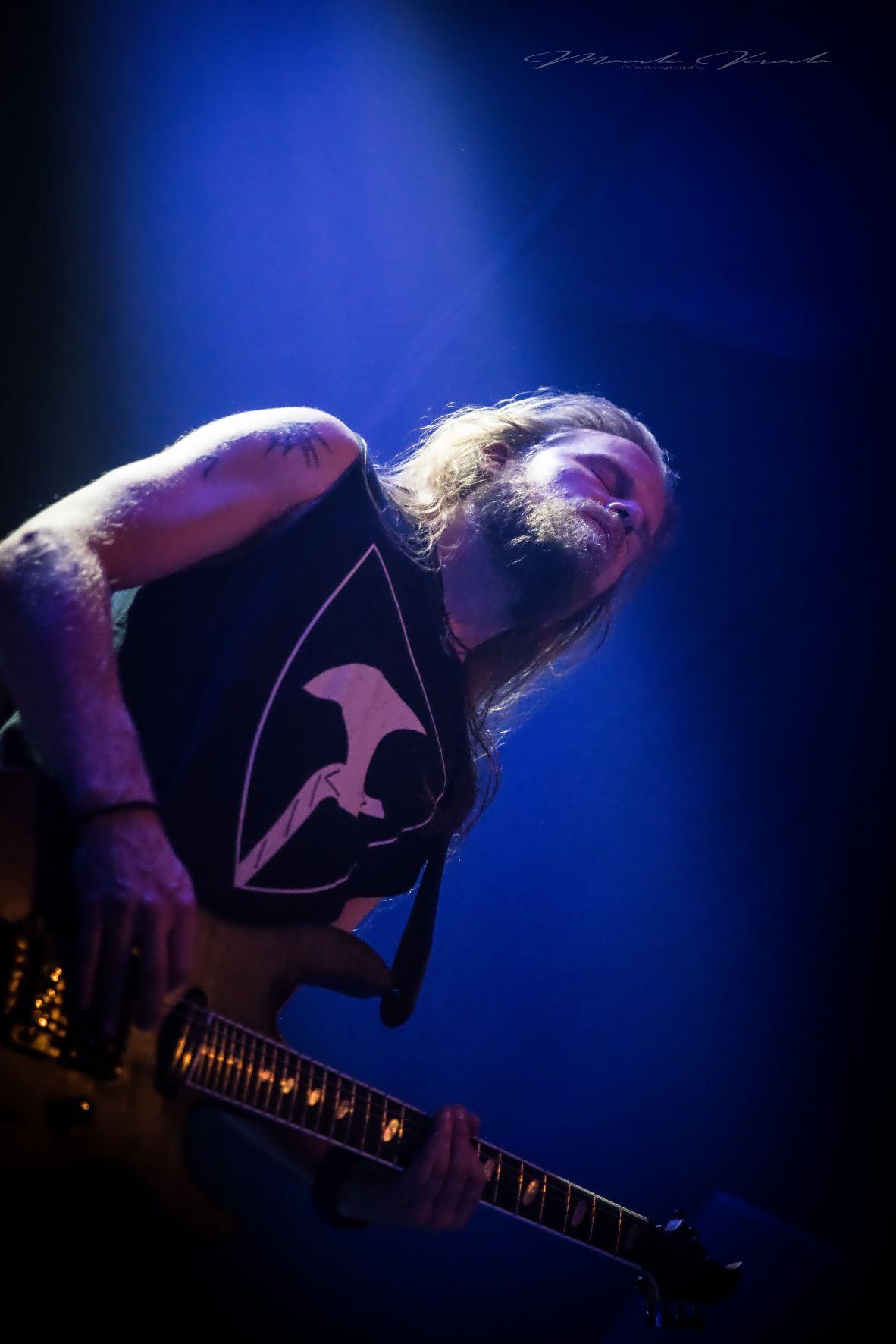 WOLFHEART de son côté n’a déjà plus rien à prouver. Ayant suivi le même chemin qu’HINAYANA, ce qui n'était qu'un side-project est devenu un groupe à part entière donc le chef d’orchestre est Tuomas Saukkonen. Le style du combo se rapproche beaucoup de leurs compatriotes d’INSOMNIUM mais reste un tantinet plus sombre. Comme toujours, Tuomas ne s’adressera pas au public, laissant au bassiste Lauri Silvonen et au guitariste lead Vangelis Karzis un peu plus de liberté à ce niveau-là. Mais pas besoin de grand discours, les Finlandais diffusent leur death mélodique avec beaucoup d’intensité. Le groupe est en pleine promo de son dernier album King of the North, une pépite que je vous recommande, mais seulement trois titres on été calés sur la setlist avec Skyforger, The King et Knell, faute de temps, surtout qu’ils ne pouvaient pas occulter le chef-d’œuvre Winterborn sorti en 2015 avec The Hunt et Routa, Pt.2, bien que j’aurai aimé qu’ils jouent Strength And Valour et Boneyard mais bon, ne soyons pas trop gourmands. Un live de WOLFHEART c’est toujours un voyage musical et ils l’ont encore prouvé ce soir.