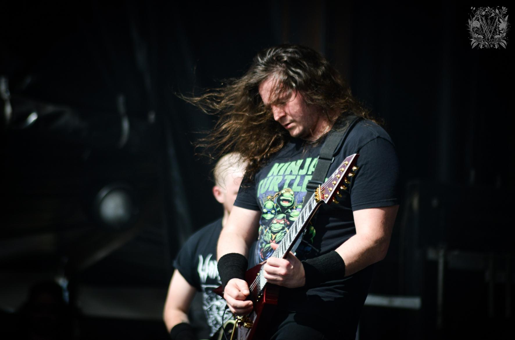 On se retrouve à la Supositor Stage pour le set de WARBRINGER. Ce groupe de Thrash Californien n’a rien à envier de ses pères avec un Thrash old-school bien huilé. Après la mise en place des musiciens, le chanteur John Kevill arrive comme une balle sur scène et met tout de suite l’ambiance. Les gros riffs rapides vont très vite échauffer le pit et on y voit déjà quelques premiers slams. John sait interagir avec le public, tout en jouant de son pied de micro et nous envoyant son chant hurlé qui fleurte avec le yell scream. Le son est typique mais le groupe possède quand même sa propre signature. L’album Weapons of Tomorrow sorti en 2020 est toujours d’actualité et il occupera un bon quart d’heure depuis le début du set, mais la formation n’oublie pas ses titres les plus écoutés, Living Weapon et Hunter-Seeker notamment. WARBRINGER termine son ¾ d’heure avec Remain Violent qui finira un show qui aura bien échauffer son public.