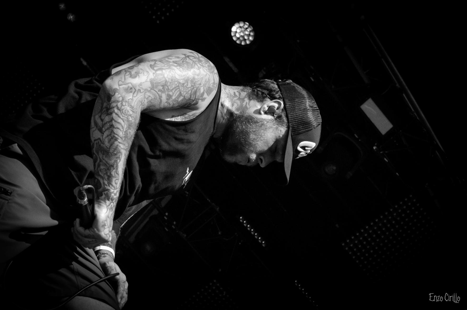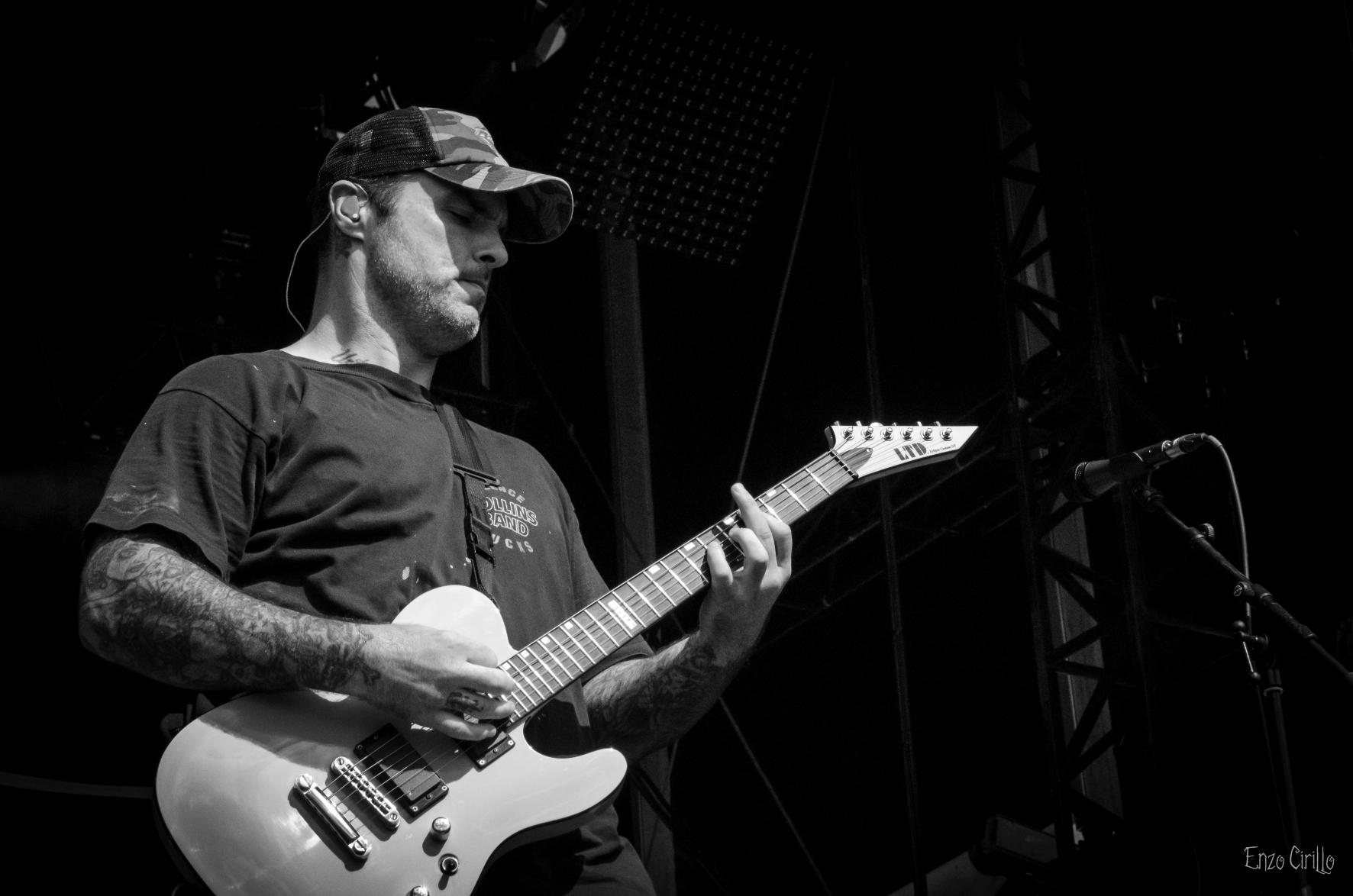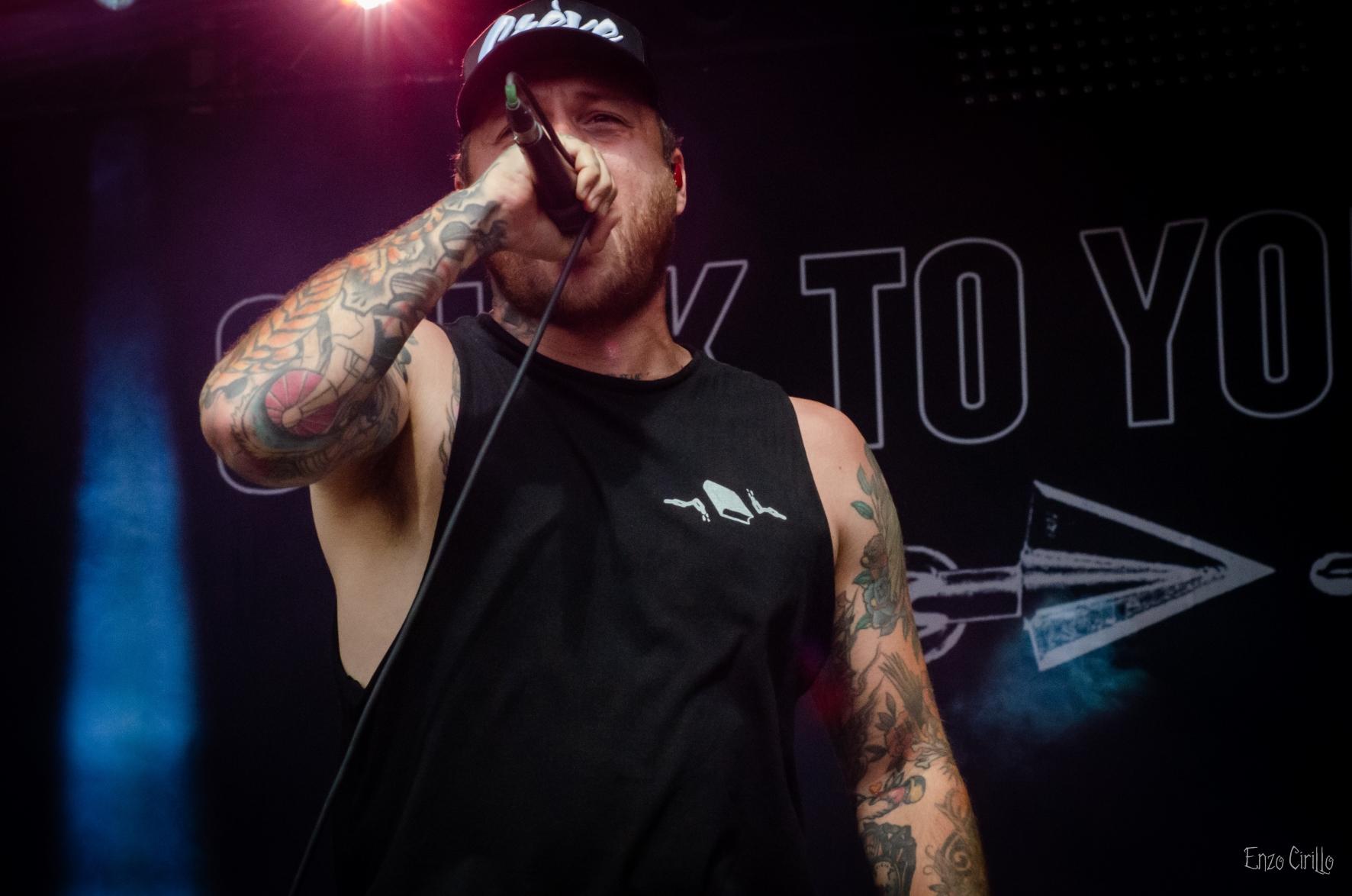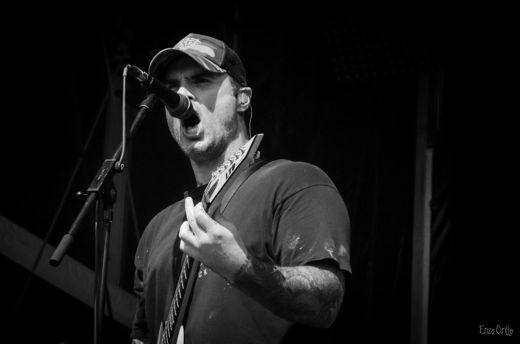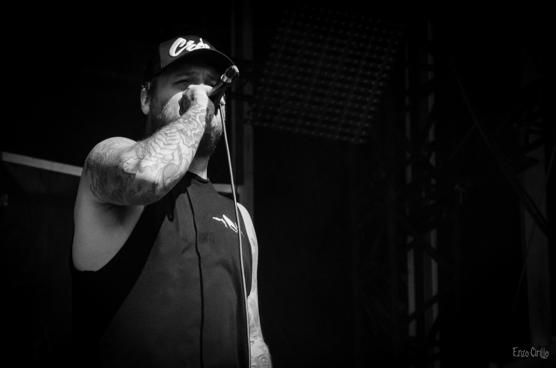 Place maintenant à du gros Punk Hardcore/Metalcore Américain avec STICK TO YOUR GUNS et je vous parlais de deux bagarrodromes au début du report mais le pit de ce groupe n’est pas mal dans son genre non plus. Dès le premier morceau, c’est un déchainement, d’autant plus que le combo nous laissera aucun répit et enchaînera ses titres, pas le temps de lambiner. Le chanteur Jesse Barnett harangue le pit tout envoyant ses vocalises enragées. C’est un véritable défouloir, que ce soit devant ou sur la scène car les Californiens mettent beaucoup d’énergie dans leur set, malgré ce soleil de plomb qui tape. Et entre les riffs violents on retrouve des refrains catchy et accrocheurs dont certains seront repris en chœur par l’assistance, on peut donc dire que les fans sont bien présents pour les soutenir. STICK TO YOUR GUNS n’a désormais plus rien à prouver et après avoir ouvert pour plusieurs gros noms du milieu Hardcore et Metalcore, le groupe peut rassembler et remplir des salles.