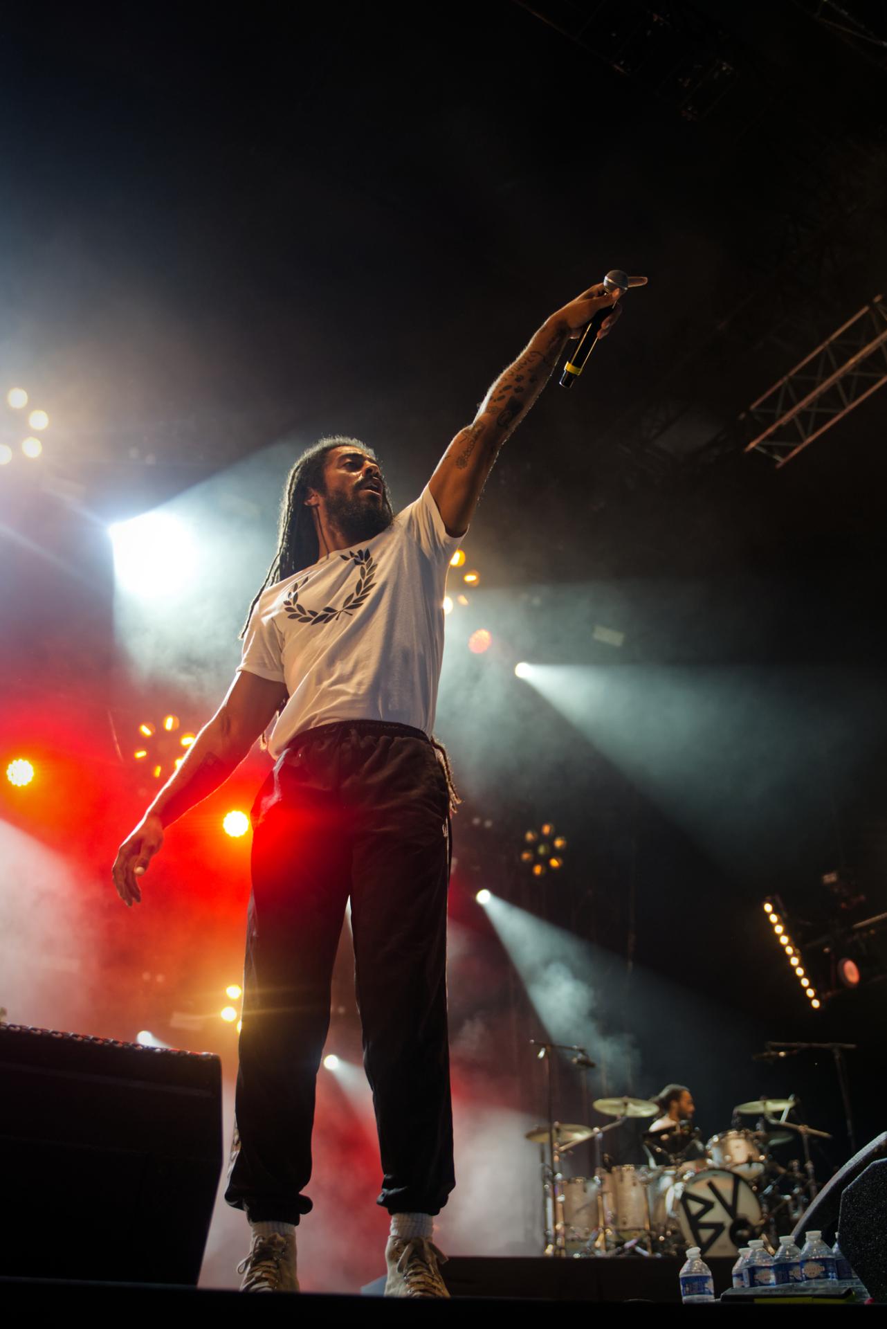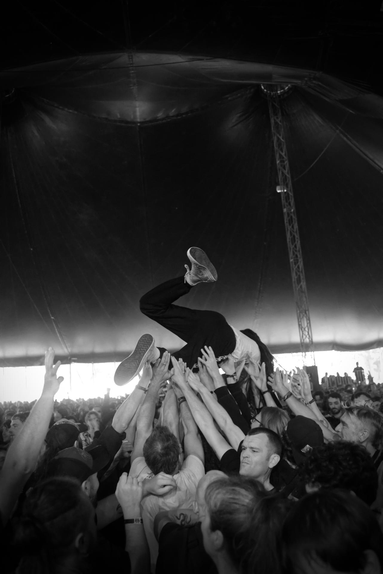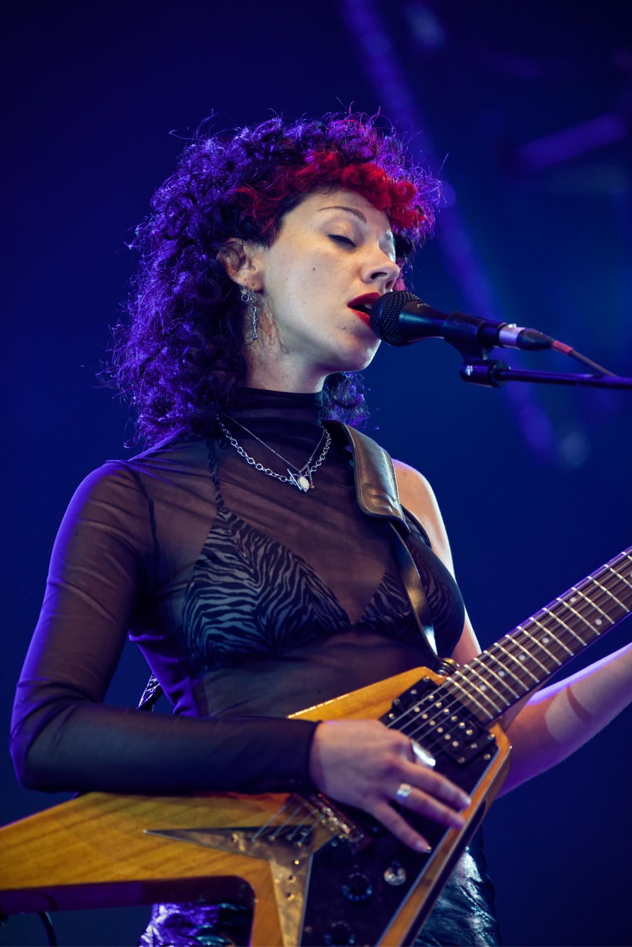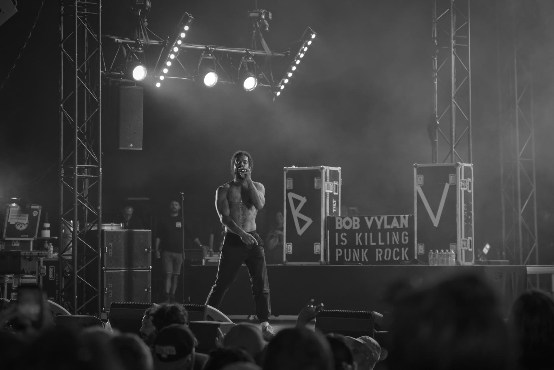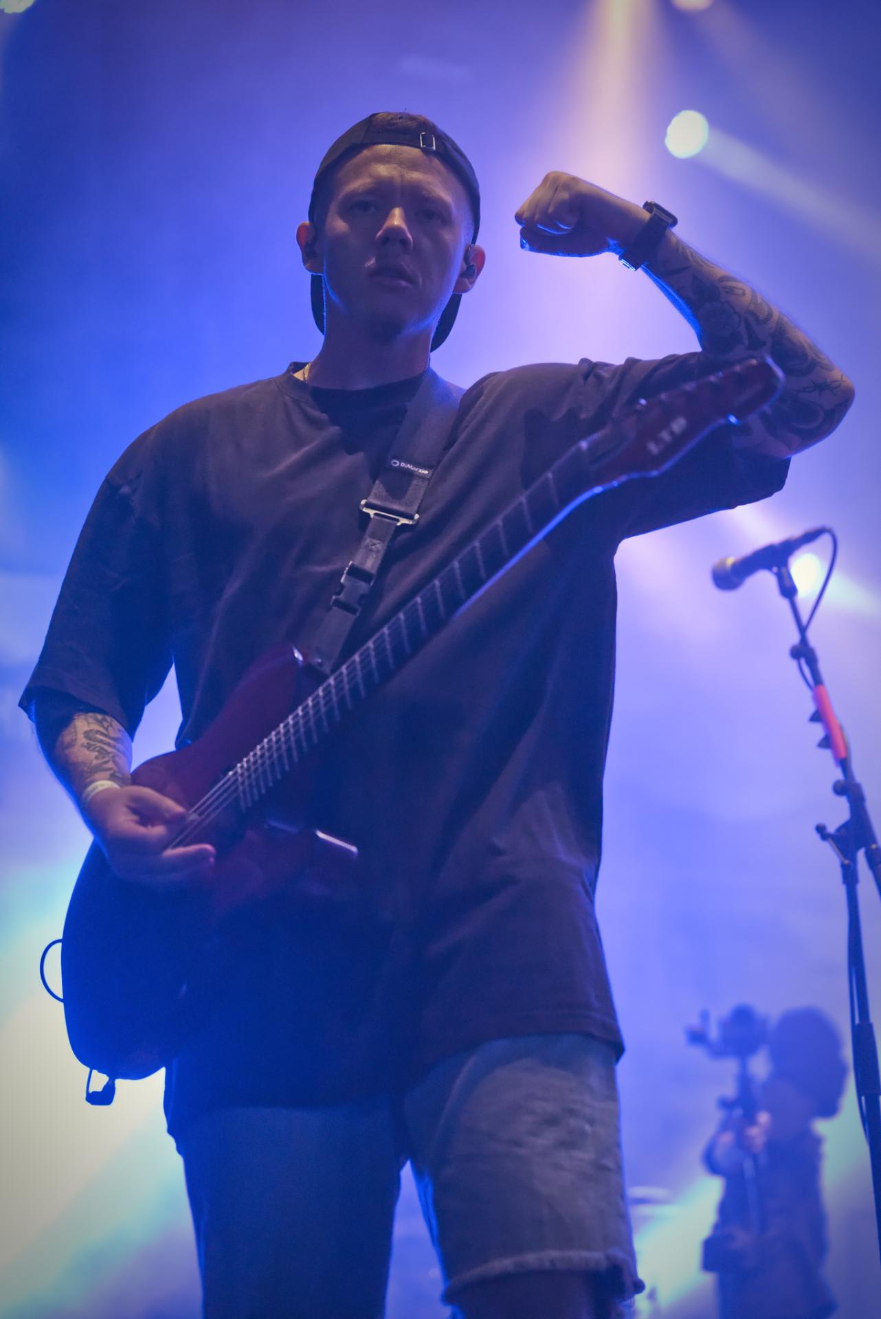 Ensuite, j’ai assisté au concert de BOB VYLAN, véritable claque. Le duo londonien, avec son mélange unique de punk et de rap, a électrisé la foule avec ses textes engagés et son énergie brute. J’ai rapidement compris pourquoi le chanteur s’était étiré sur scène pendant son intro, en voyant l’énergie qu’il a déployée pendant son show. Leur performance a transformé la scène en un véritable terrain de révolte, faisant monter la température et déclenchant des mosh pits enragés.