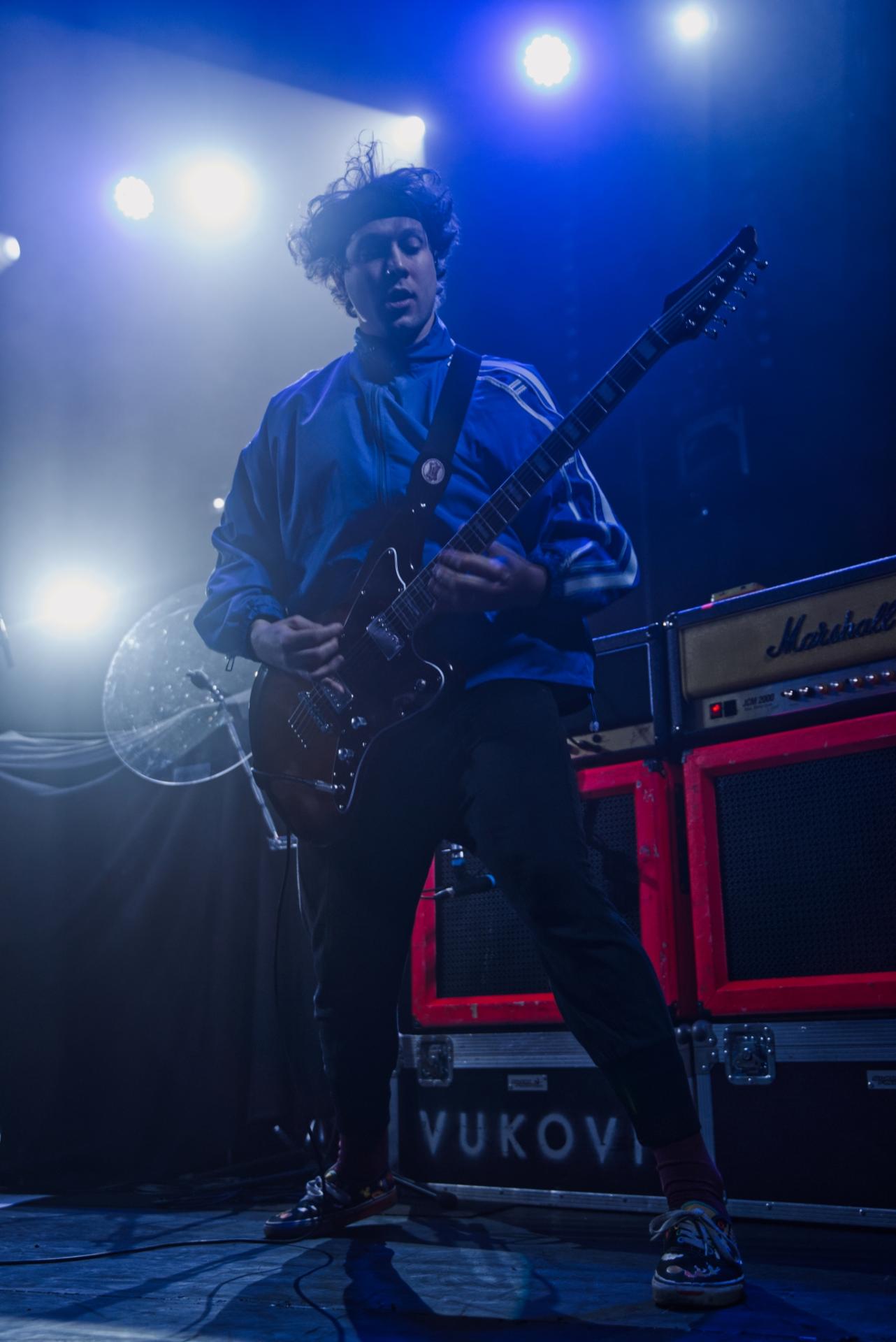 VUKOVI, duo écossais de noise-pop accompagné d’un batteur pour l’occasion, peine à captiver l'attention au début de leur set et les petit soucis techniques n’y étaient à mon avis pas pour rien. Leur mélange de pop et de riffs heavy divise l'auditoire. Cependant, l’énergie déployé durant leur performance est saluée par certains spectateurs, témoignant d'une diversité de goûts dans la salle. Tout cela me conforte dans l’idée que malgré une prestation quelque peu critiquée ce groupe avait tout à fait sa place sur ce plateau.