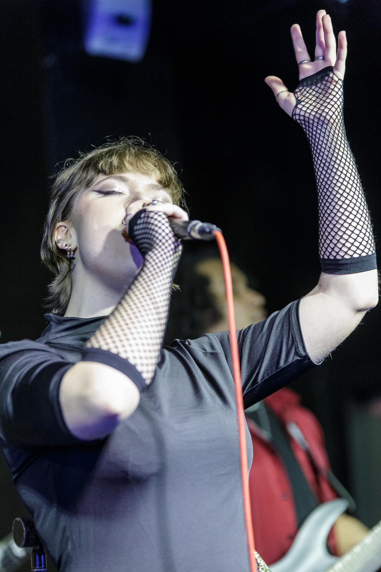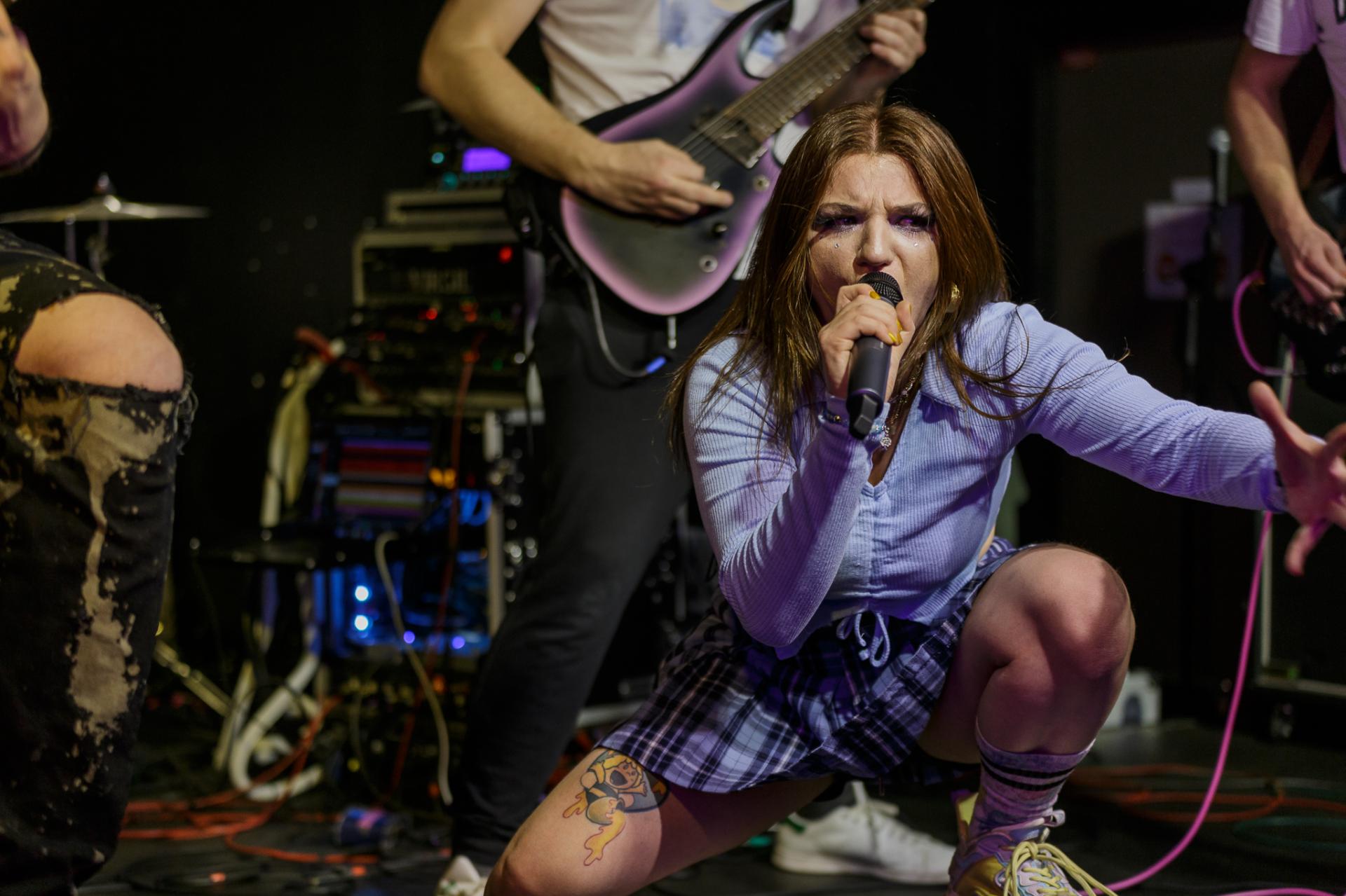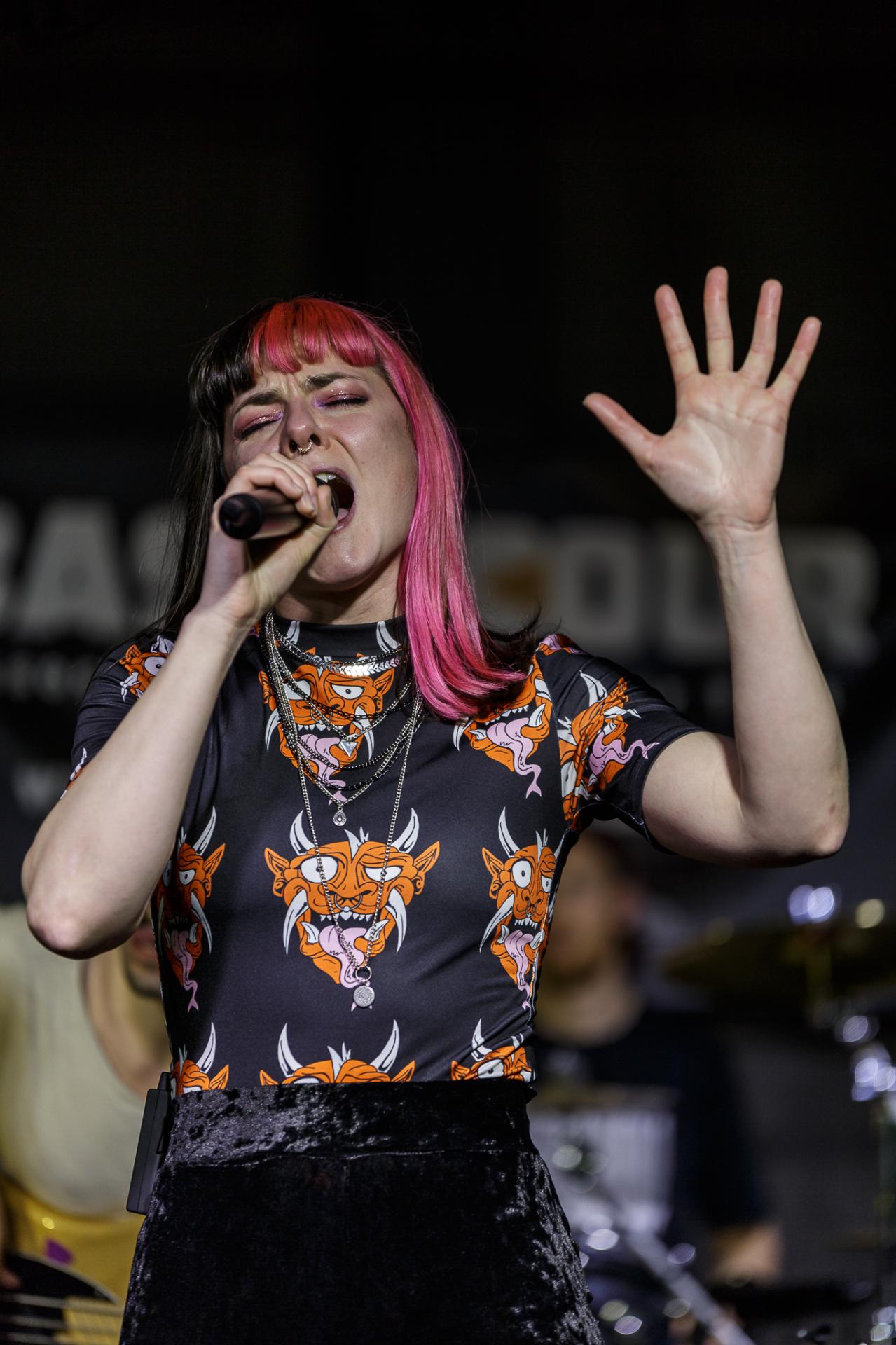 Arrive la chanson Leech, un morceau un peu plus énergique qui donnera lieu à un wall of death, histoire que l’assistance ne se repose pas. Et c’est encore Lola qui viendra leur prêter main forte puisqu’il s’agit également d’un featuring, on ne s’en lasse pas ! Derrière la douceur de la voix de Pauline se cache aussi un certain talent pour le scream et elle forme un super tandem avec Lola. PROSPECT OF RAIN continuera sur cette même vibe tout le long du set, entre mélodies profondes et riffs intenses, une véritable tourbillon d’émotions et de sensibilité.