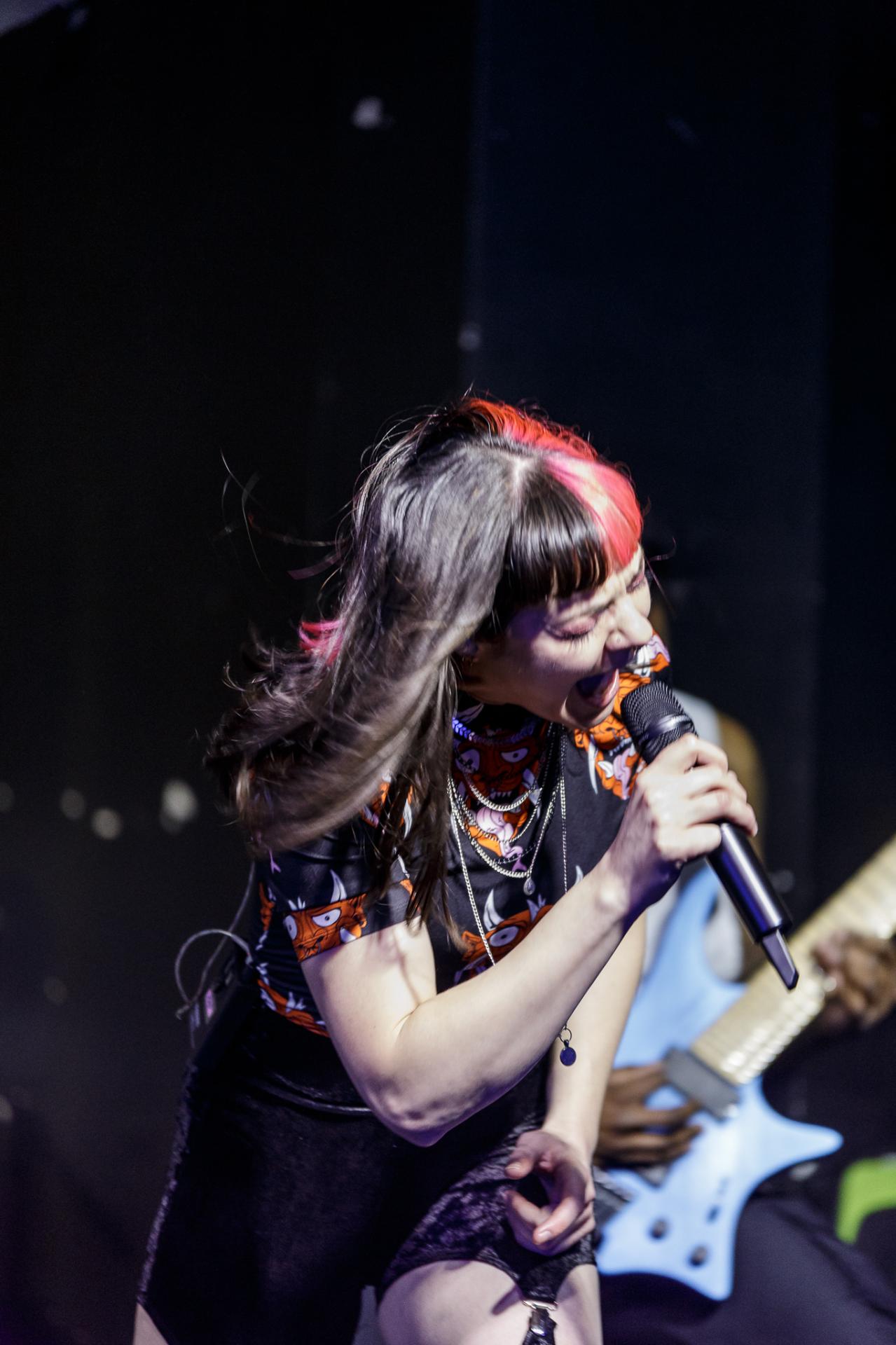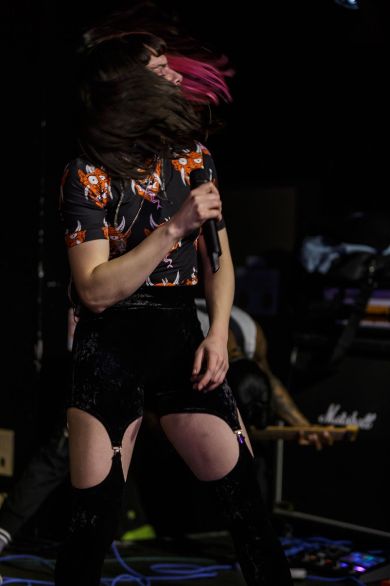 L’énergie communicative du groupe se répand dans le public ce qui donne une ambiance de folie comme leur précédent passage à Lille. Les riffs incisifs des musiciens associés au chant rageur de Lola nous transportent dans un véritable défouloir et autant dire que c’est la guerre dans le pit. Mais attention ! Une guerre conviviale et bon enfant ! Surtout lorsque le groupe interprètera les morceaux remaniés Fanatical et Potential, les vrais savent pourquoi ! Malgré le froid qu’il fait à l’extérieur, l’intérieur de la Bassecour est un véritable four tellement c’est l’effervescence.