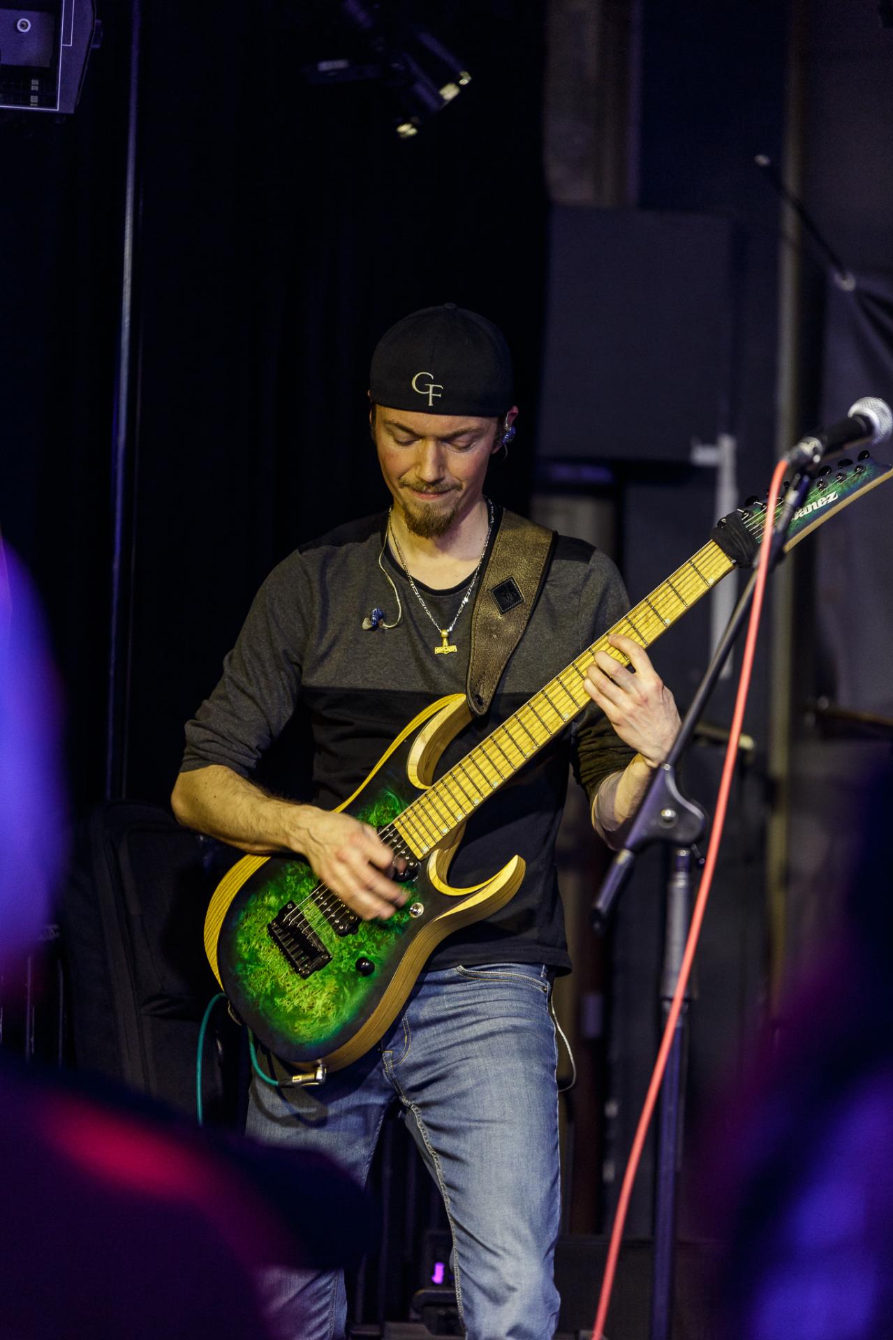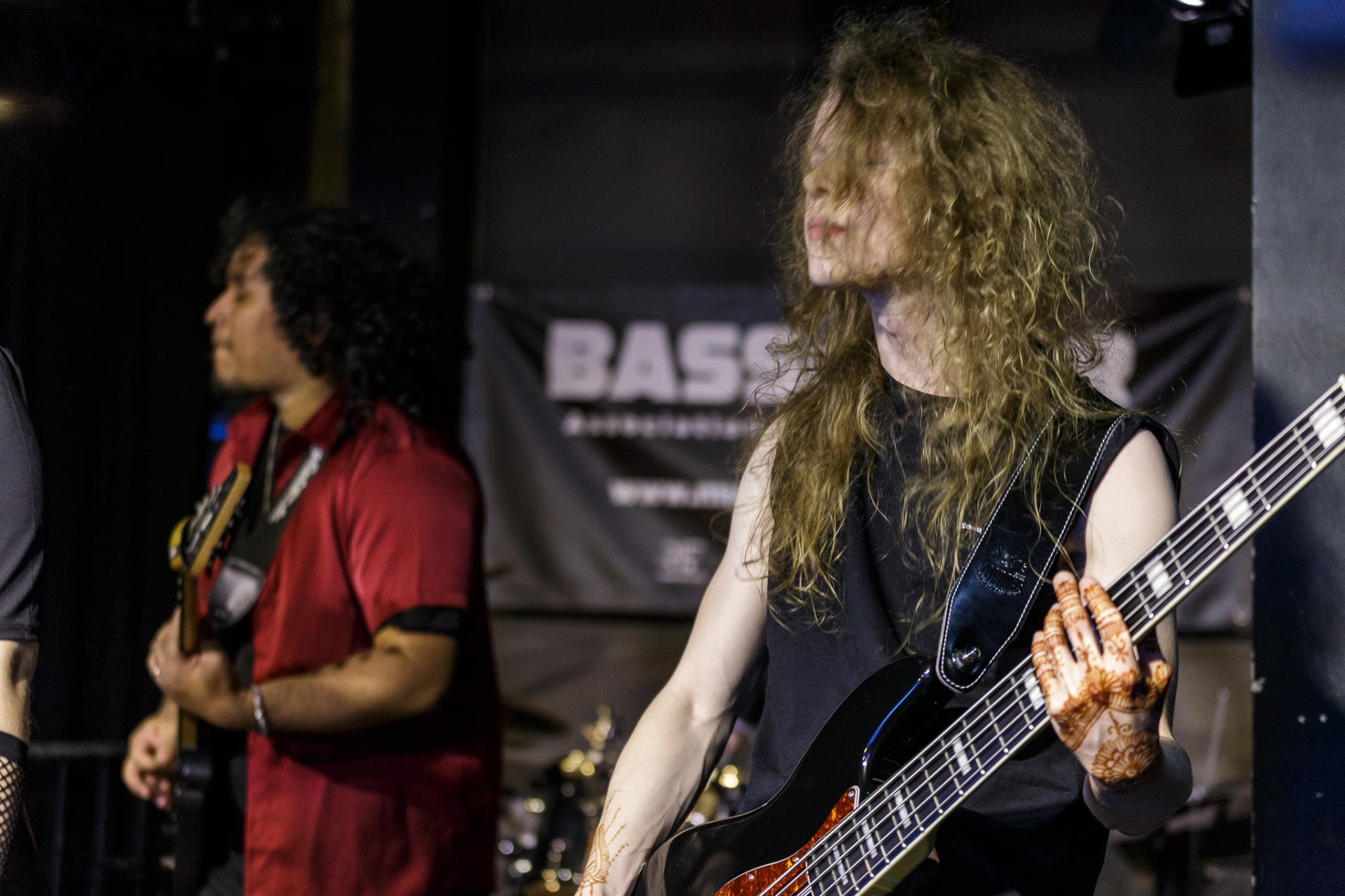 Pas le temps de respirer ! À peine arrivé, GIANT FRAGMENTS démarre son set, armé de son dernier album Archeology et quelle énergie dès le premier titre ! Le groupe est mené par Mathilde au chant, aussi connue sous le nom d’Abraham Licorne, également coach vocal, et le moins que l’on puisse dire c’est qu’elle a une puissance vocale considérable. Elle mettra beaucoup d’émotions dans son chant si bien que ça vous prend littéralement aux tripes, alternant chant guttural et chant clair de façon magistral avec une voix parfois déchirante soutenue par une section rythmique d’une précision implacable. Les musiciens étaient en parfaite osmose, alternant entre passages mélodiques envoûtants et explosions sonores ravageuses.