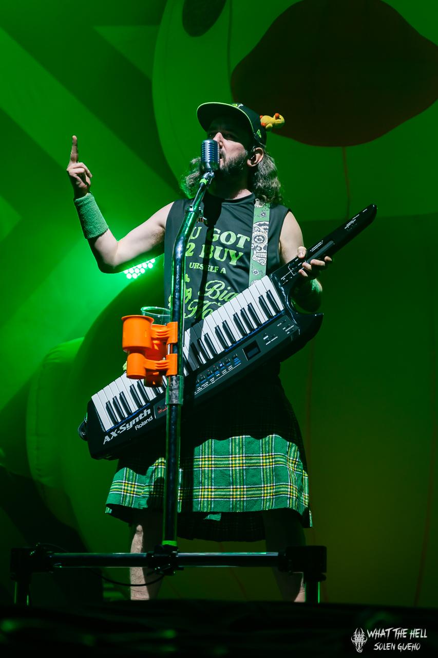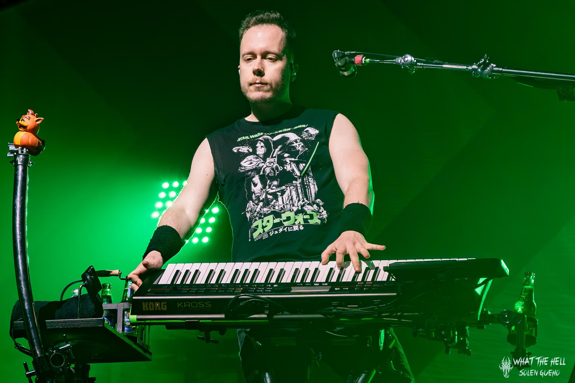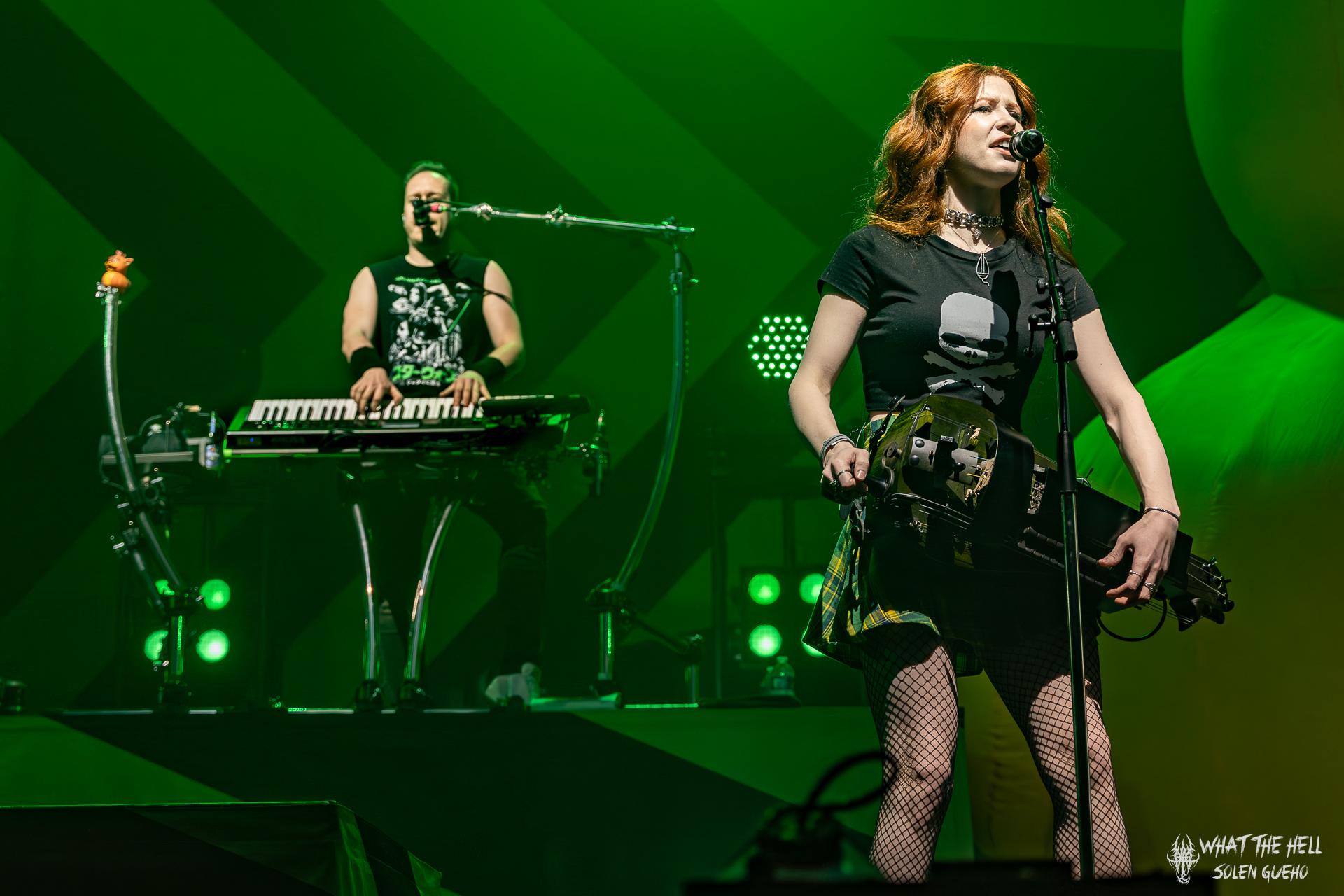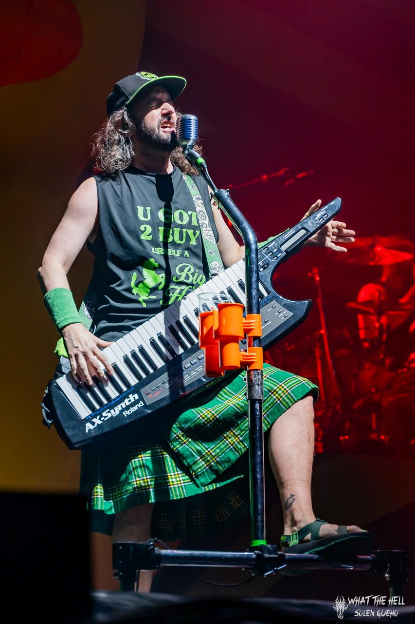 Dès leur entrée sur scène, la folie s’empare du Zénith. Christopher Bowes, en capitaine charismatique, harangue la foule tandis que le groupe enchaîne avec Keelhauled, un classique instantanément repris en chœur par le public. Comme à leur habitude, ALESTORM ne fait pas dans la demi-mesure : le décor est un mélange de tonneaux, d’un gigantesque canard gonflable (leur mascotte), et d’un drapeau pirate flottant en fond de scène.