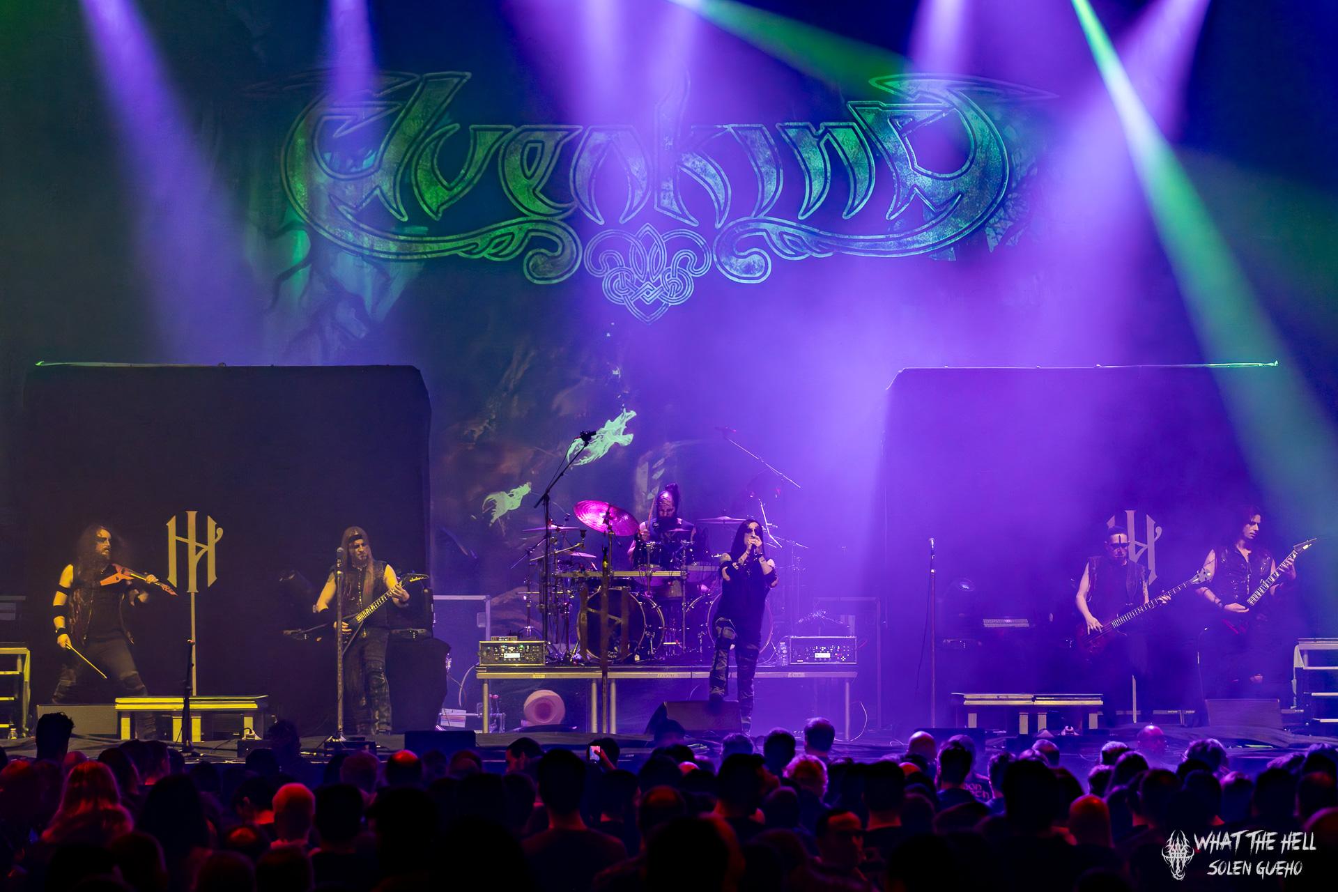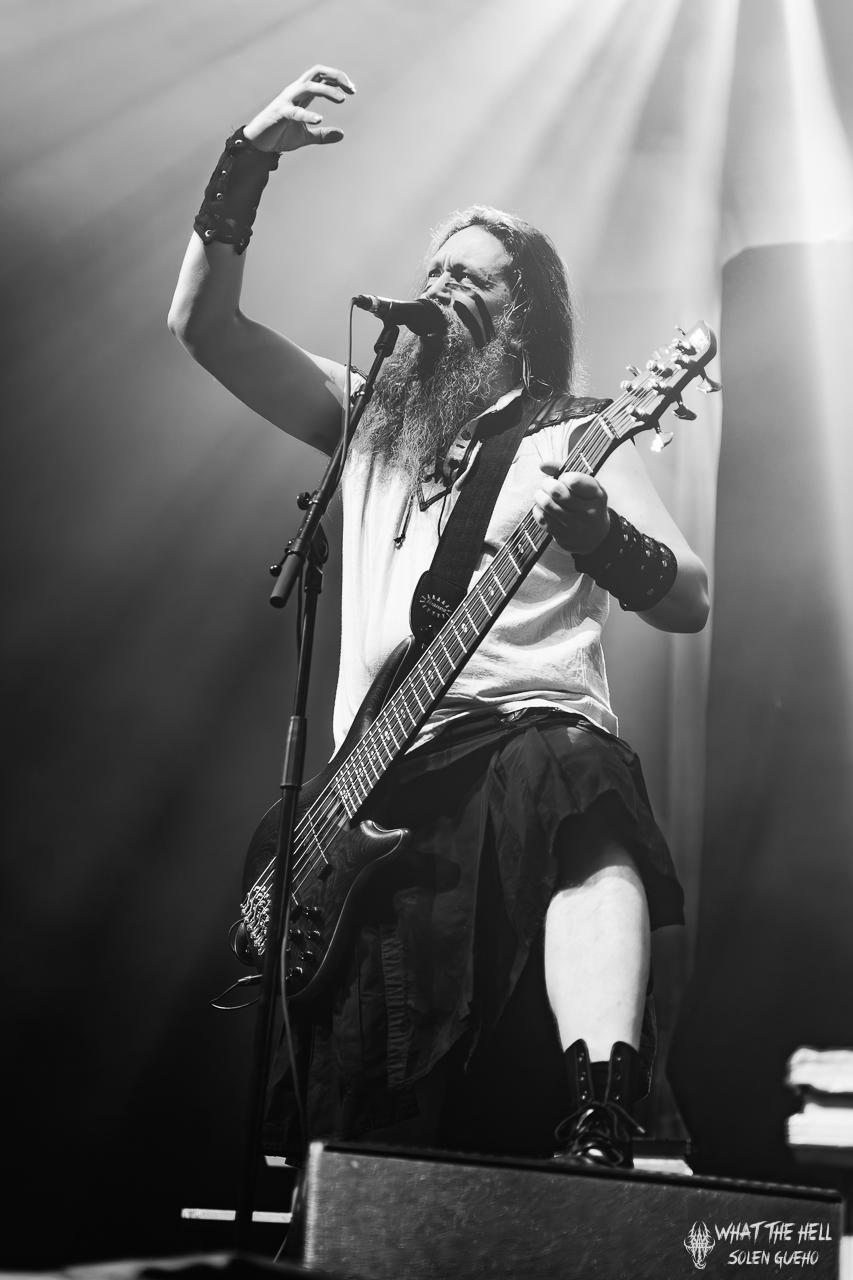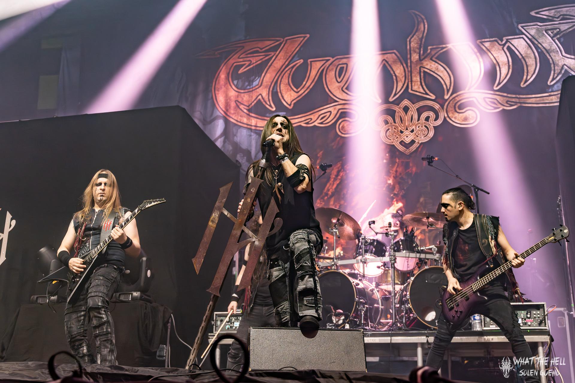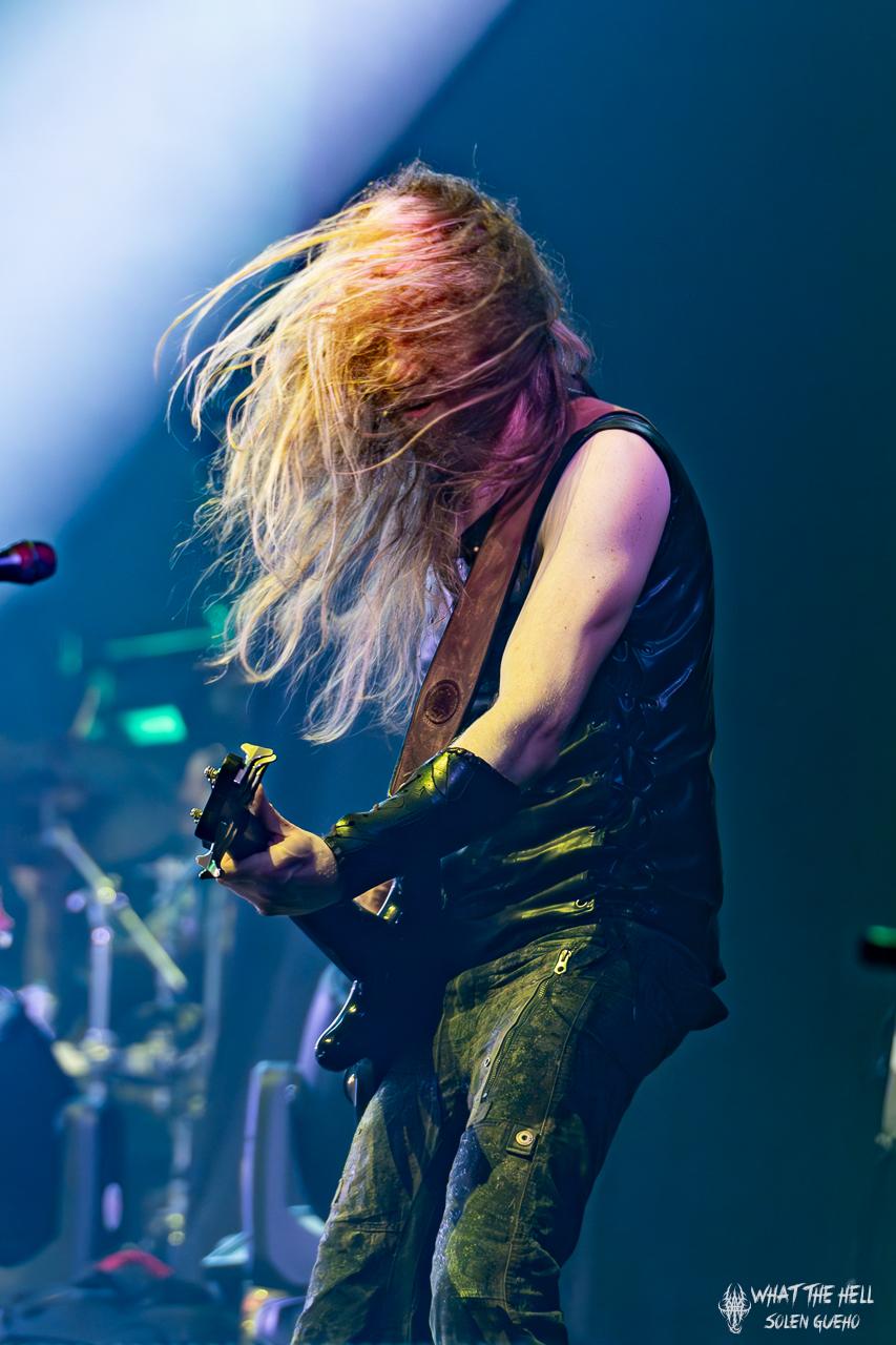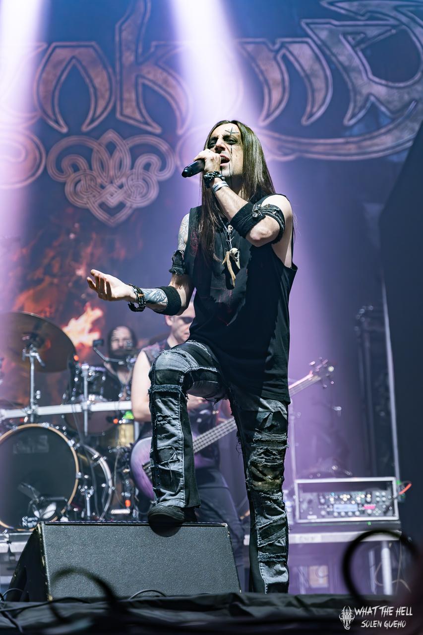 ELVENKING ouvre les hostilités dans un Zénith de Paris peu rempli en raison de l’horaire ; ce seront donc les premiers arrivés qui en profitent. Le set démarre par Throes of Atonement, un titre très épique qui sonne presque comme un générique d’ouverture d’une série médiévale. Le chanteur Damnagoras a fière allure avec ses bois sur la tête. Le deuxième morceau, Pagan Revolution, porte bien son nom pour cette soirée et annonce la couleur pour la suite. Un nouvel album est sur le point d’arrivé et le groupe nous en jouera quelques extraits, dont le nouveau titre Luna. La prestation est énergique et parfaite pour chauffer la salle, qui se remplit au fur et à mesure que les minutes passent. ELVENKING sera bien ovationné ce qui tend à prouver que le groupe a gagné de nouveaux fans et que la prestation a conquis le public.