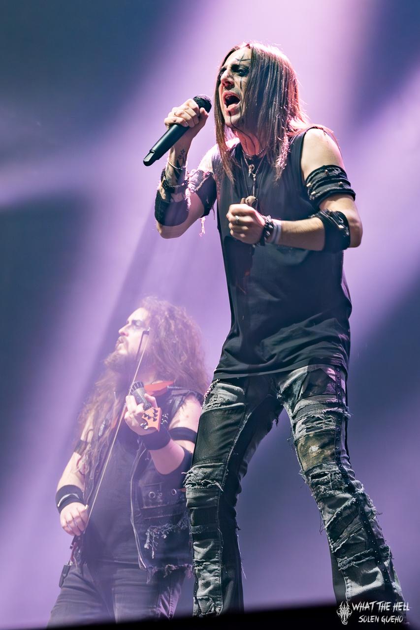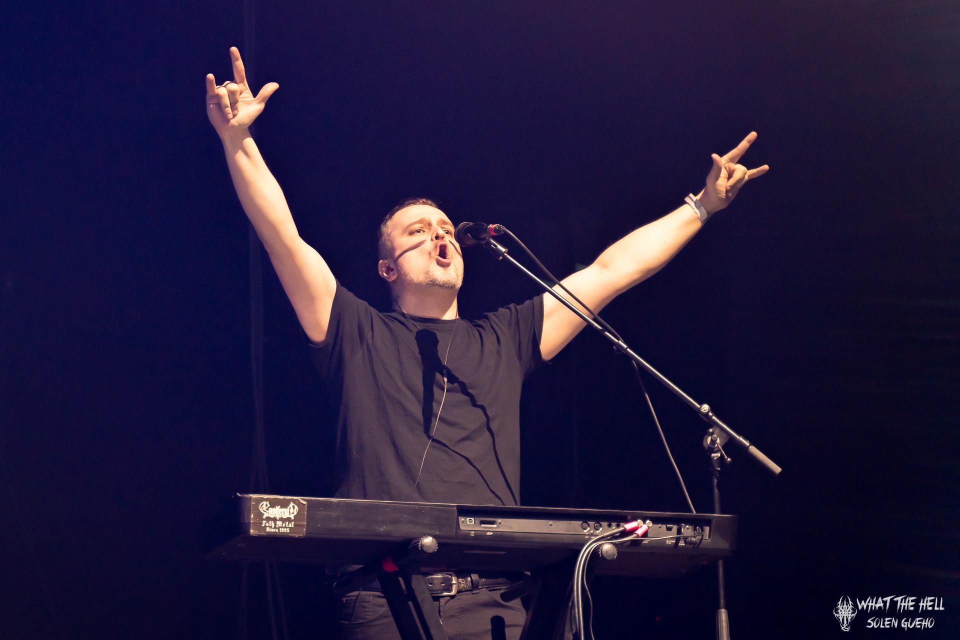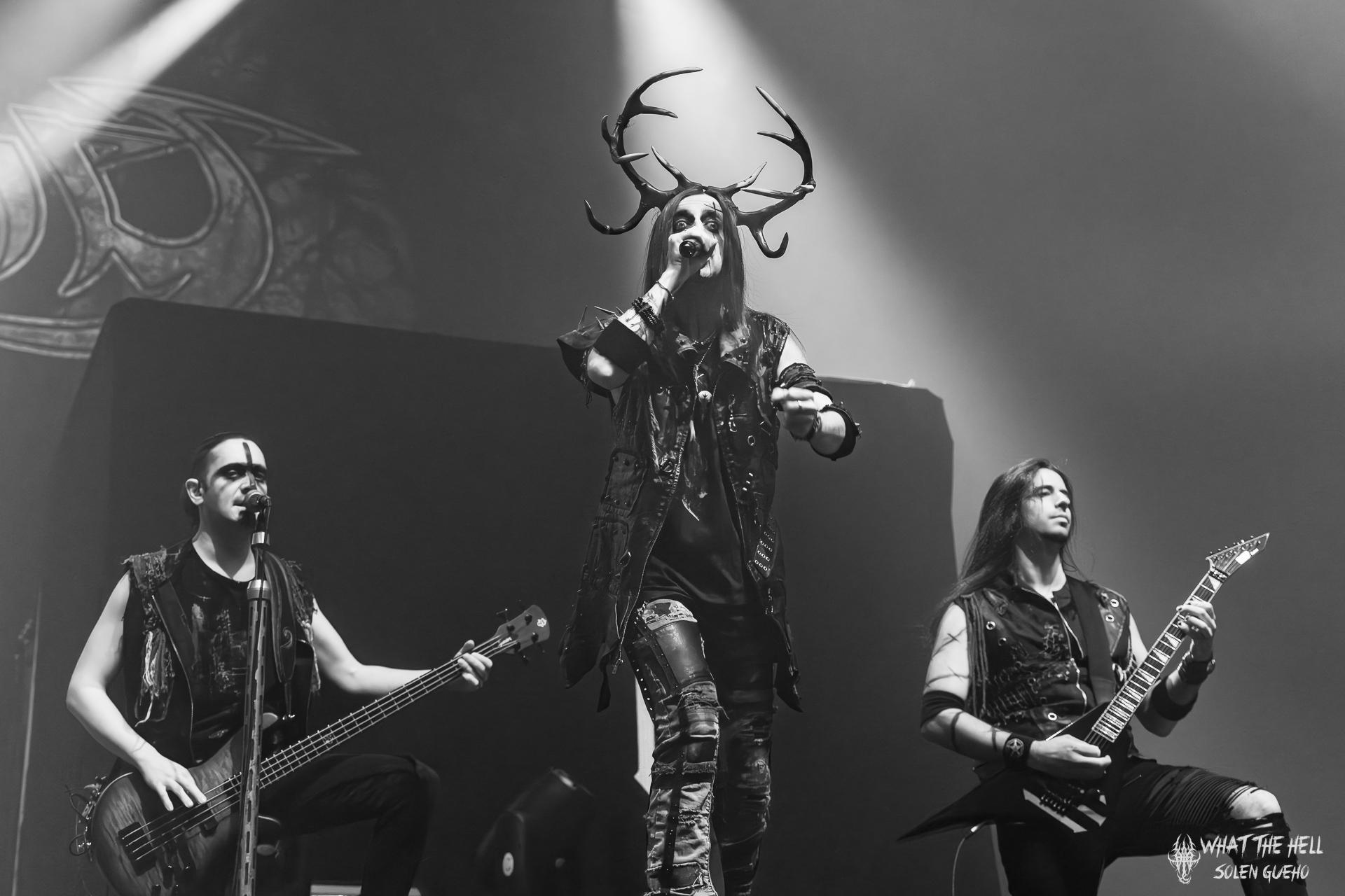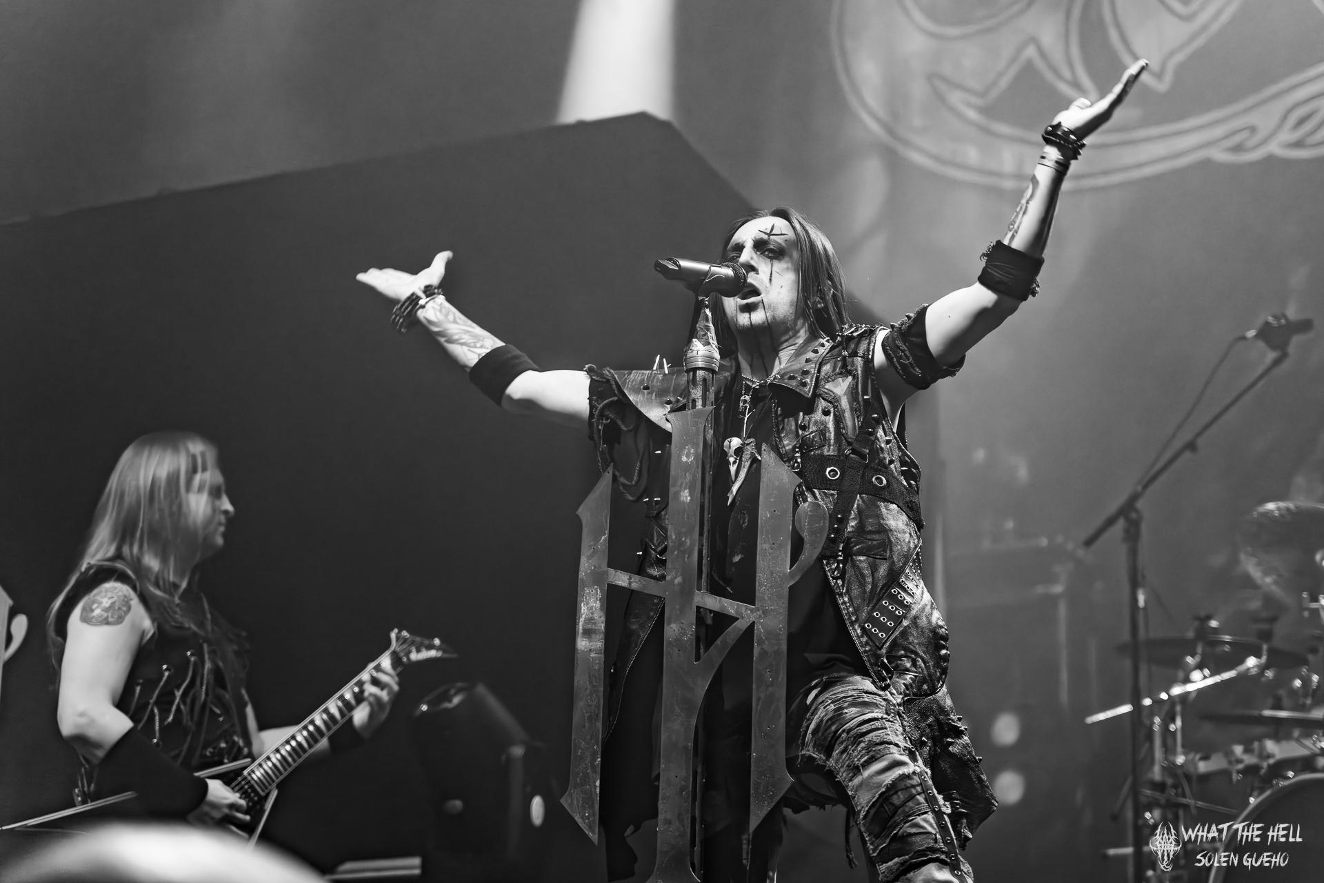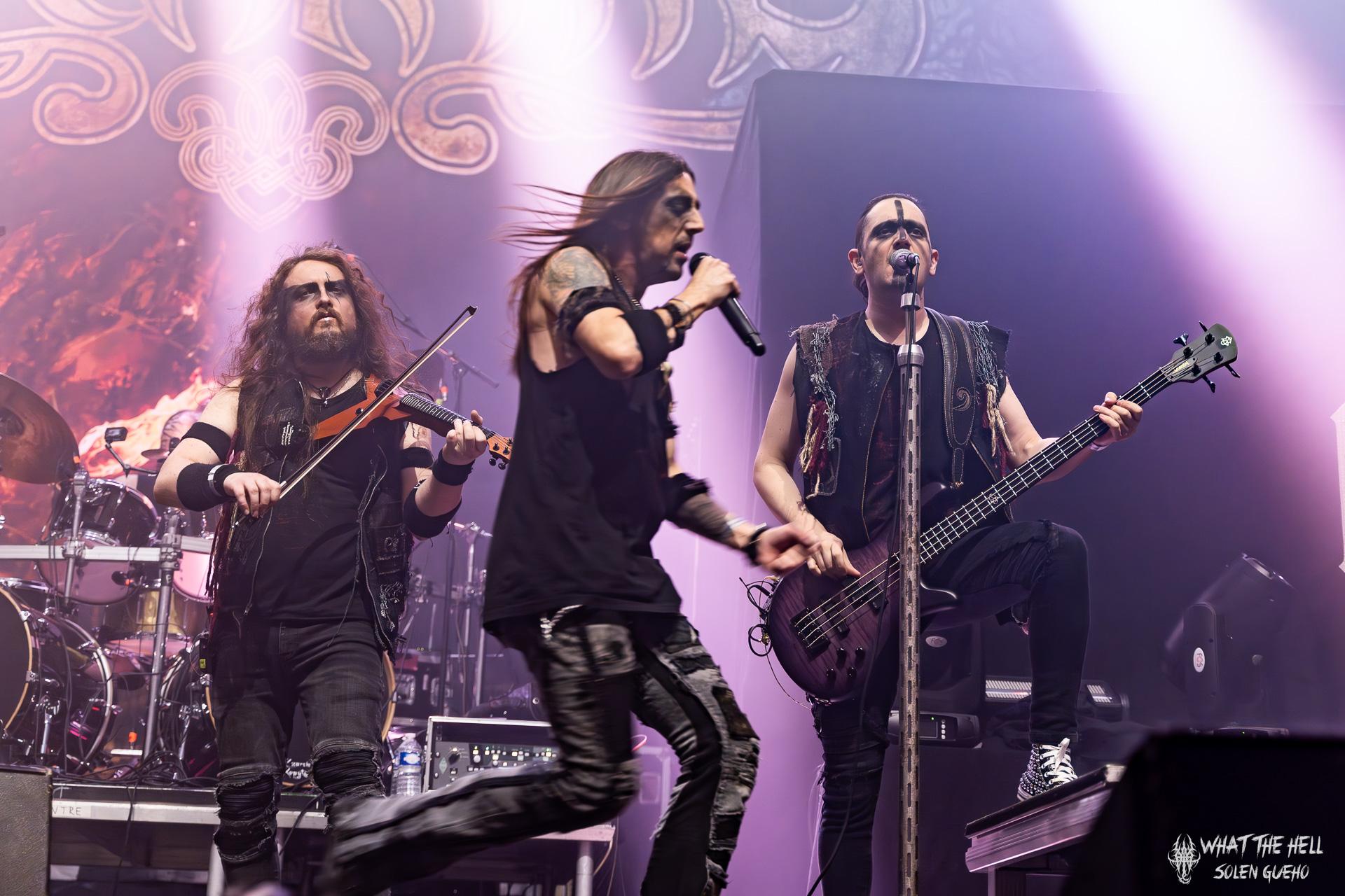 ELVENKING ouvre les hostilités dans un Zénith de Paris peu rempli en raison de l’horaire ; ce seront donc les premiers arrivés qui en profitent. Le set démarre par Throes of Atonement, un titre très épique qui sonne presque comme un générique d’ouverture d’une série médiévale. Le chanteur Damnagoras a fière allure avec ses bois sur la tête. Le deuxième morceau, Pagan Revolution, porte bien son nom pour cette soirée et annonce la couleur pour la suite. Un nouvel album est sur le point d’arrivé et le groupe nous en jouera quelques extraits, dont le nouveau titre Luna. La prestation est énergique et parfaite pour chauffer la salle, qui se remplit au fur et à mesure que les minutes passent. ELVENKING sera bien ovationné ce qui tend à prouver que le groupe a gagné de nouveaux fans et que la prestation a conquis le public.