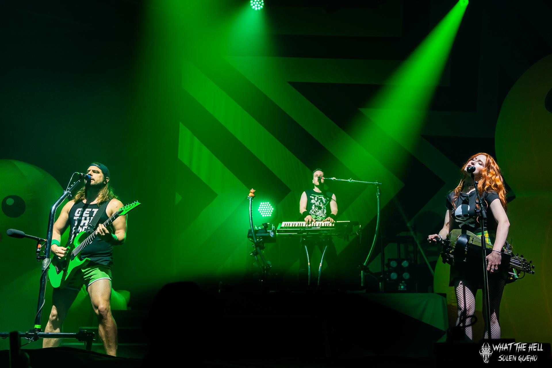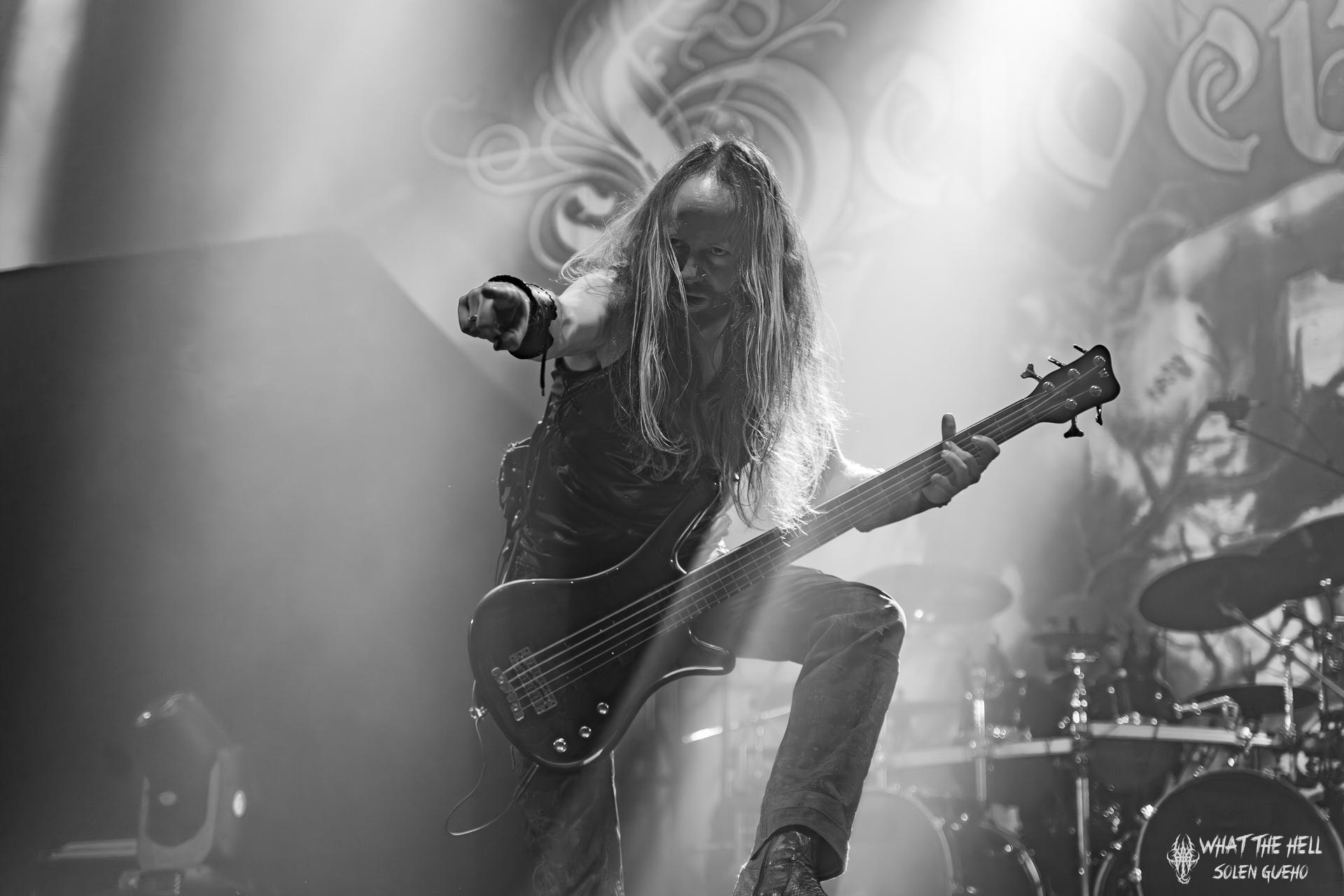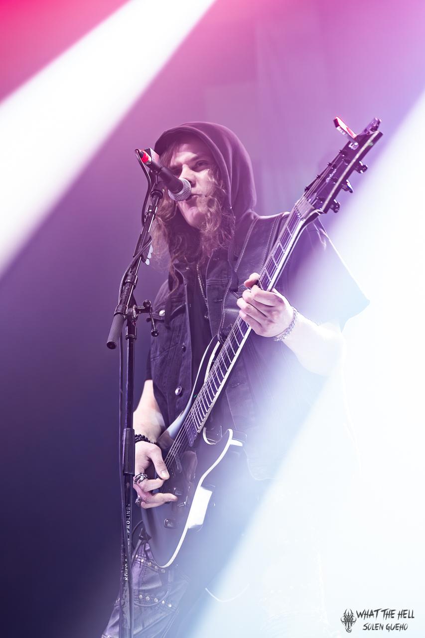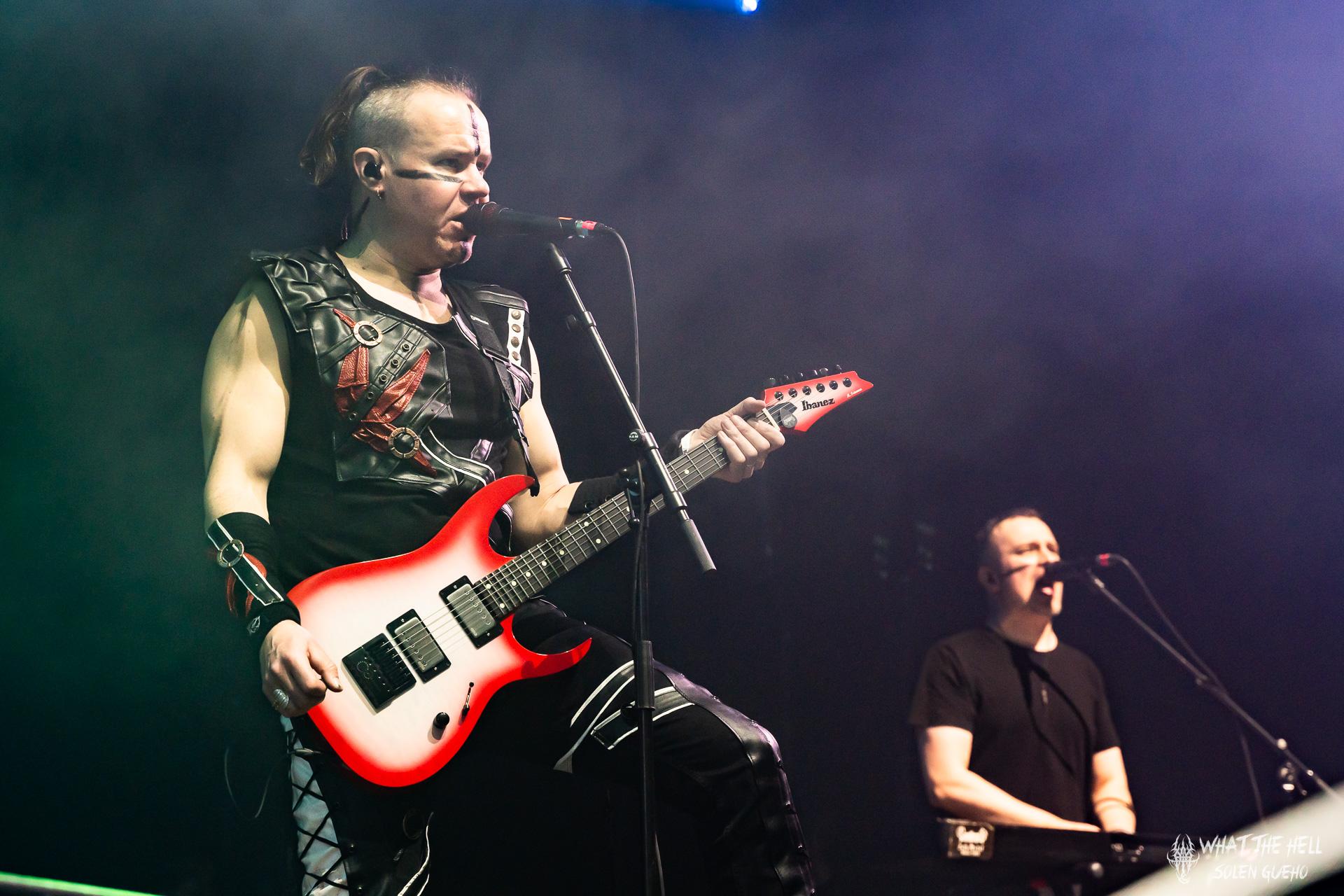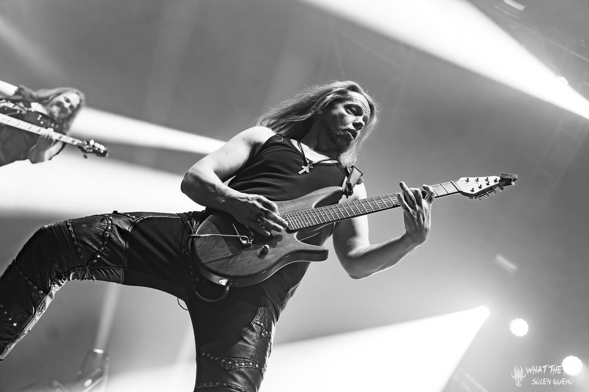 ELVENKING ouvre les hostilités dans un Zénith de Paris peu rempli en raison de l’horaire ; ce seront donc les premiers arrivés qui en profitent. Le set démarre par Throes of Atonement, un titre très épique qui sonne presque comme un générique d’ouverture d’une série médiévale. Le chanteur Damnagoras a fière allure avec ses bois sur la tête. Le deuxième morceau, Pagan Revolution, porte bien son nom pour cette soirée et annonce la couleur pour la suite. Un nouvel album est sur le point d’arrivé et le groupe nous en jouera quelques extraits, dont le nouveau titre Luna. La prestation est énergique et parfaite pour chauffer la salle, qui se remplit au fur et à mesure que les minutes passent. ELVENKING sera bien ovationné ce qui tend à prouver que le groupe a gagné de nouveaux fans et que la prestation a conquis le public.