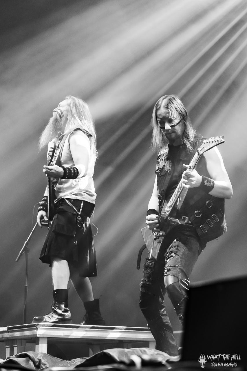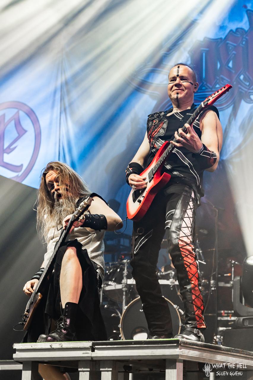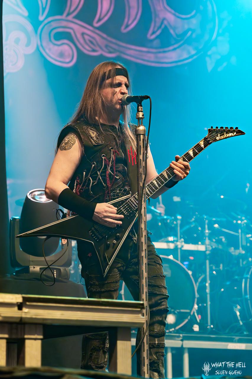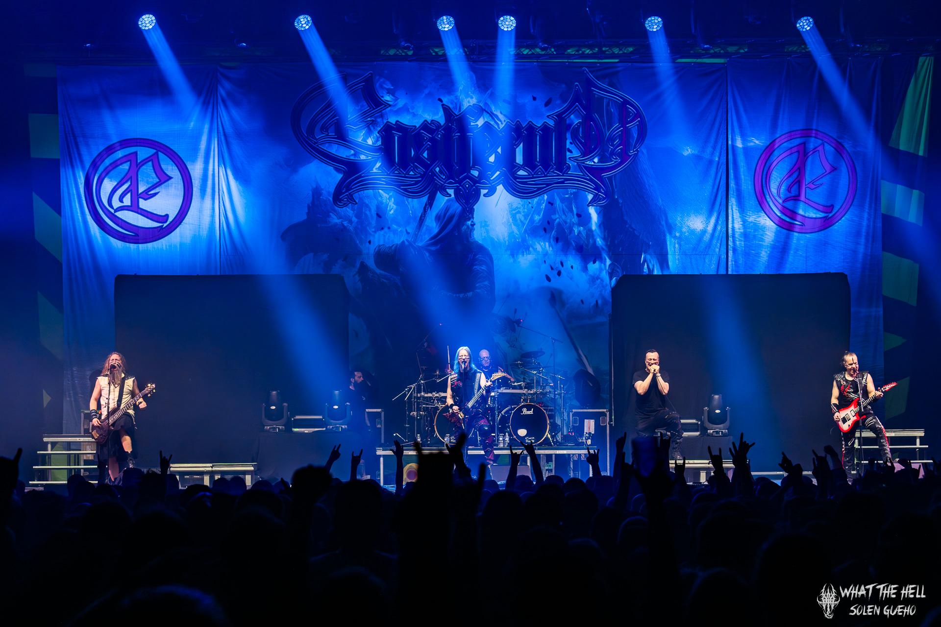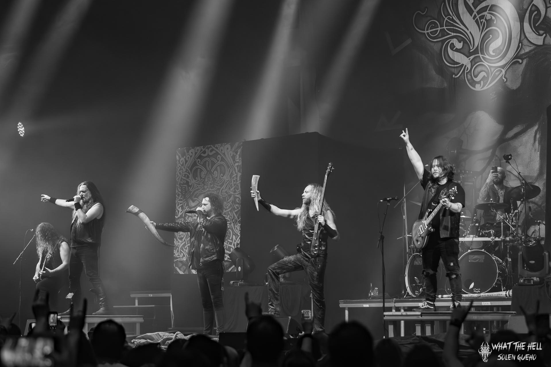 C’est avec une joie non dissimulée que je vois arriver les membres d’ENSIFERUM sur la scène du Zénith sur l’intro Aurora. Les maîtres du Folk Metal Finlandais s’apprêtent à déclencher une tempête hivernale pour faire raccord avec le titre de leur nouvel album Winter Storm qui sera défendu ce soir, à commencer par Fatherland qui débute le set. Mais le groupe sait y faire avec son public en ressortant les tubes comme Twilight Tavern dont le titre sera scandé à tue-tête, suivi par Treacherous Gods, ce qui déclenchera une effervescence dans le pit, habituel pour un concert d’ENSIFERUM.