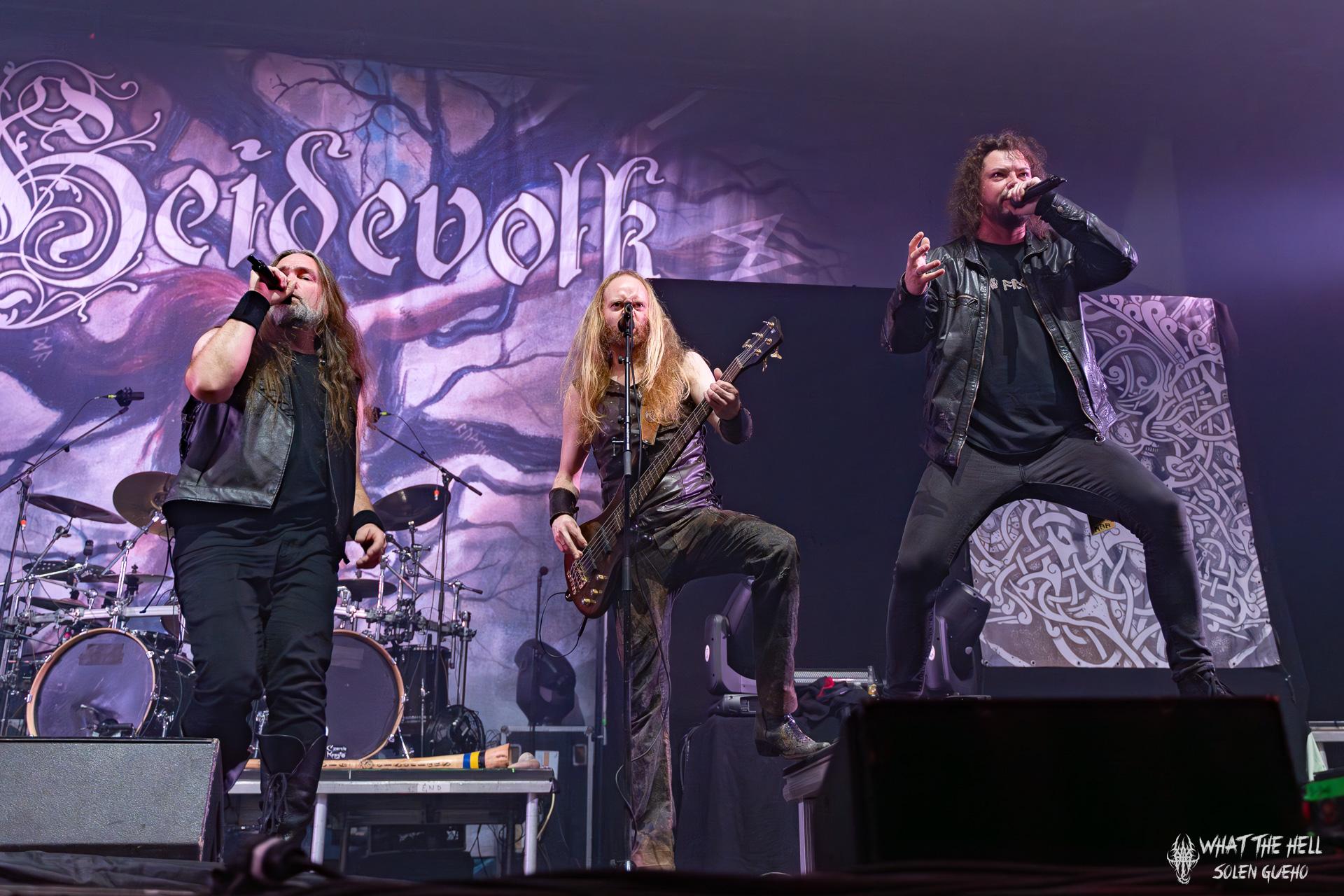 Nous avions déjà eu l’occasion de voir HEIDEVOLK lors du Cernunnos Pagan Fest 2020, une performance qui nous avait marqué. Le point fort de cette formation c’est d’avoir un duo de chanteur qui s’accorde parfaitement, alternant chants clairs épiques et growls guerriers. Le groupe mettra l’accent sur son dernier album Wederkeer paru en 2023 avec quelques morceaux comme Hagalaz, Schildenmuur ou encore Drink met de Goden (Valhalla). Une autre caractéristique d’HEIDEVOLK, c’est aussi d’avoir quelques chansons en anglais bien que la majeure partie de la discographie soit composée de chansons en Néerlandais. La prestation fédératrice se terminera sur leur reprise de Vulgaris Magistralis, pour un final, on peut le dire, magistral !