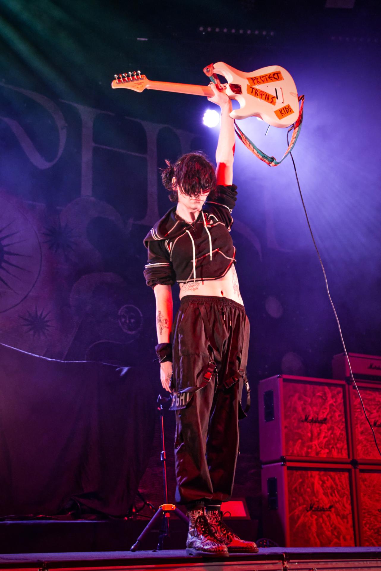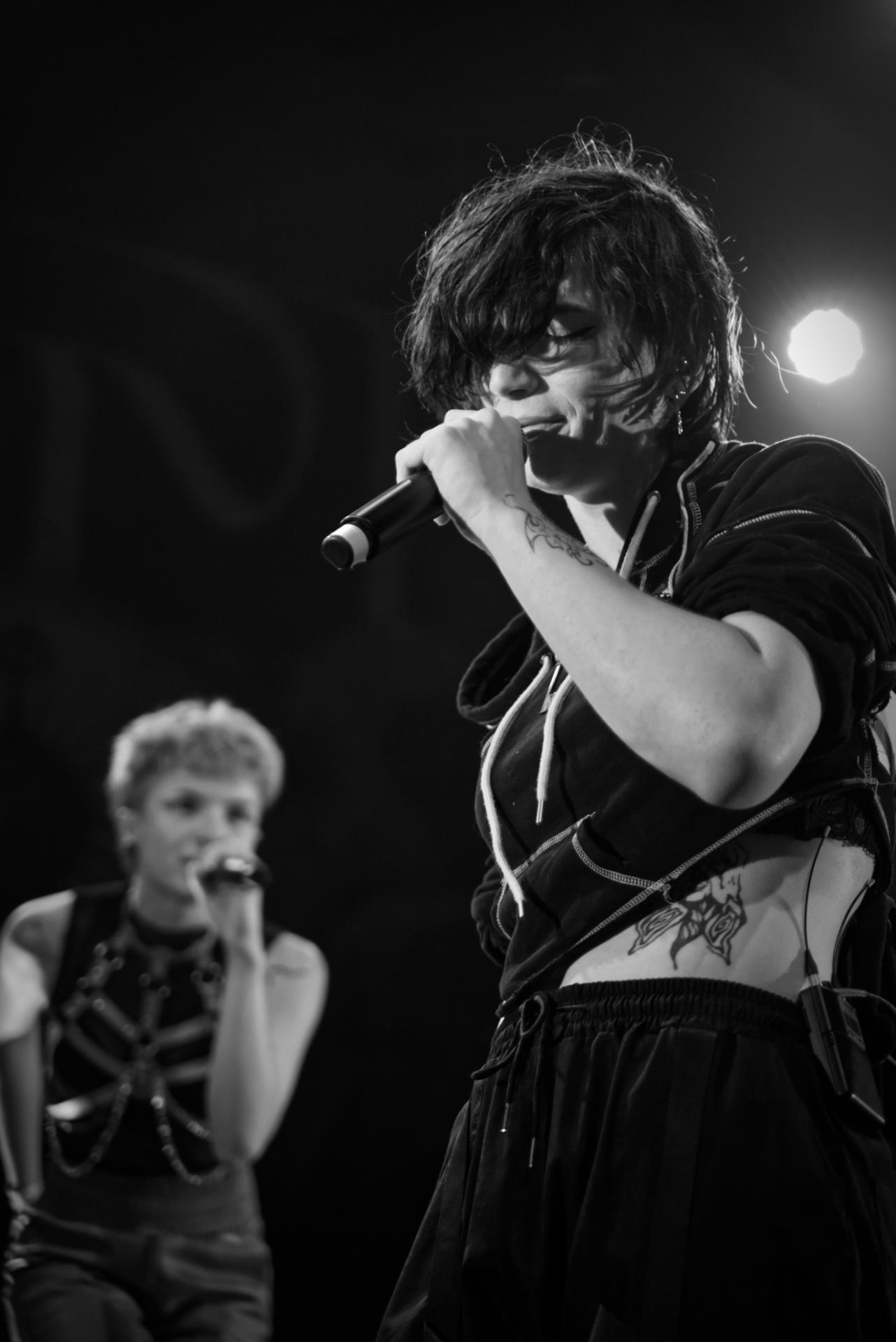 Originaire de Rennes, la première partie du nom de GRAPHY-T a parfaitement mis en avant leur capacité à mélanger divers styles musicaux, créant ainsi un son alternatif unique. Revendiquant des valeurs LGBT lors d’interactions avec le public, le duo affiche fièrement les mots "protect trans kid" inscrits au dos de la guitare de la guitariste, ajoutant une dimension engagée à leur performance.