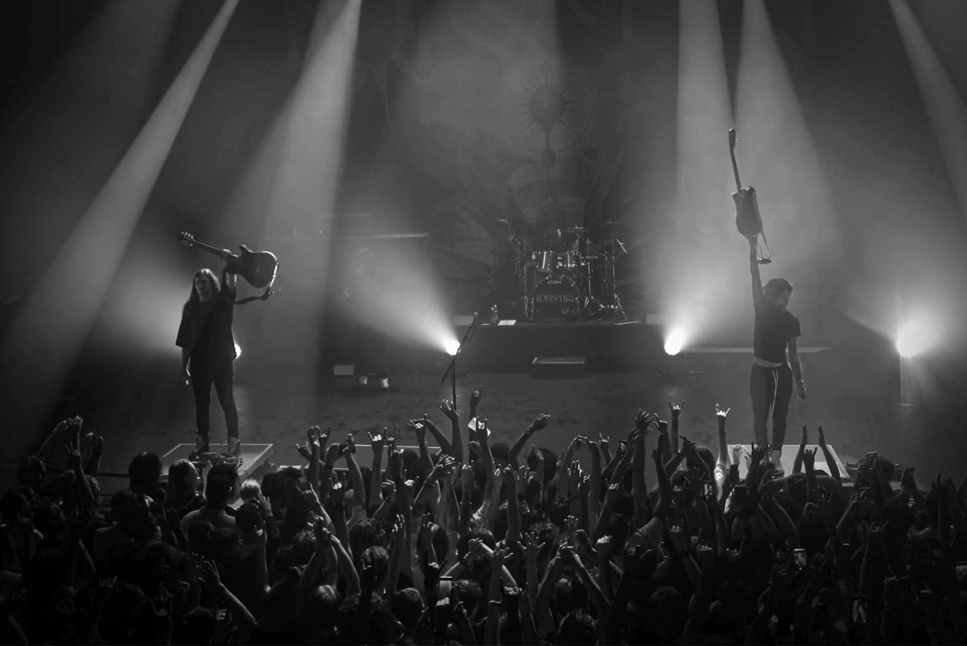 Sur scène, GRAPHY-T est un véritable duo énergique. Les riffs de guitare, presque virtuoses, se mêlent harmonieusement à une musique électronique, créant une fusion sonore captivante. L'échange vocal entre les deux membres du groupe ajoute une dimension interactive à leur prestation, capturant l'attention du public. GRAPHY-T s'est révélé être un excellent choix pour chauffer la salle, préparant ainsi parfaitement le terrain pour l'ovni musical qu'est POLYPHIA.