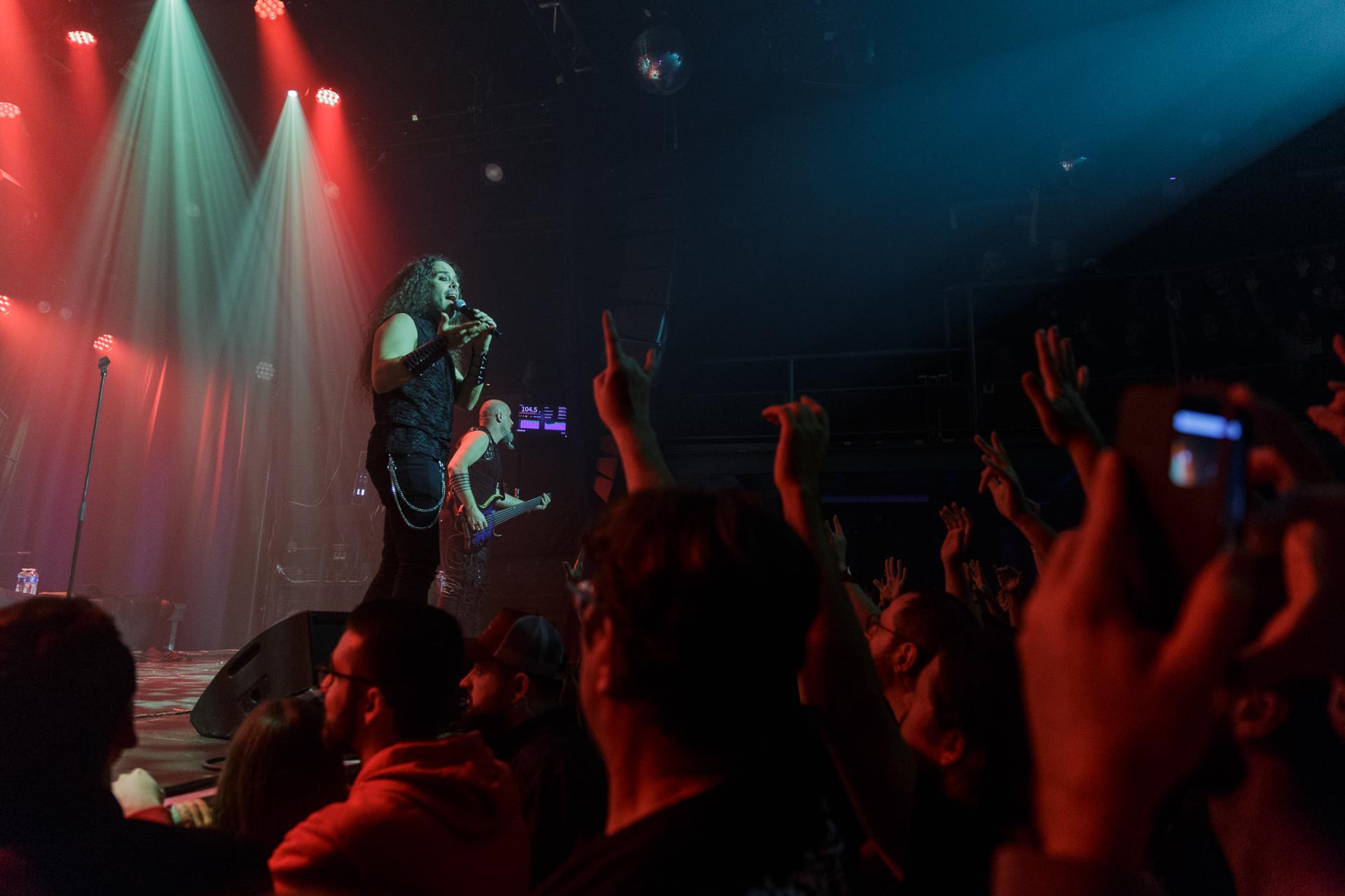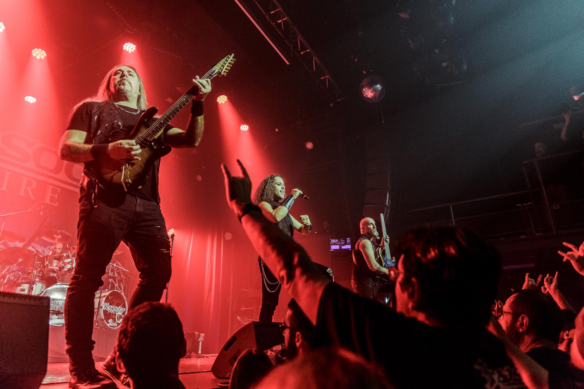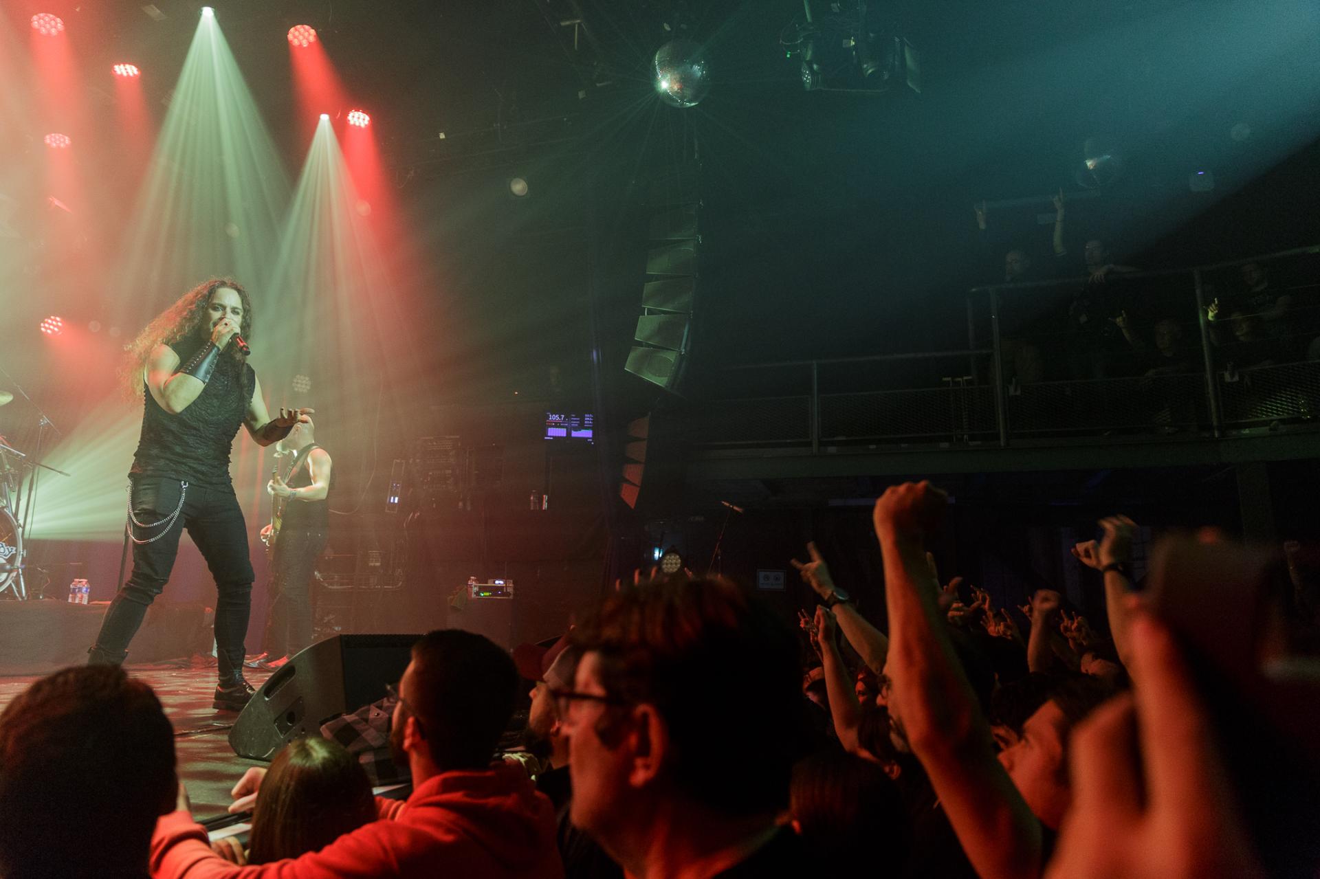 La soirée débute avec SECRET SPHERE, le groupe italien qui a su se faire un nom grâce à ses compositions mélodiques et puissantes. Mené par le charismatique Michele Luppi, le groupe plonge immédiatement le public dans son univers avec Psychokid, extrait de leur dernier album. Les morceaux comme Lifeblood et Legend alternent passages techniques et refrains accrocheurs, soutenus par une section rythmique impeccable. L’énergie du groupe est communicative, et Luppi s’adresse plusieurs fois au public en français, renforçant la proximité avec les spectateurs. Leur set s’achève sur Eternal Paths, laissant le public chauffé à blanc.